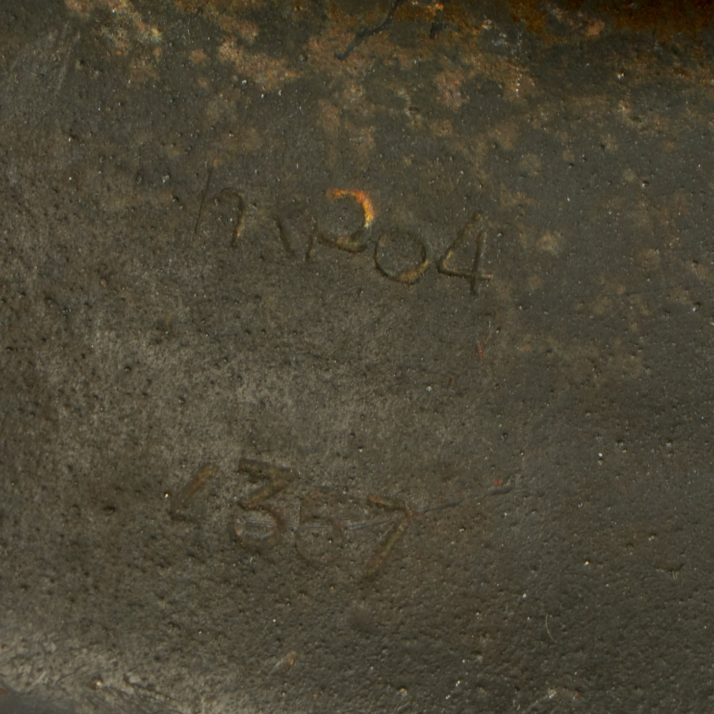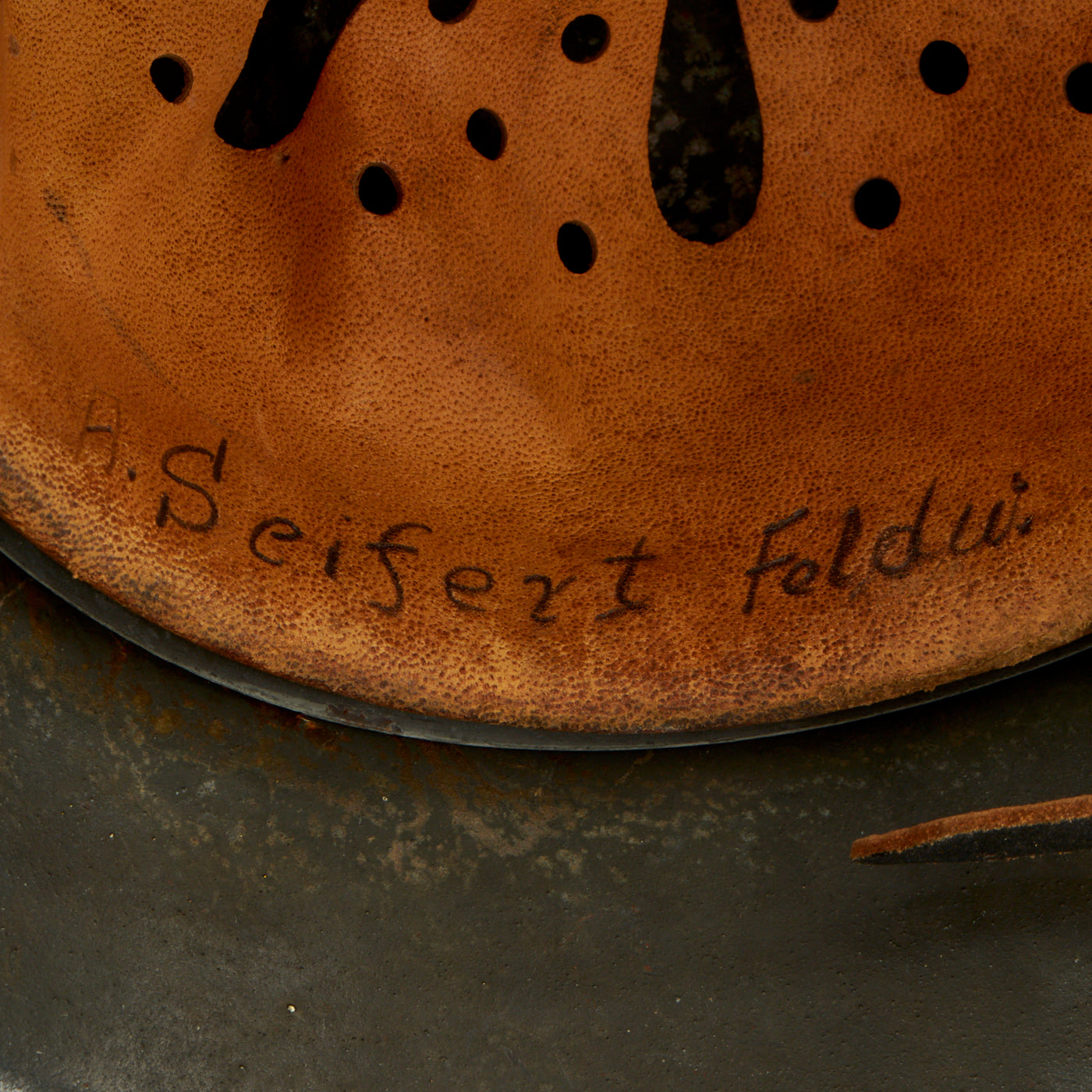 The shell is stamped with hkp64 on the rear skirt above heat lot number 4367, indicating that Sächsische Emaillier und Stanzwerke A.G. of Lauter, Germany manufactured it. Towards the end of the war, the SE marking was discontinued in favor of the three letter code hkp. Size 64 is a nice medium large size that can accommodate liners from 56cm to 57cm or US 7 to 7 1/8 . Size 64 shells are much harder to find and are therefore more valuable to a collector.