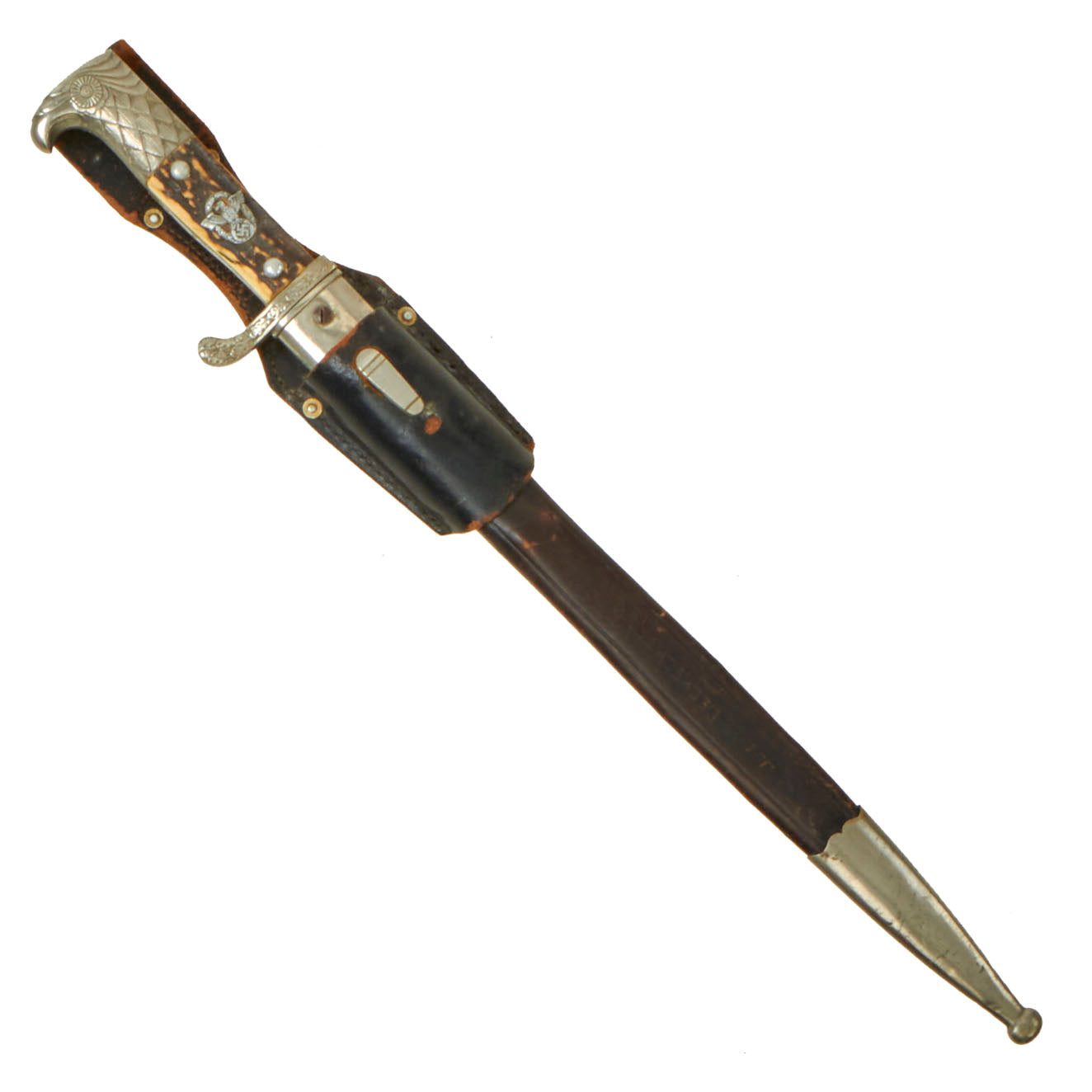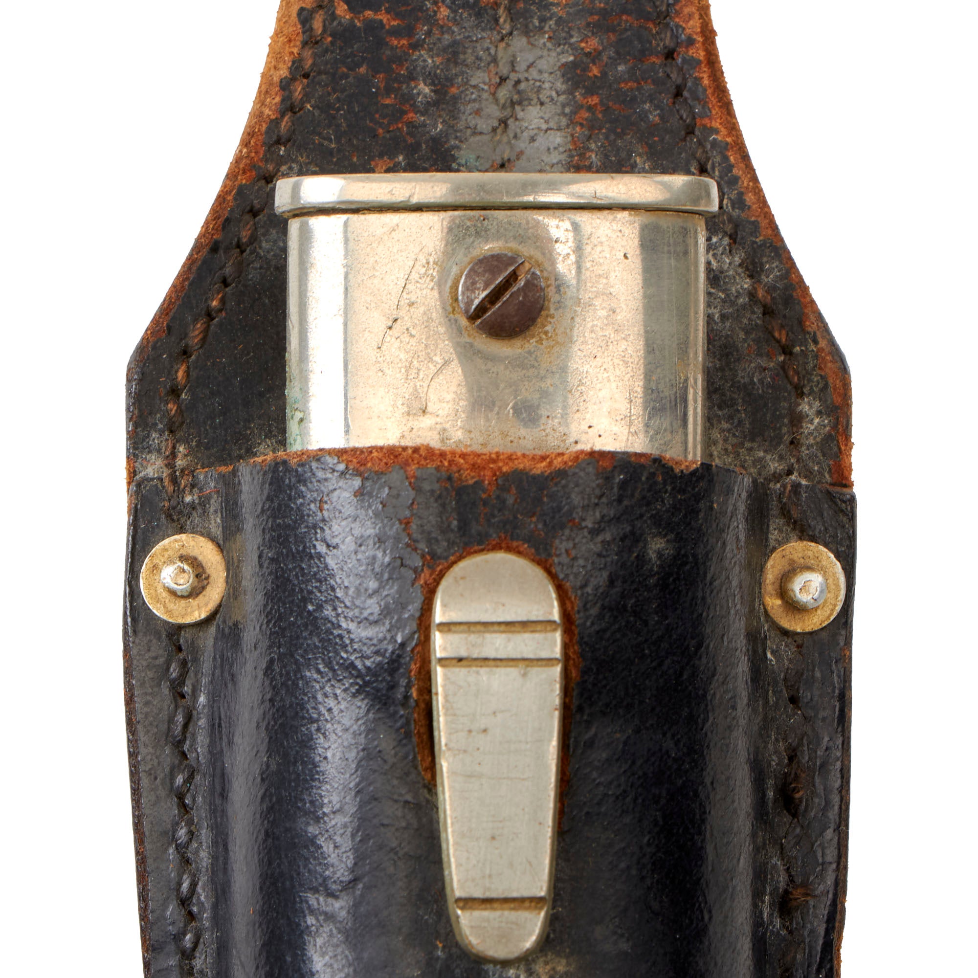 Original Item: Only One Available. This is an excellent matching Unit-Marked Berlin Metropolitan Police Long Dress "Walking Out" Bayonet by the legendary Weyersberg Kirschbaum & Co. of Solingen. A beautiful piece that comes with a scabbard with matching Berlin District police markings, which is fitted with a 1938 dated leather frog.