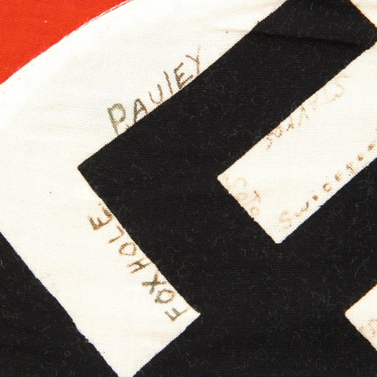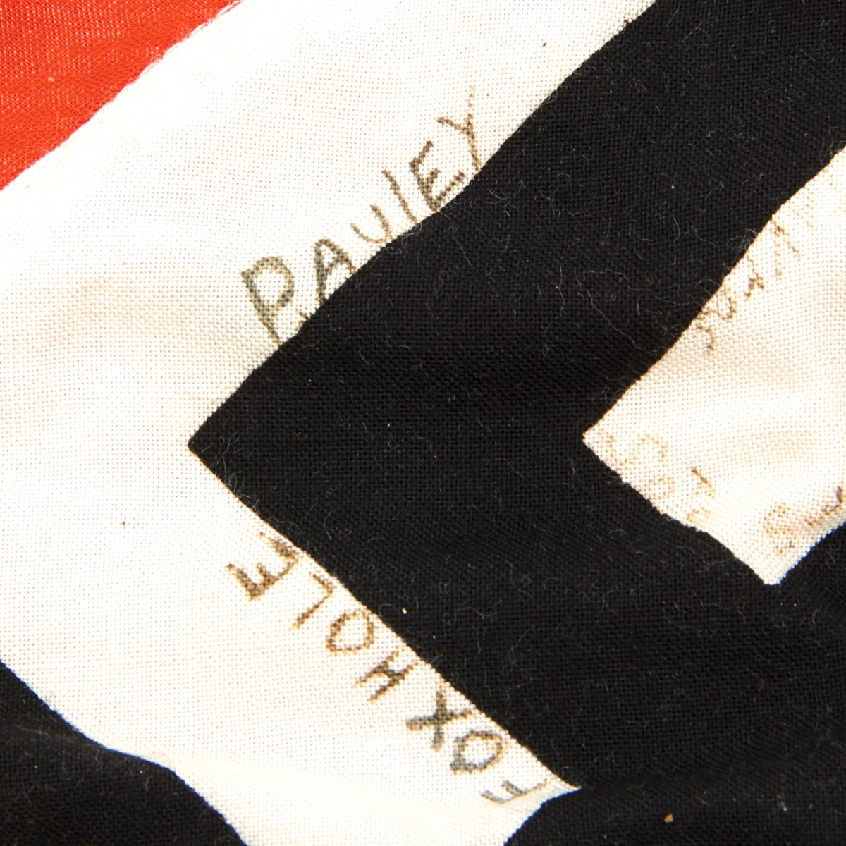 Original Item: One-of-a-kind. This a small National Flag of Germany from WW2 constructed of cotton with multi-piece construction. It measures 15 inches tall x 21 inches long. The hang side has a staff pocket insert. The flag has a stitched trim on all sides and is on light construction but good quality. It is offered in very good condition and will display beautifully. It was captured by U.S. soldiers during World War Two and signed as follows: