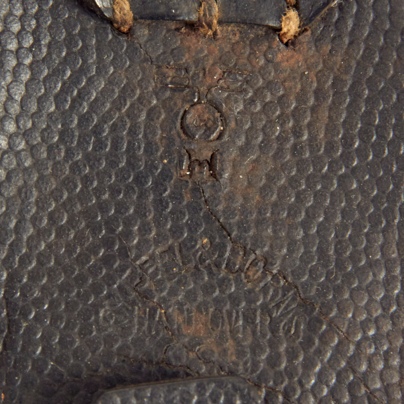 The back of the pouch are maker marked but very difficult to read, we can make out the 1939 dates. These markings can be hard to see due to the pebble grain texture. It also has a clear EAGLE / M marking, indicating issue to the German Kriegsmarine (Navy). Rifles