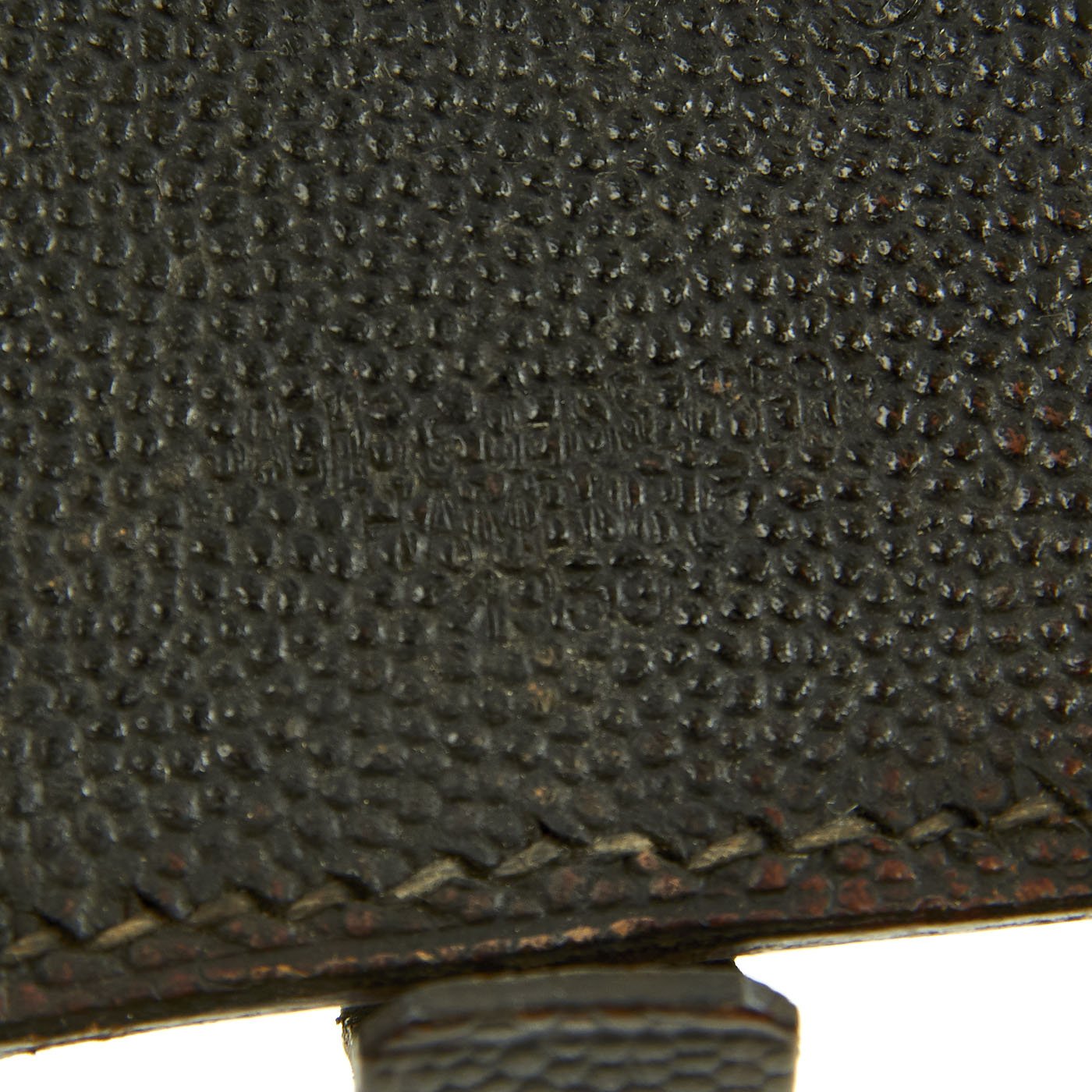 The back of this pouch is maker marked with SACHS & DEISSELBERG / HAMBURG, with a 1939 date at the bottom. These markings can be heard to see due to the pebble grain texture. It also has an EAGLE / M marking just to the lower right of the D ring fitting, indicating issue to the German Kriegsmarine (Navy). Rifles were still needed and kept on board, especially for landing parties.