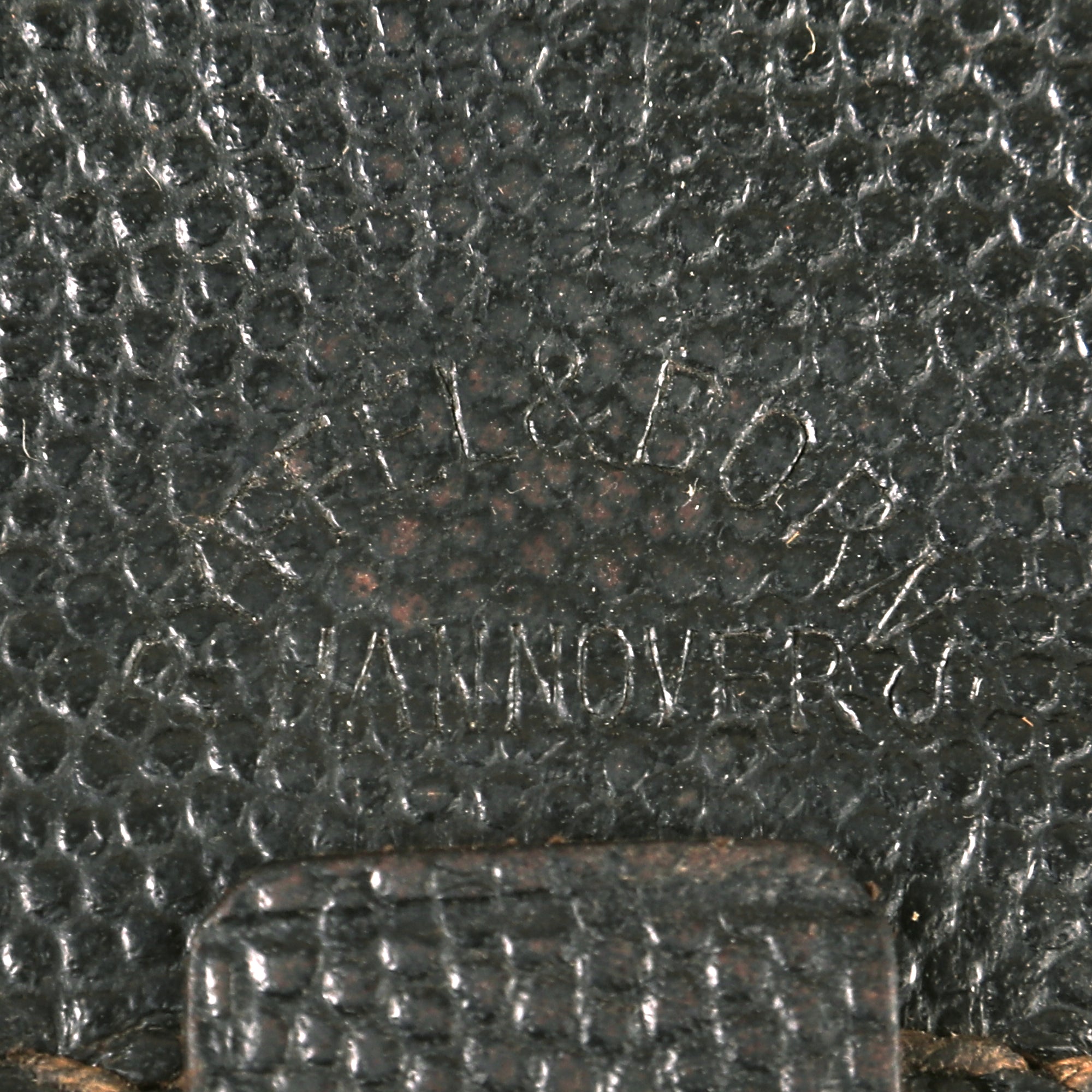 The back of one pouch is maker marked RYFFEL & BORNS HANNOVER. These markings can be hard to see due to the pebble grain texture. Both pouches also have a clear EAGLE / M marking, indicating issue to the German Kriegsmarine (Navy). One of the two only has a Swas & M, but it has the same meaning. Rifles were still needed and kept on board, especially for landing parties.