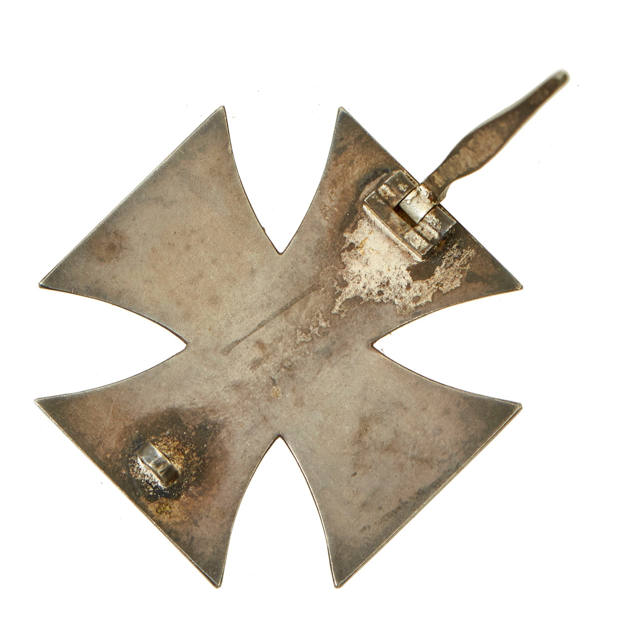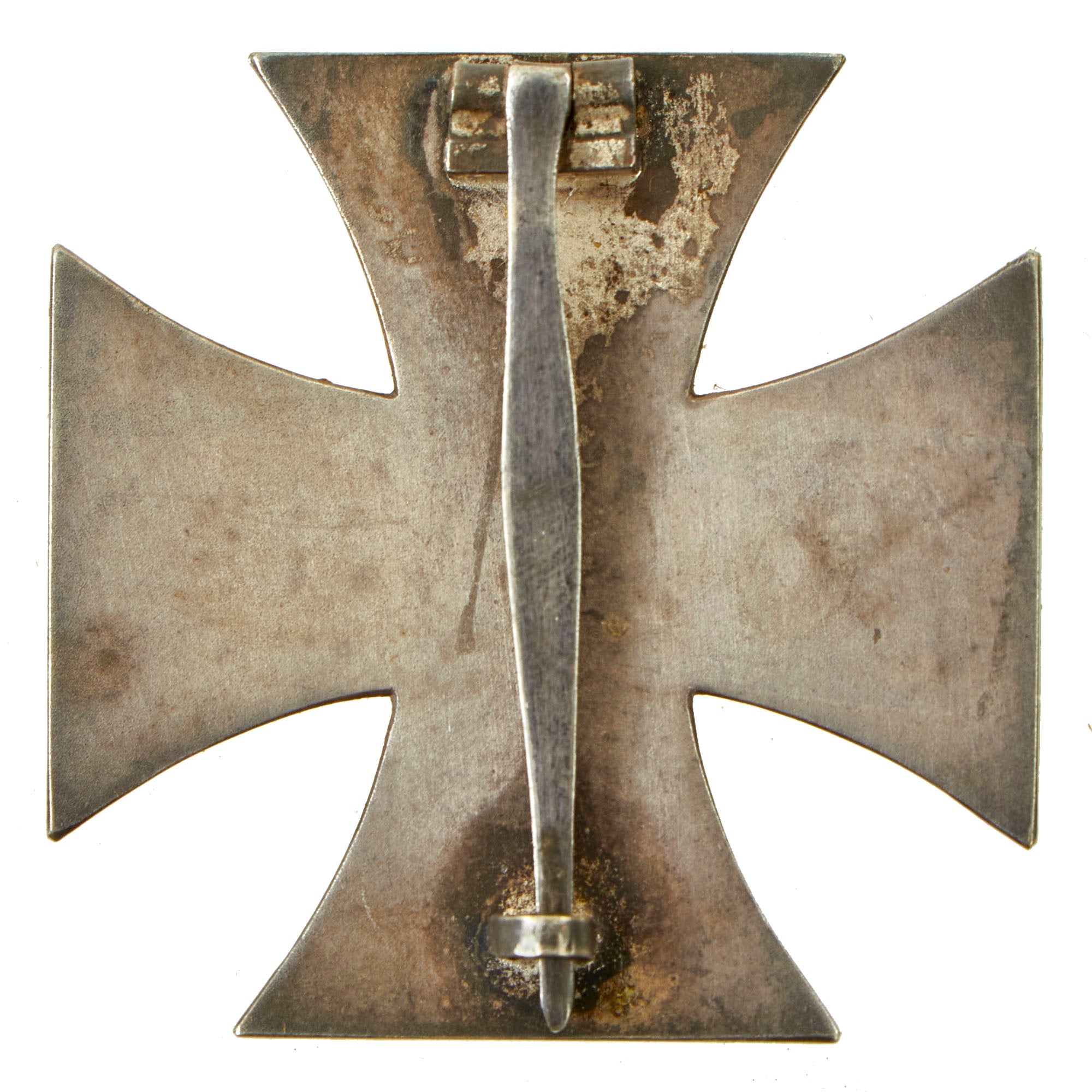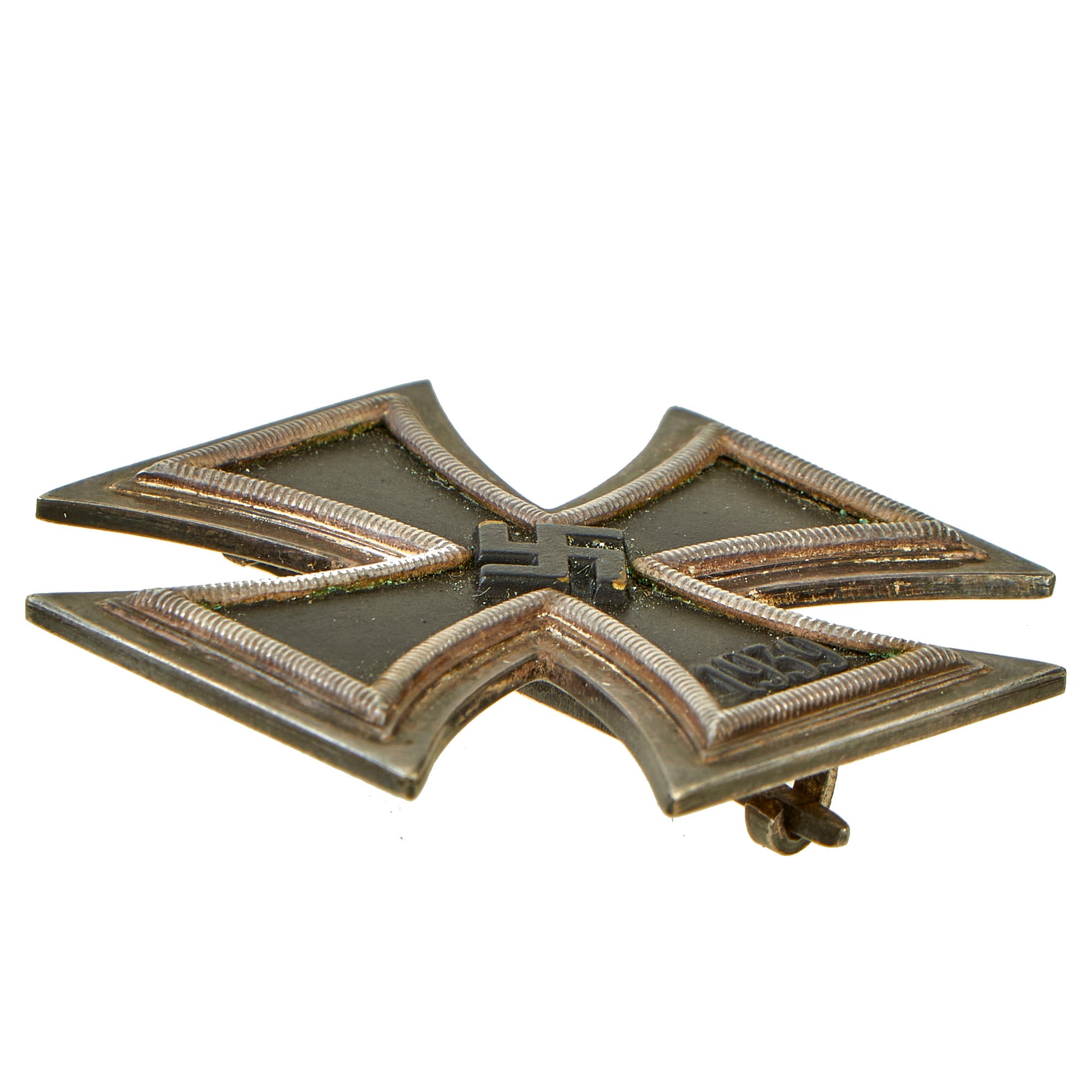 Original Item: Only One Available. This a great example of a WWII Iron Cross First Class 1939, with a non-magnetic brass core, flat design, and straight pin attachment. The brass core examples are less often seen than the steel core, and were usually issued to members of the Kriegsmarine (Navy), as the brass alloy was much more resistance to the corrosion caused by ocean air. It is not maker marked, but that was not uncommon for these awards. Close examination may be able to determine the maker, as the major makers had their own distinctive styles.