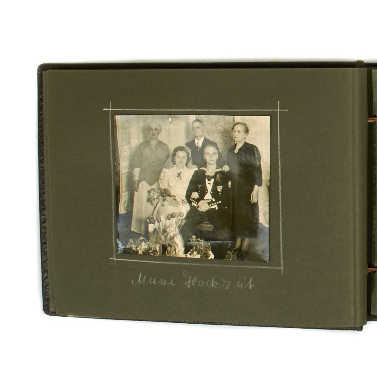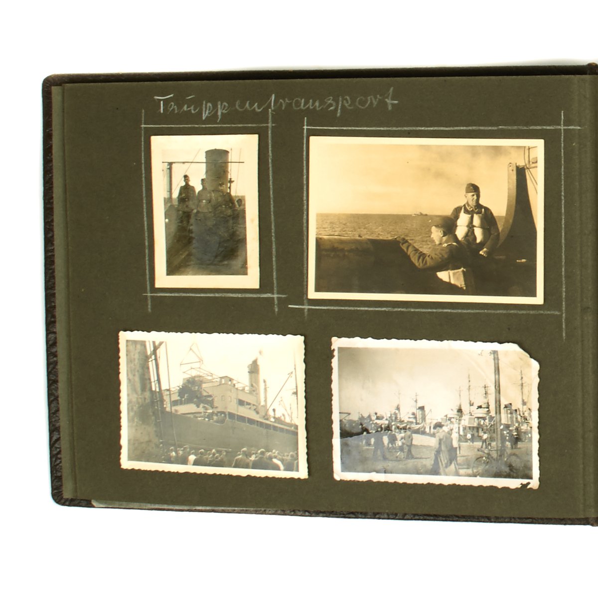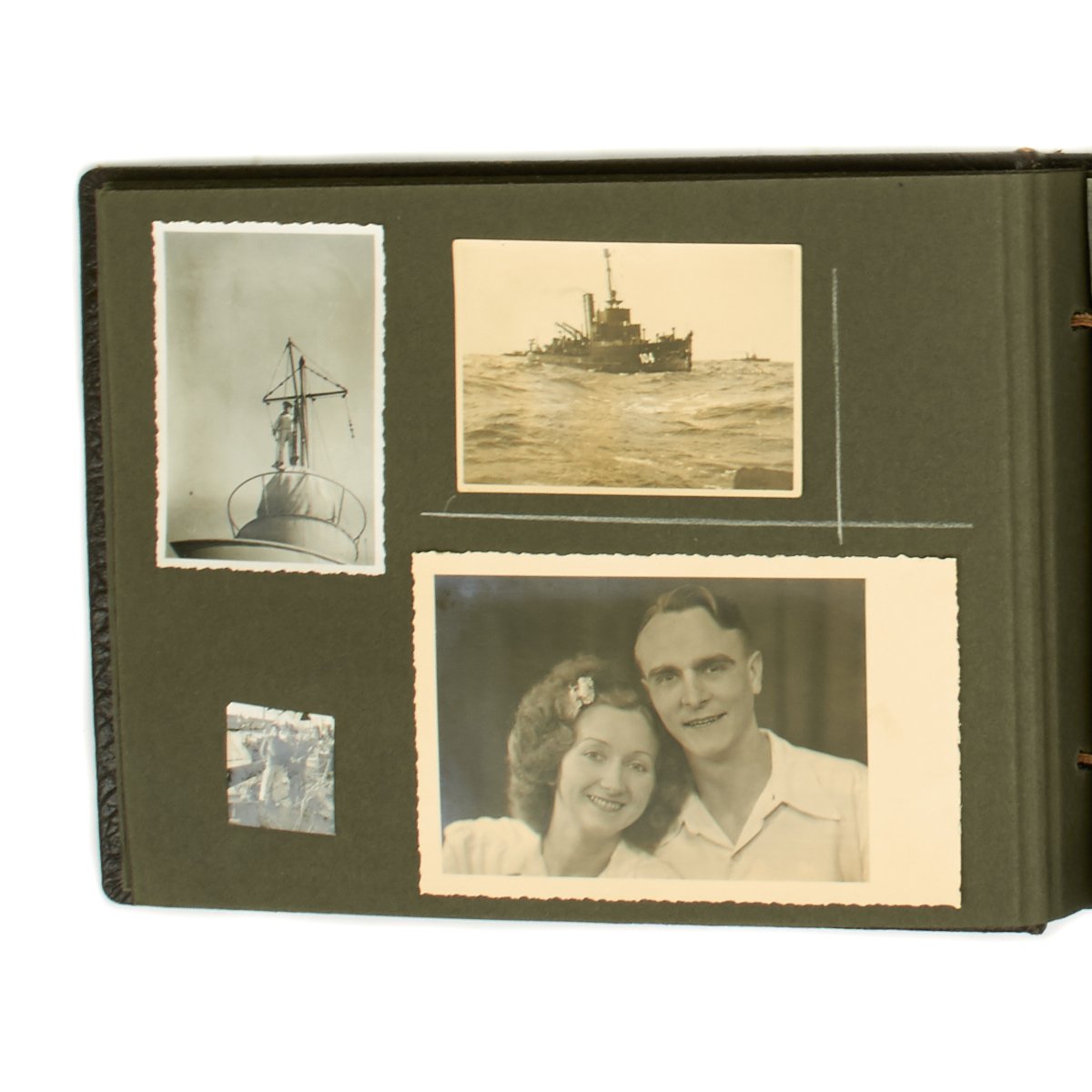 Original Item: One-of-a-kind-set. True Kriegsmarine material is always hard to find. This personal photo album features a young sailor in uniform and is 16 pages in length with 50 photos. The photos feature everything from the sailor in uniform with his young wife, to his fellow sailors, life on the sea, ships, officers and more. A very nice well kept and notated album from the hardest branch to find material the German Kriegsmarine!