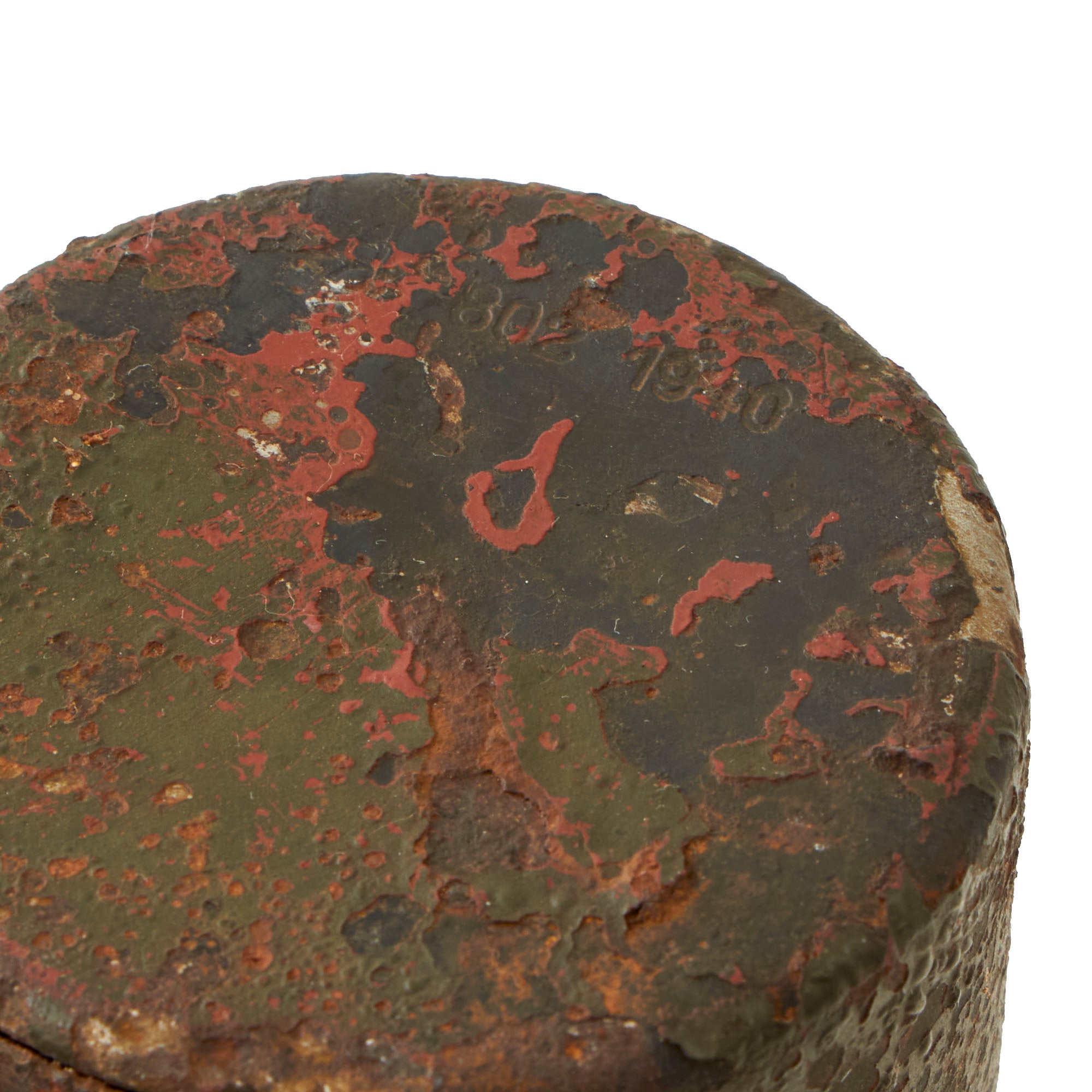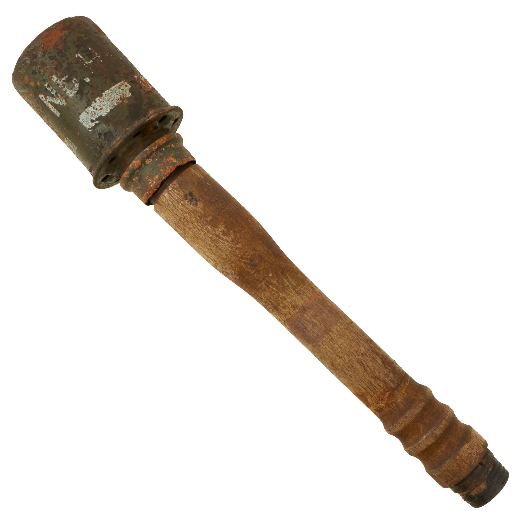 Original Item: Only One Available. This is a great example of an extremely rare NB.Hgr.39 or Nebelhandgranate 1939 German Stick Grenade in ground dug condition. This very nice example, acquired from a private estate sale, has been demilitarized according to specifications by the BATF, and is not available for export. It still retains its some original paint and the original markings can be seen on both the head and shaft of the grenade.