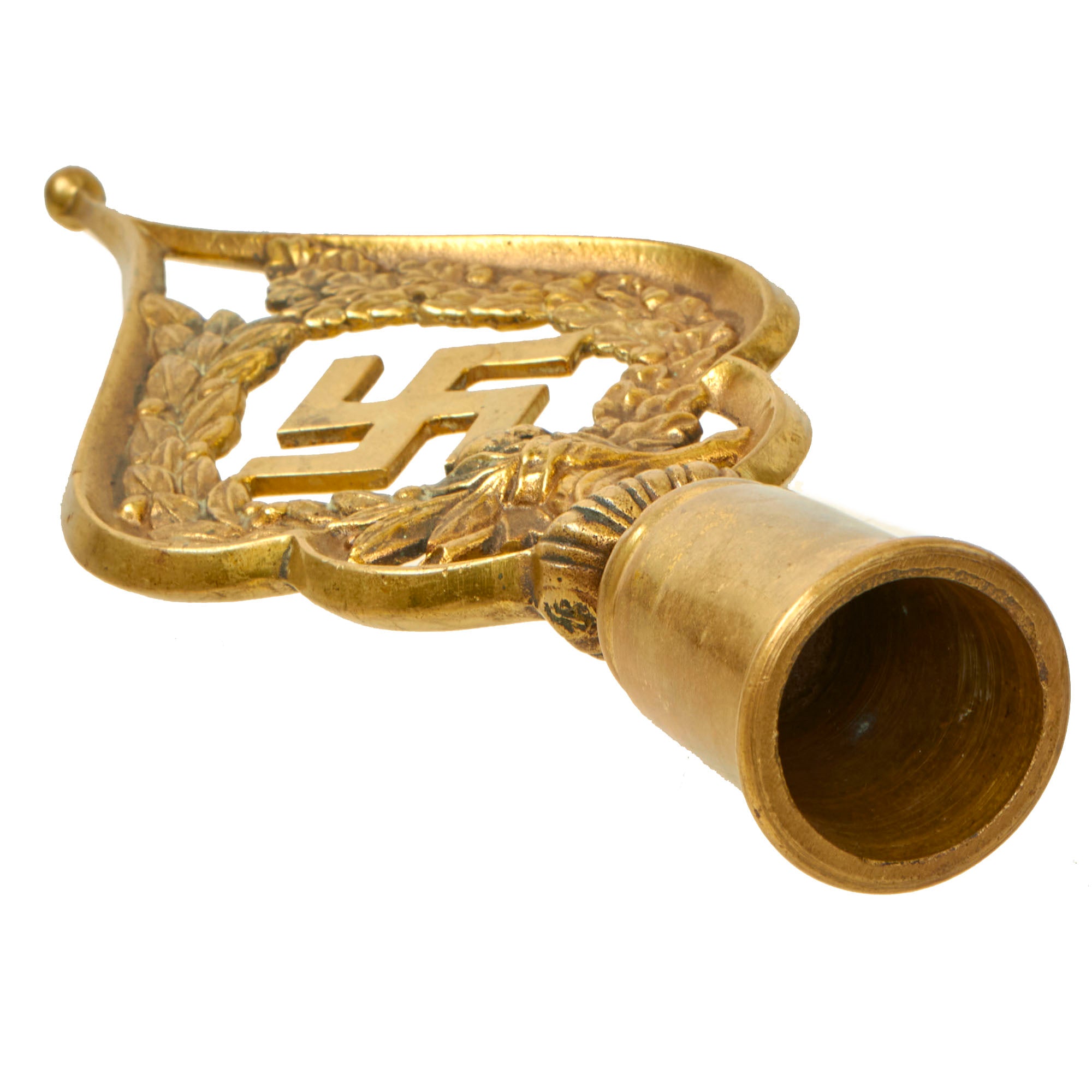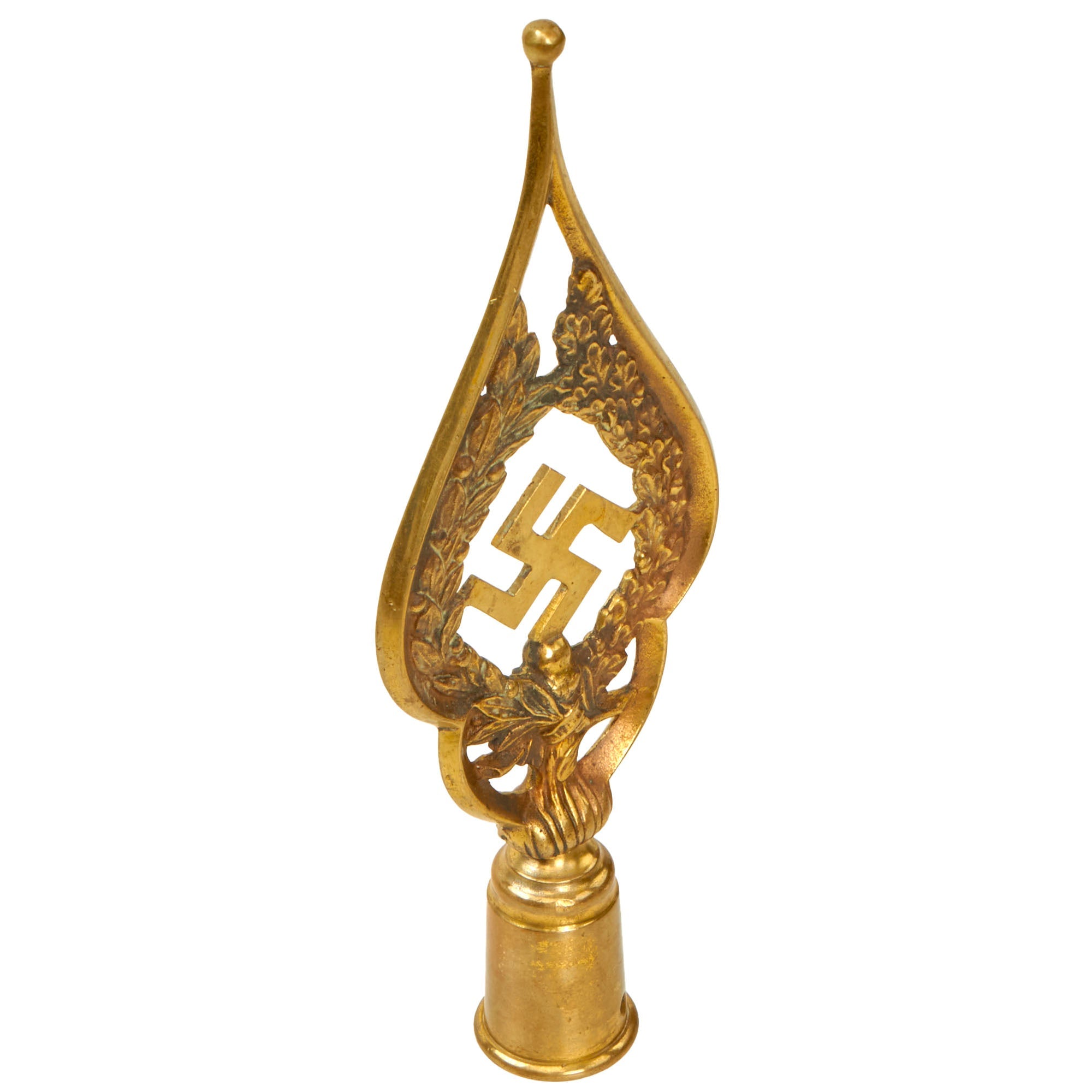 Original Item. Only One Available. This is a gorgeous early NSDAP flag pole finial, constructed entirely of brass with a screw off bottom. This is the first of this style we have offered, and it’s a very well-made piece.