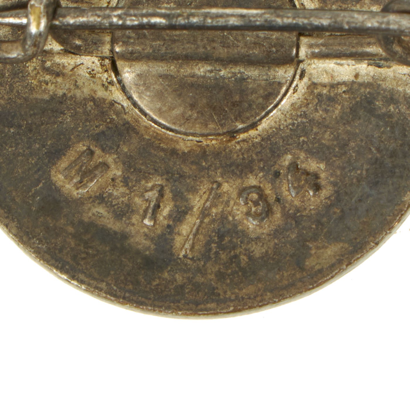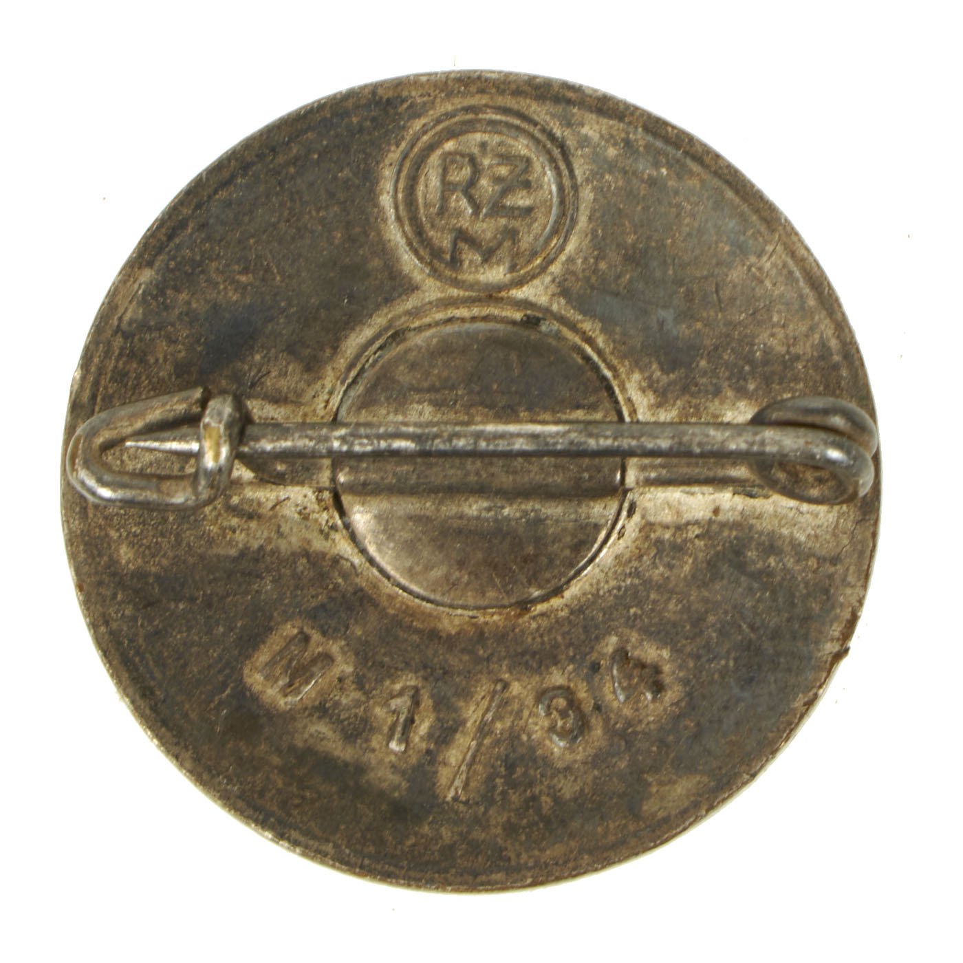 Of Note: In late 1934 items manufactured for the NSDAP and other organizaions, including membership pins, came under the quality control of the RZM, Reichzeugmeisterei, (National Equipment Quartermaster) and as a result were marked with the RZM logo when appropriate. The registry was was based at the Brown house in Munich and NSDAP party headquarters in Berlin. The RZM ensured that the manufacturers of military items were consistent in design, quality of materials and other characteristics of the items. It also defined standards of design, manufacturing and quality and published an authoritative color chart for textiles. The M1 in the code stands for Metal Badges, with Karl Wurster, Markneukirchen, being contractor number 34.