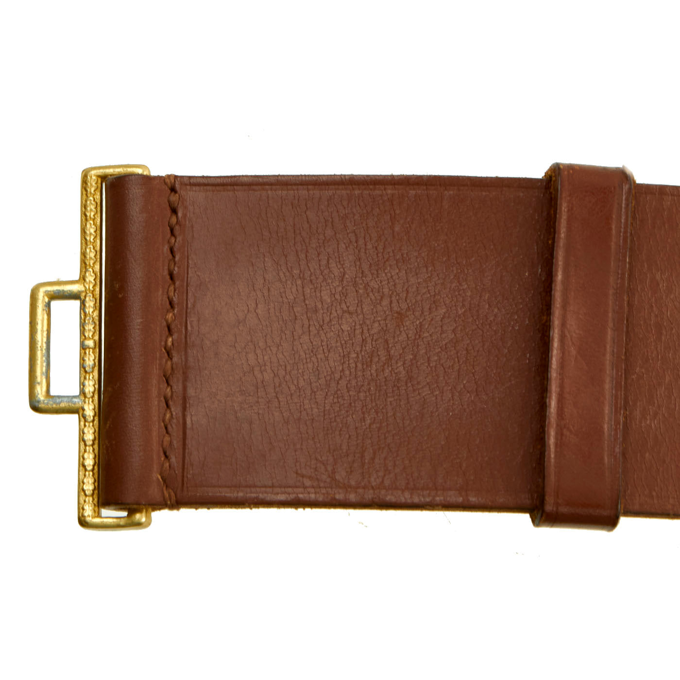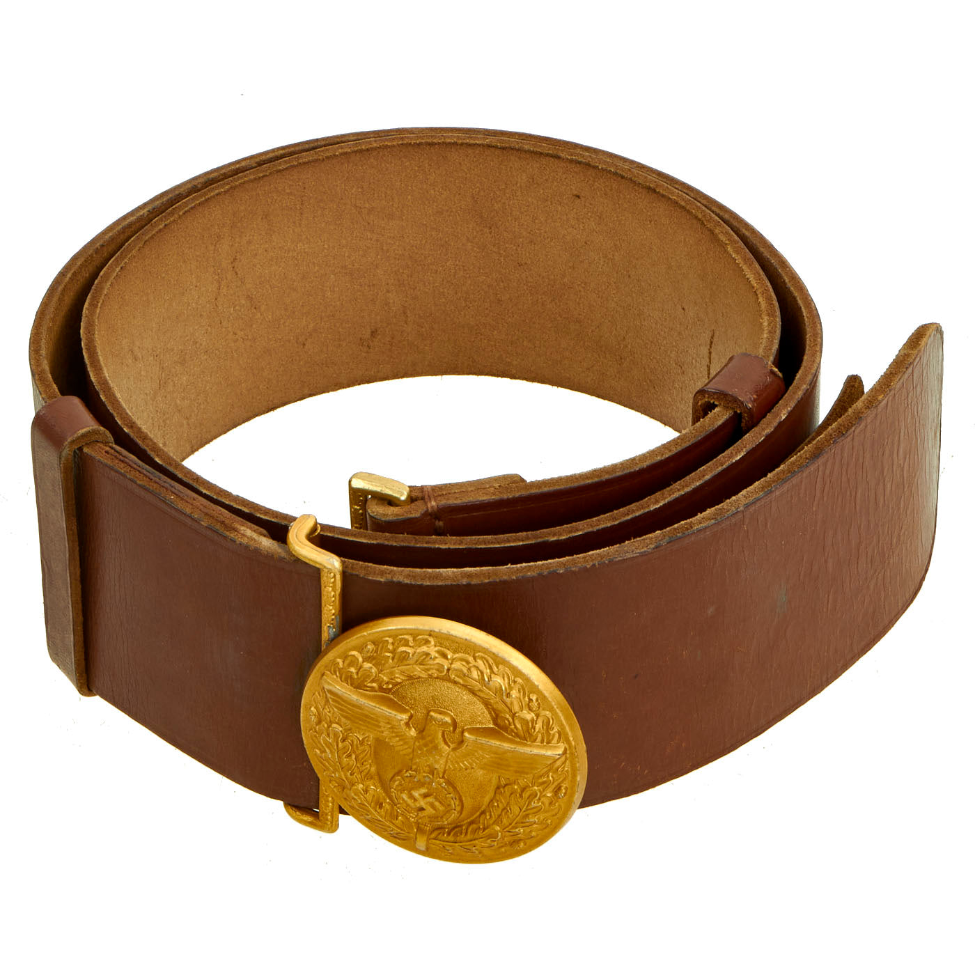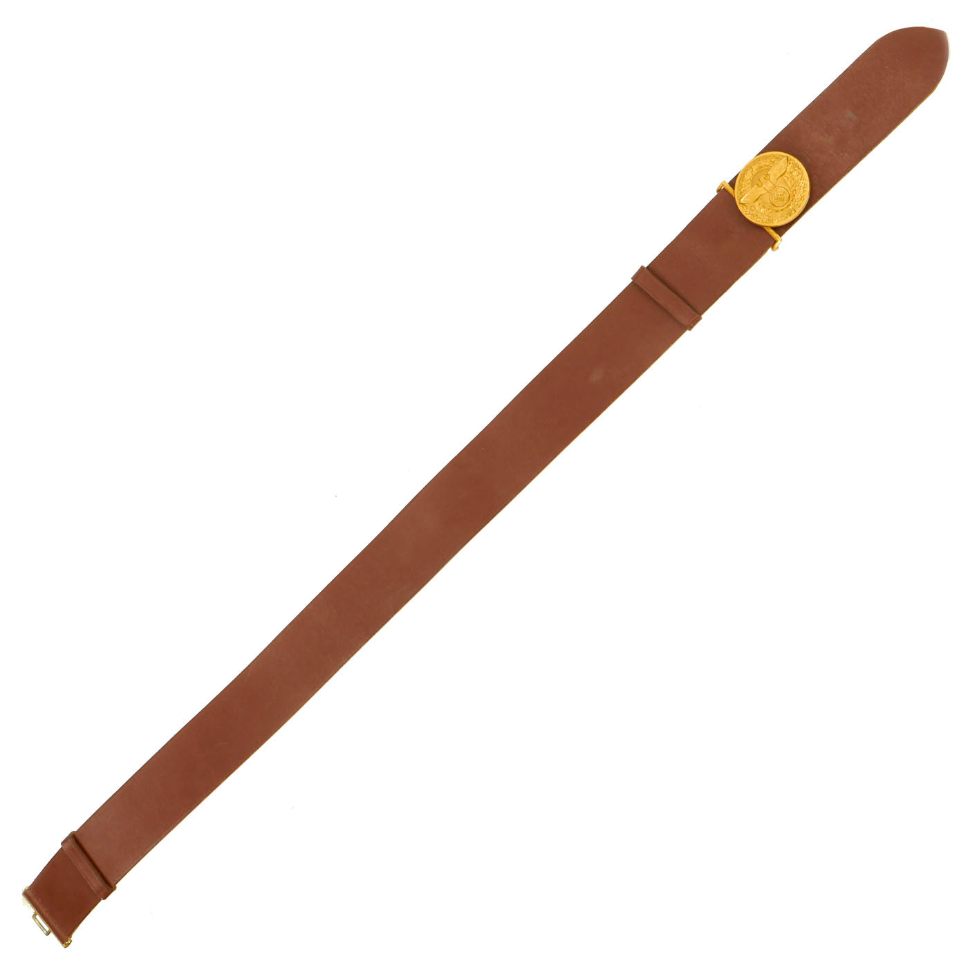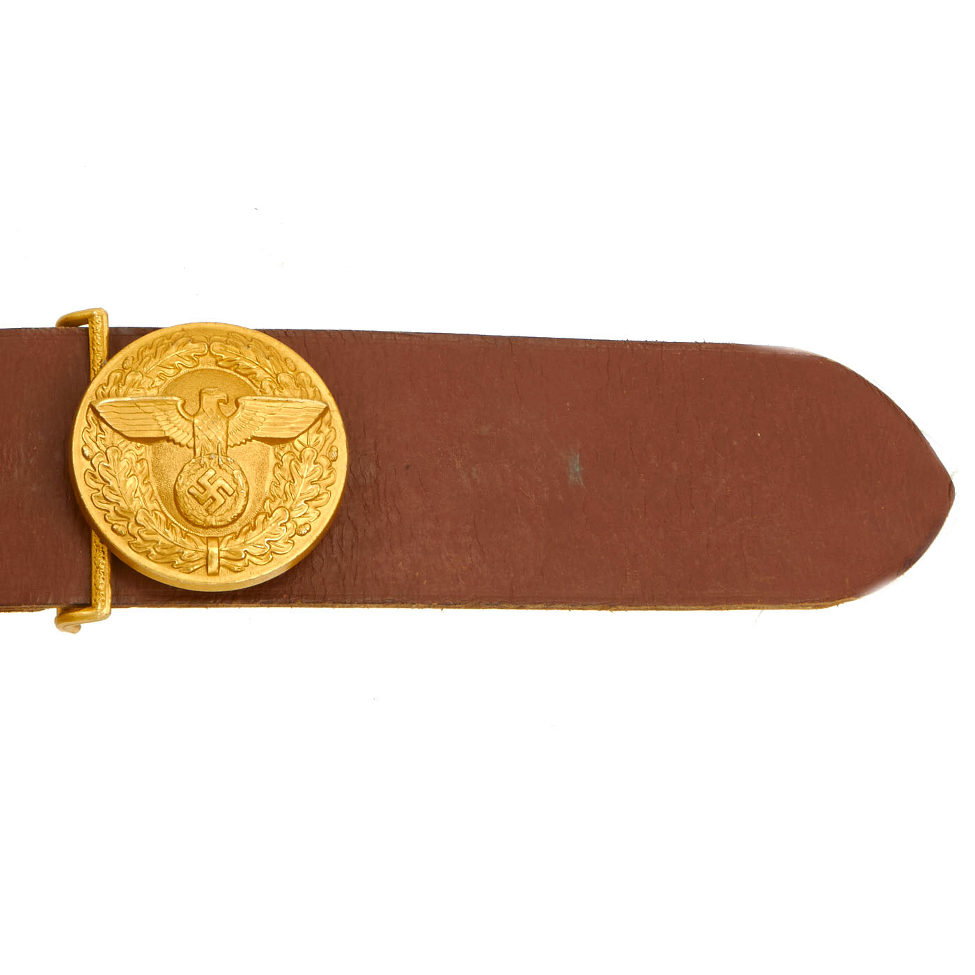 Original Items: Only One Available. This is a very nice WWII German NSDAP Leibriemenschloß für Politische Leiter (Belt Buckle for Political Leader), with the correct thick leather belt. The circular Political Leader’s buckle was introduced in 1940, a double open-claw buckle having been used prior to that. Prior to 1934, the SA Belt and buckle were used, but after 1940 this more ornate buckle was used.