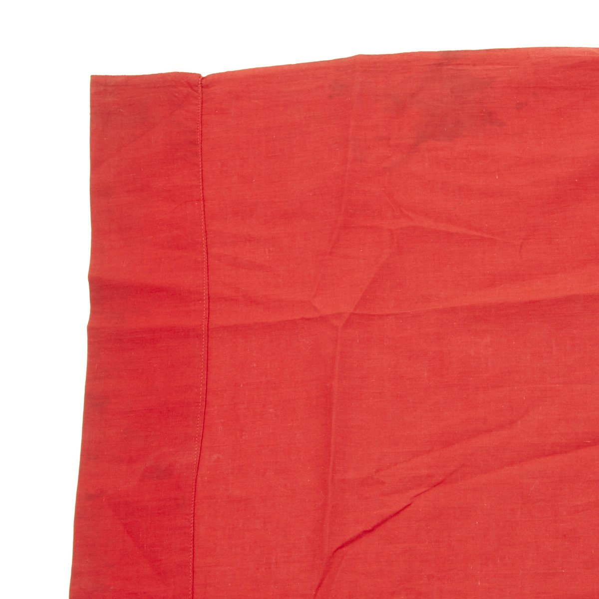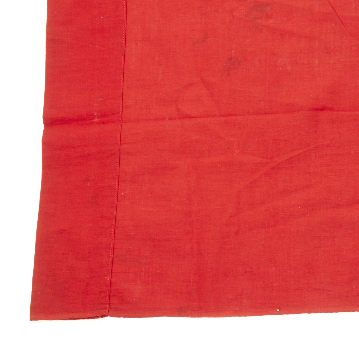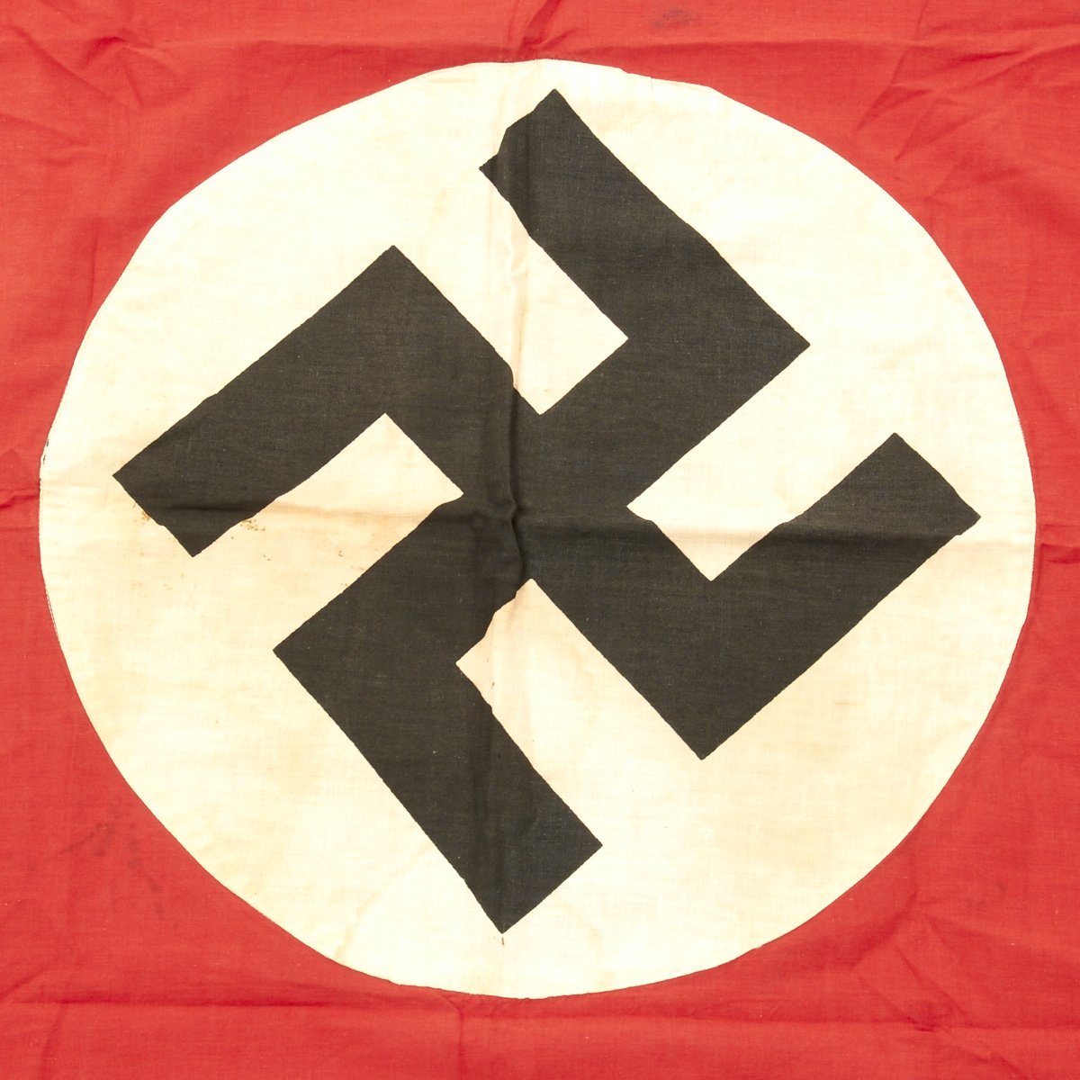 Original Item: Only One Available. This is a WWII German National Banner that measures 31 inches wide by 57 inches long. It is of all cotton construction, and is double sided with a single piece cotton white circles with black swass on both sides.