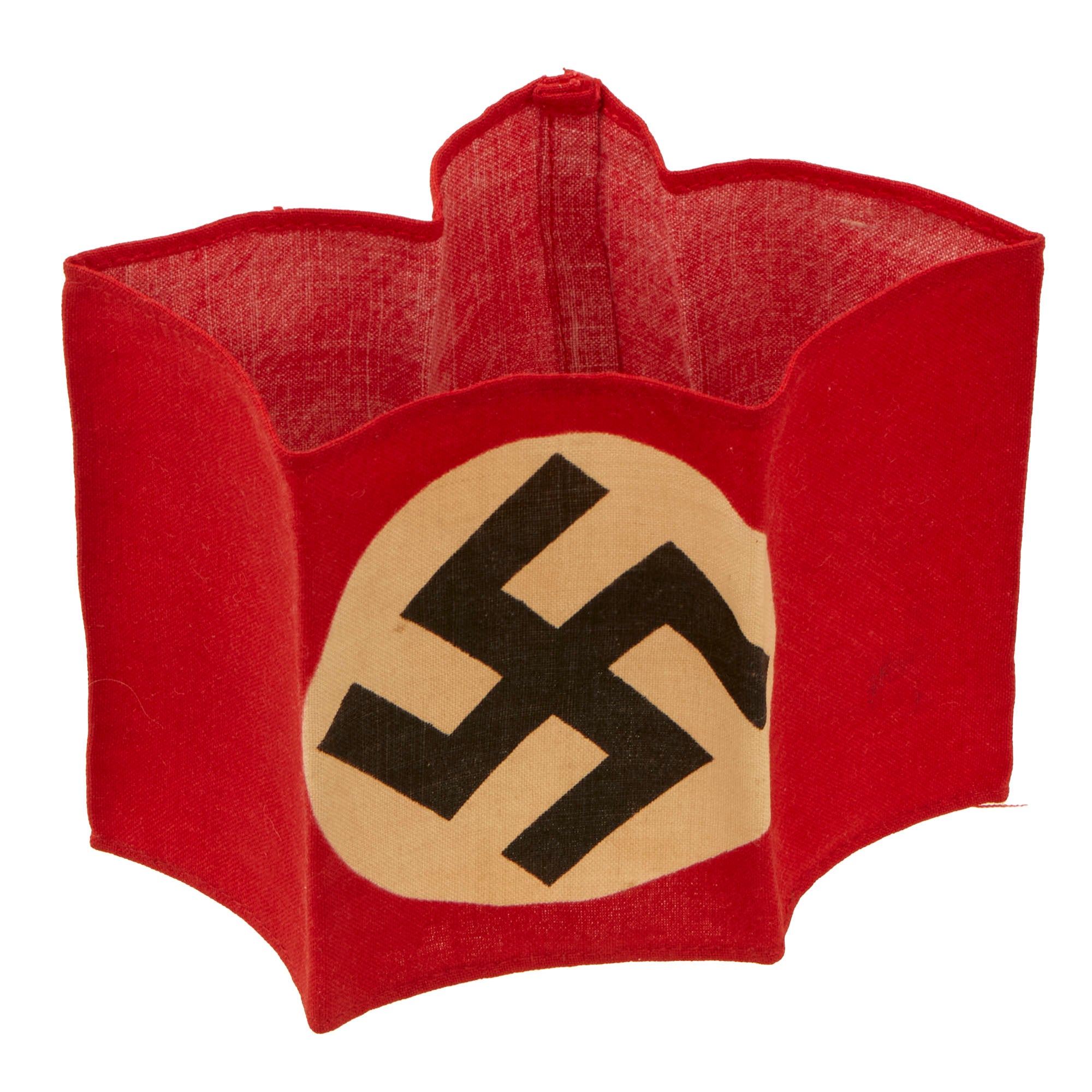 There is overall light age toning to the white and light staining to the red band, giving it a fantastic "been there" look! A very nice NSDAP armband, ready to add to your collection!