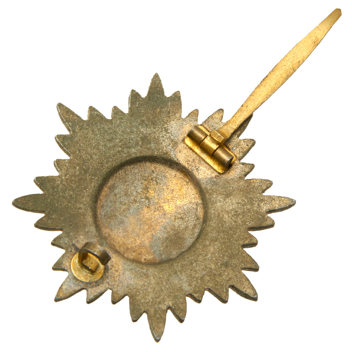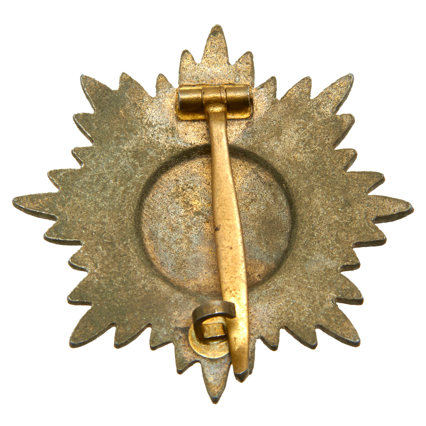 The Ostvolk Medal (Ostvolkmedaille) was originally introduced on July 14, 1942, and was designed by Elmar Lang. The official German designation for the award was “Tapferkeits- und Verdienstauszeichnung für Angehörige der Ostvölker'' which translates to :”Bravery and Merit Award for Members of Eastern Peoples.” These awards were intended to reward former citizens of the Soviet Union who served alongside the German armed forces as collaborators, particularly in the Eastern Front. The award was given to personnel including Cossacks, members of Schuma security units, and members of units of the Sicherheitspolizei and SD. By the fall of 1942, German troops serving in units made up of Eastern volunteers were also eligible for this medal. The award was issued in a somewhat confusing array of variations. The First Class award was a pin back award that was worn on the uniform pocket, while the Second Class award was a medal suspended from a ribbon. Both the First Class and Second Class versions were made with swords, indicating bravery, and without swords, which was an award for merit. Both the First Class and Second Class awards, with or without swords, were also made in Bronze, Silver and Gold grades. Only about 7,000 of these, in all grades, were awarded, making this a rather rare award.