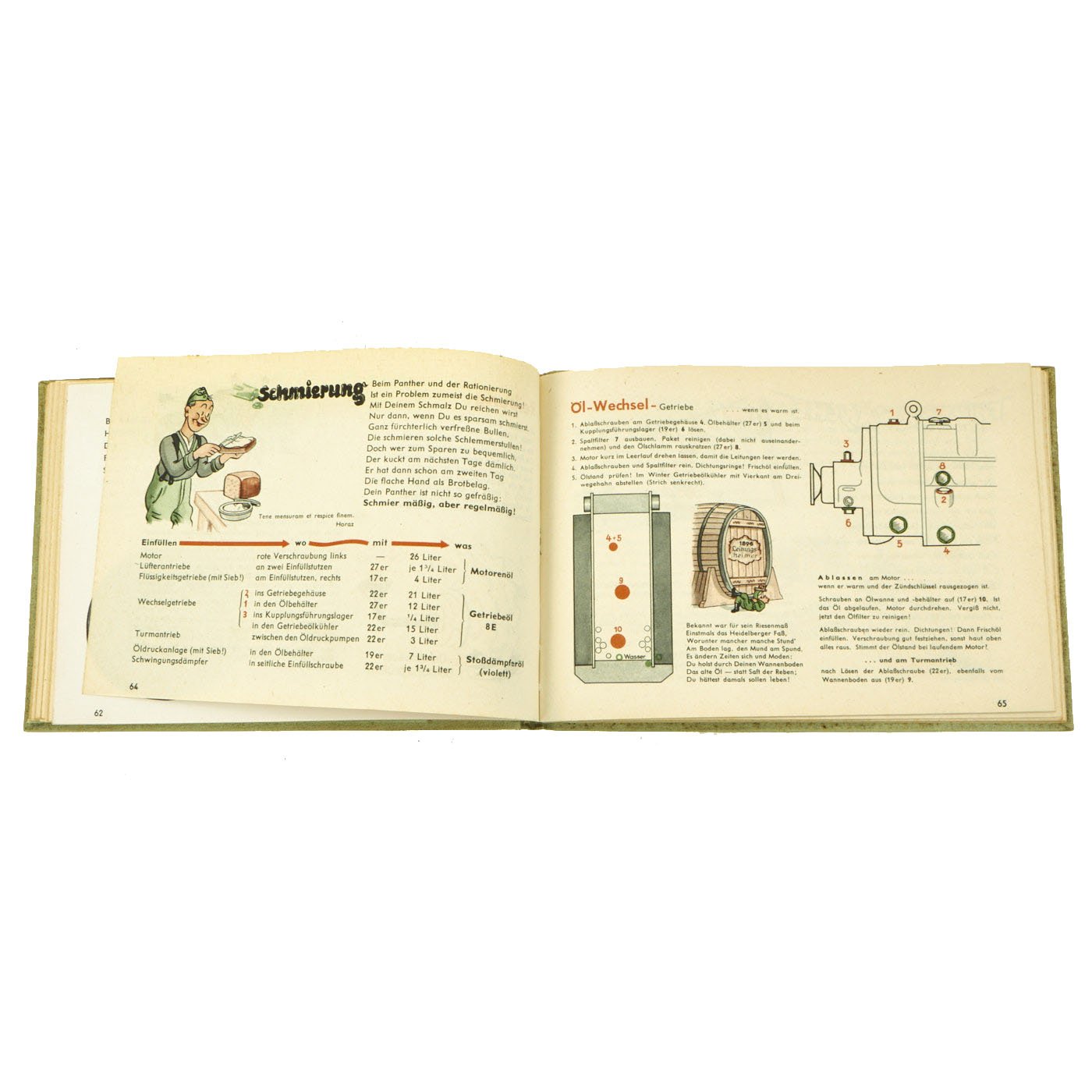 Apart from the infamous Tigerfibel (D 656/27) for the Tiger, there was an equally richly illustrated for its younger cousin the Panther, called the Pantherfibel. These richly illustrated manuals taught the Panther-crews everything they should know about their respective tasks and their vehicle. Although parts of the Tigerfibel were in rhyme, especially the motto sections, the rhyme in the Pantherfibel continues throughout the text and is actually quite fun to read.