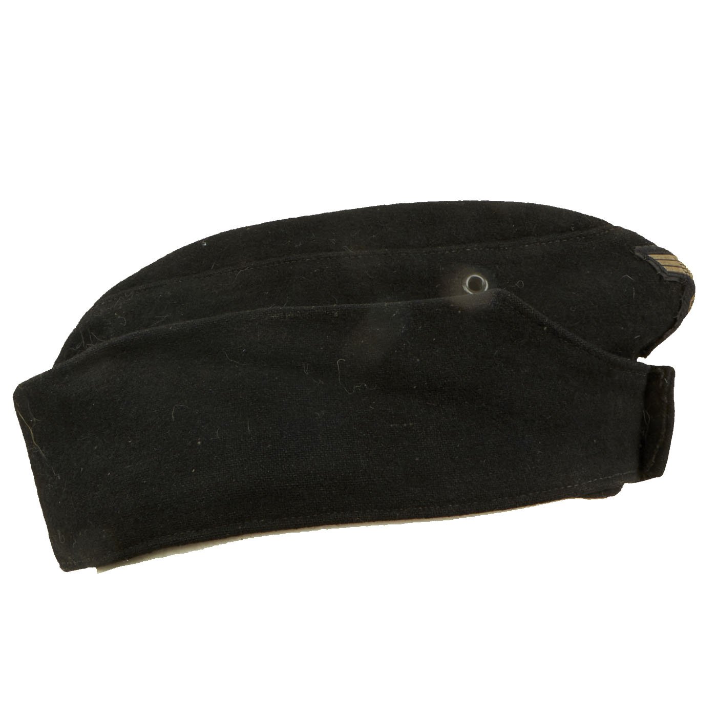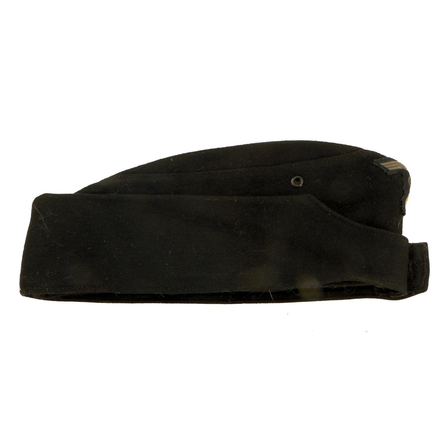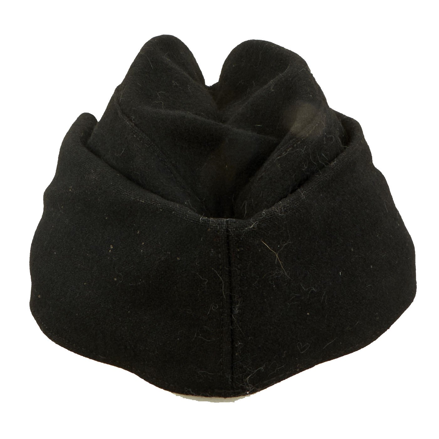 Condition of this cap is very good, with spotted wear to the nap of the outer shell, most likely from use in service. The front buttons are still intact, and the flaps fold down easily. The interior shows moderate service wear, making this a really nice example.