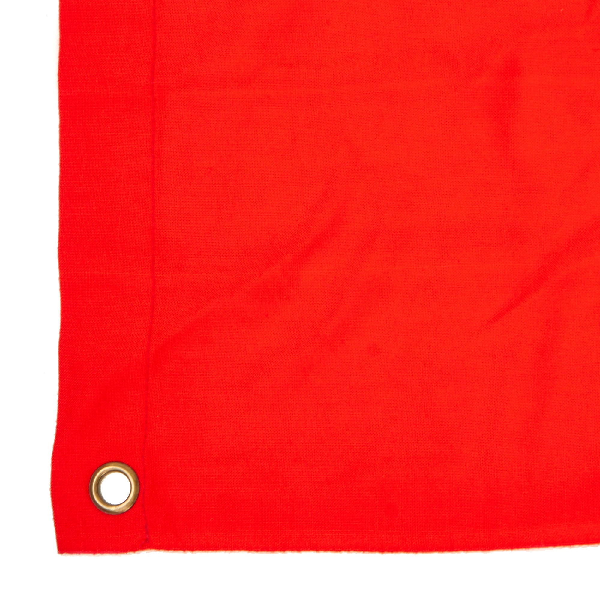 This flag features multi-piece construction and is single sided with plated steel grommets located in each corner. These grommets were secured to tension lines that secured the flag to the back of the tank laying flat. Thereby the flag was only visible to persons located above the tank. Generally these flags were intended to be seen by German airplanes so as not to be struck by friendly fire. The relatively large size of this example makes it more likely to have been intended for a tank than some smaller vehicle.