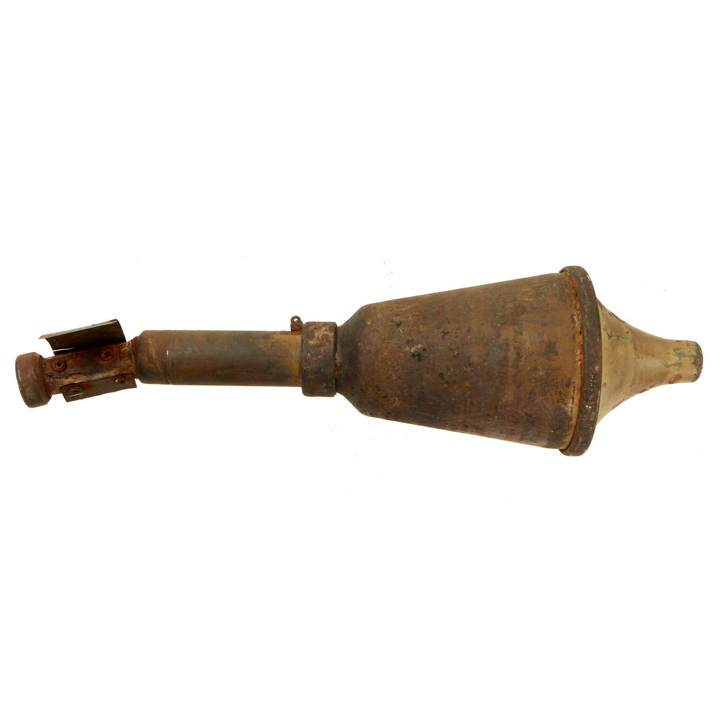 Original Item: Only One Available. Panzerfaust 30 klein ("small") or Faustpatrone (Translated literally to mean: Tank Fist Small) was the original version of the Panzerfaust. First delivered in August 1943 with a total weight of 3.2 kilograms (7.1 lb) and overall length of 98.5 cm (38.8 in). The 30 was indicative of the nominal maximum range of 30 m (33 yd). It had a 3.3 cm (1.3 in) diameter tube containing 54 grams (1.9 oz) of black powder propellant launching a 10 cm (3.9 in) warhead carrying 400 g (14 oz) of explosive. The projectile traveled at just 30 m (98 ft) per second and could penetrate 140 mm (5.5 in) of armor.