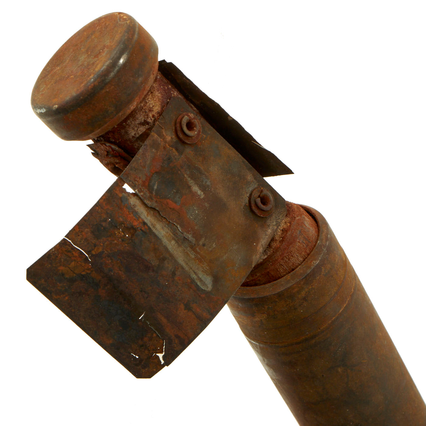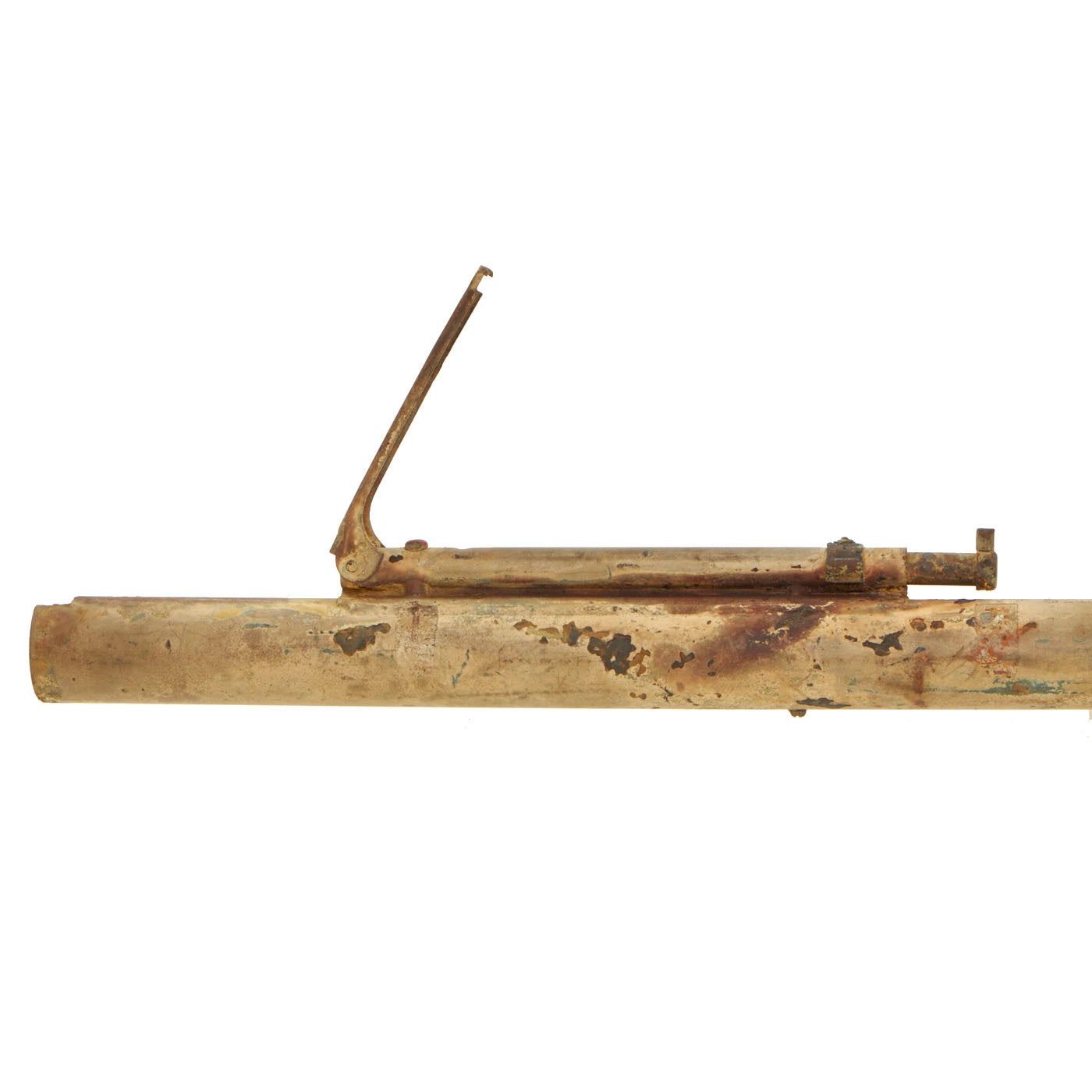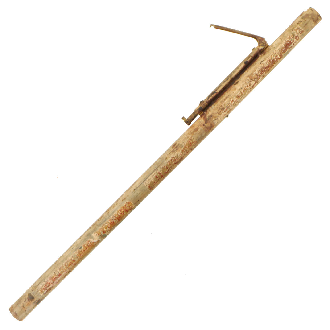 Per previous owner testimony, this relic was recovered by scuba divers from the bottom of Lake Toplitz, near the village of Olmutz, in the Austrian Alps. Lake Toplitz was the site of an NSDAP German Naval testing station where German scientists would test different types of explosives. Most interestingly, the water of the lake below a depth of 20 meters contains no oxygen which stops any oxidation from items below that mark. This would explain the good condition of this tube for being recovered from the water.