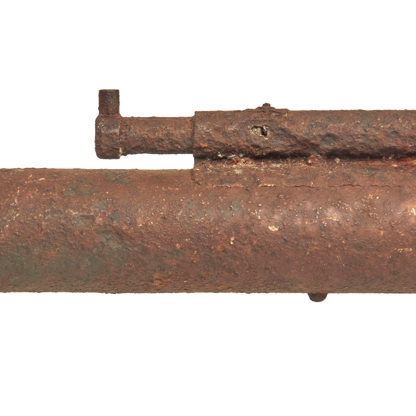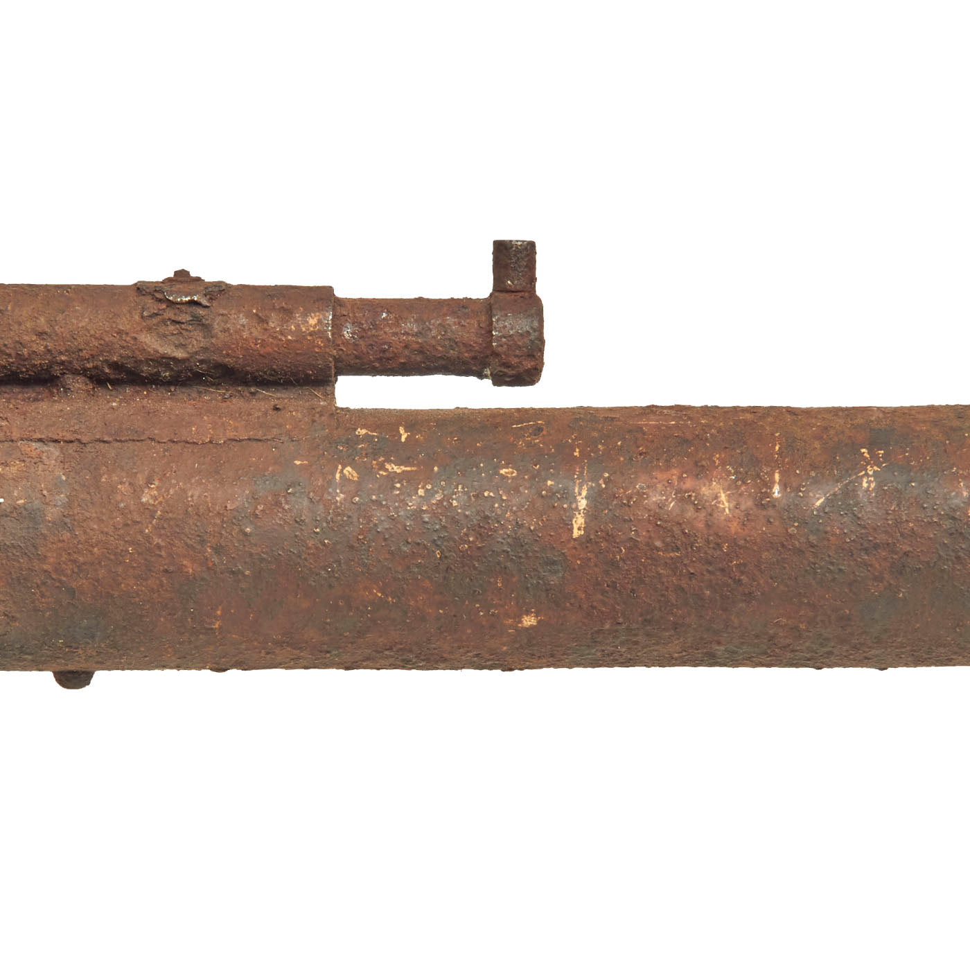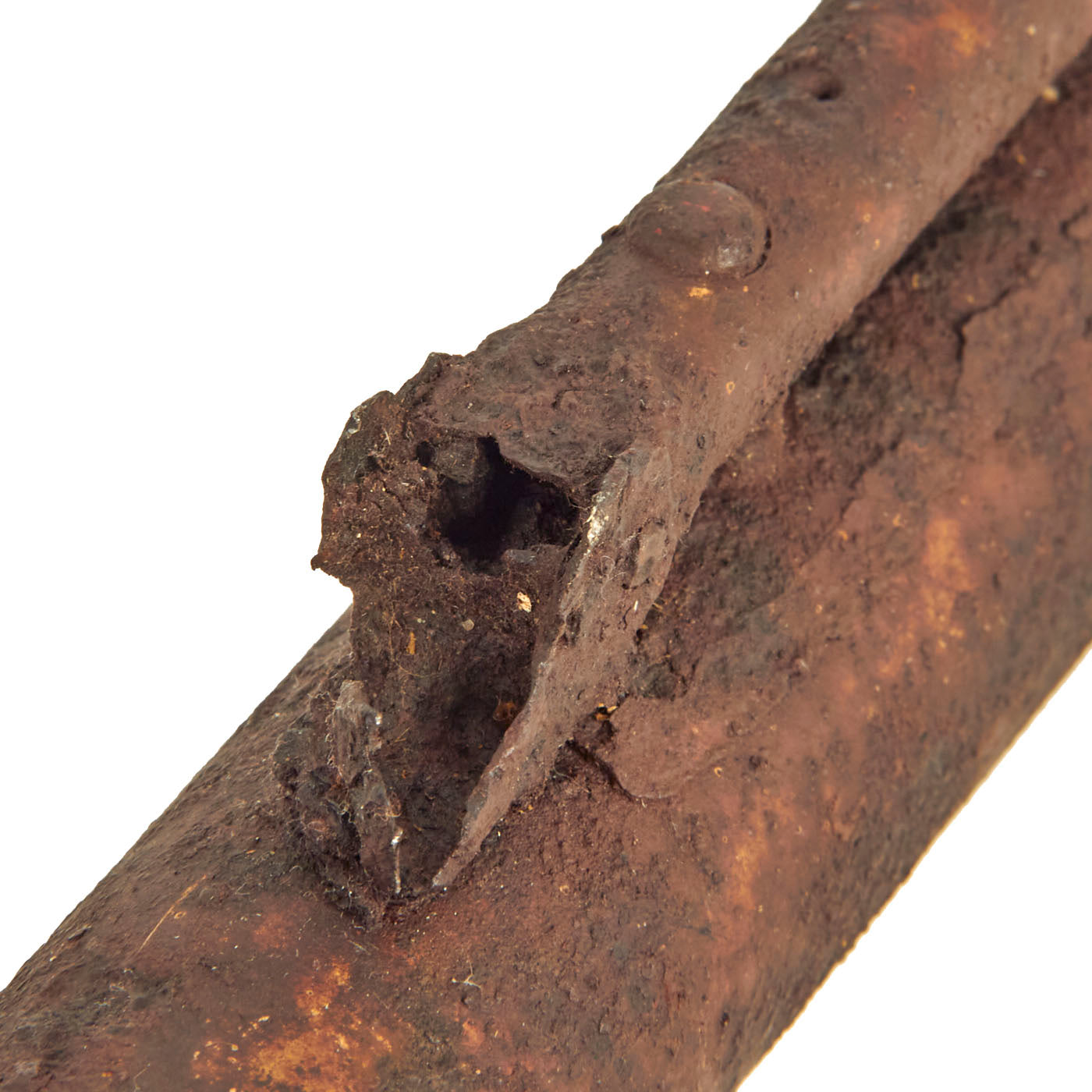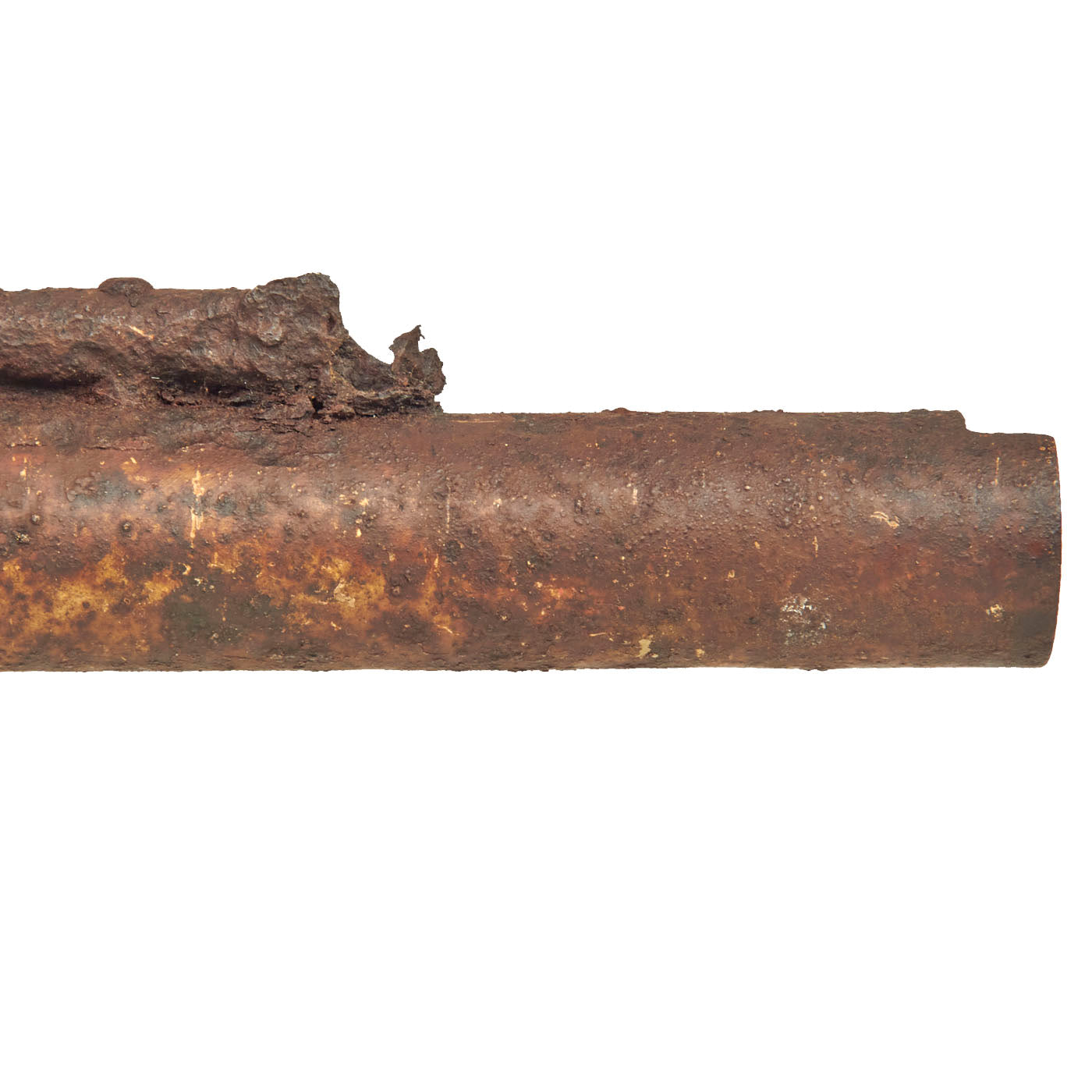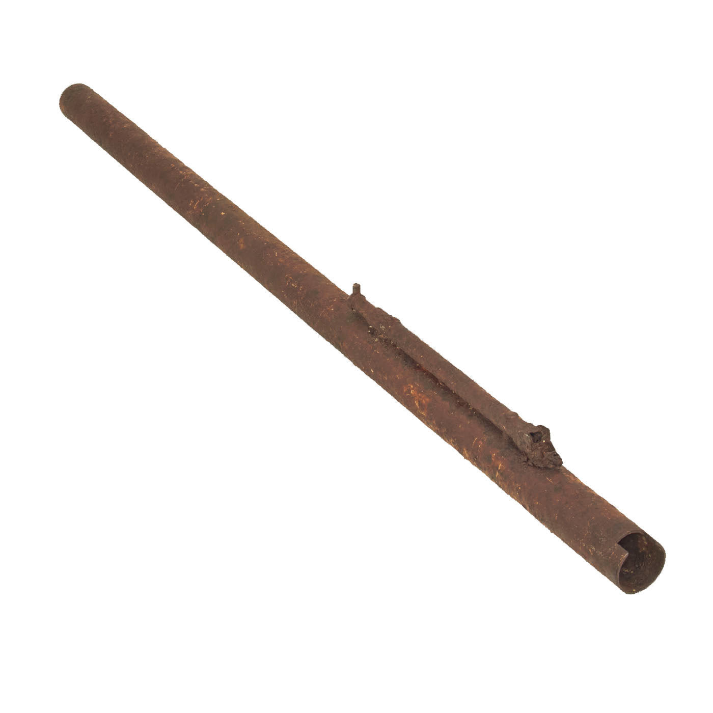 The Panzerfaust has been demilitarized according to specifications by the BATF. It still retains trace amounts of its original paint. This is a heavily oxidized ground dug example.
