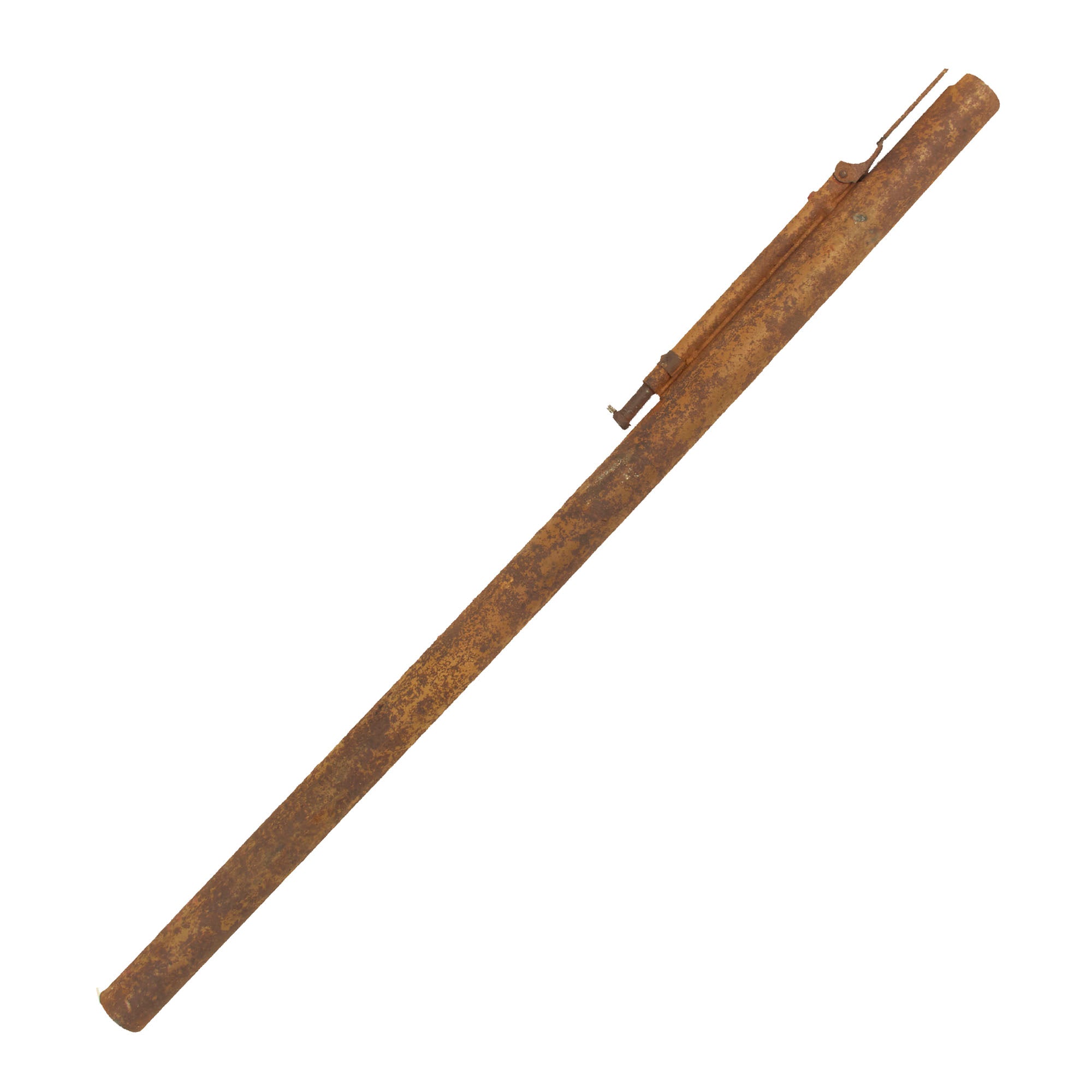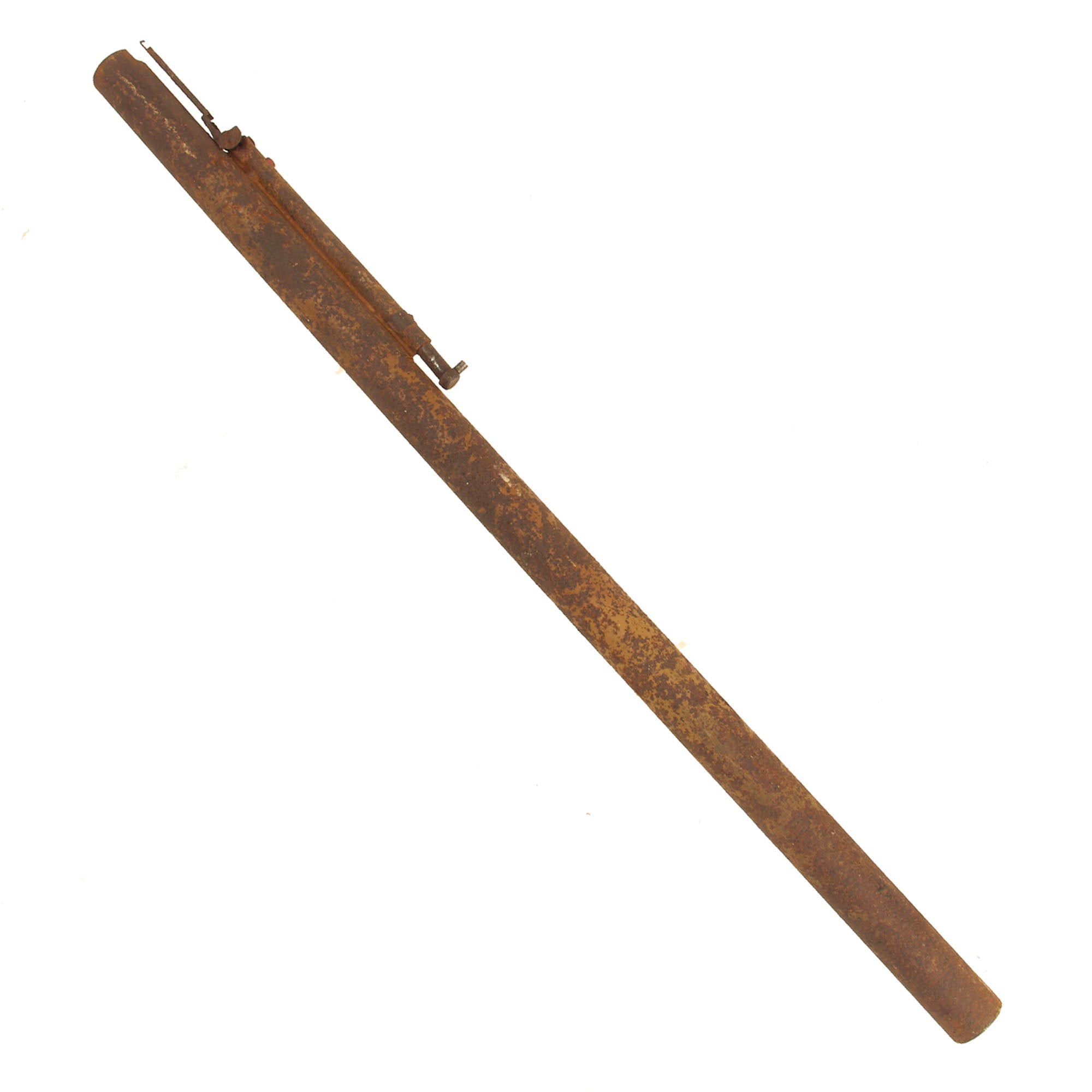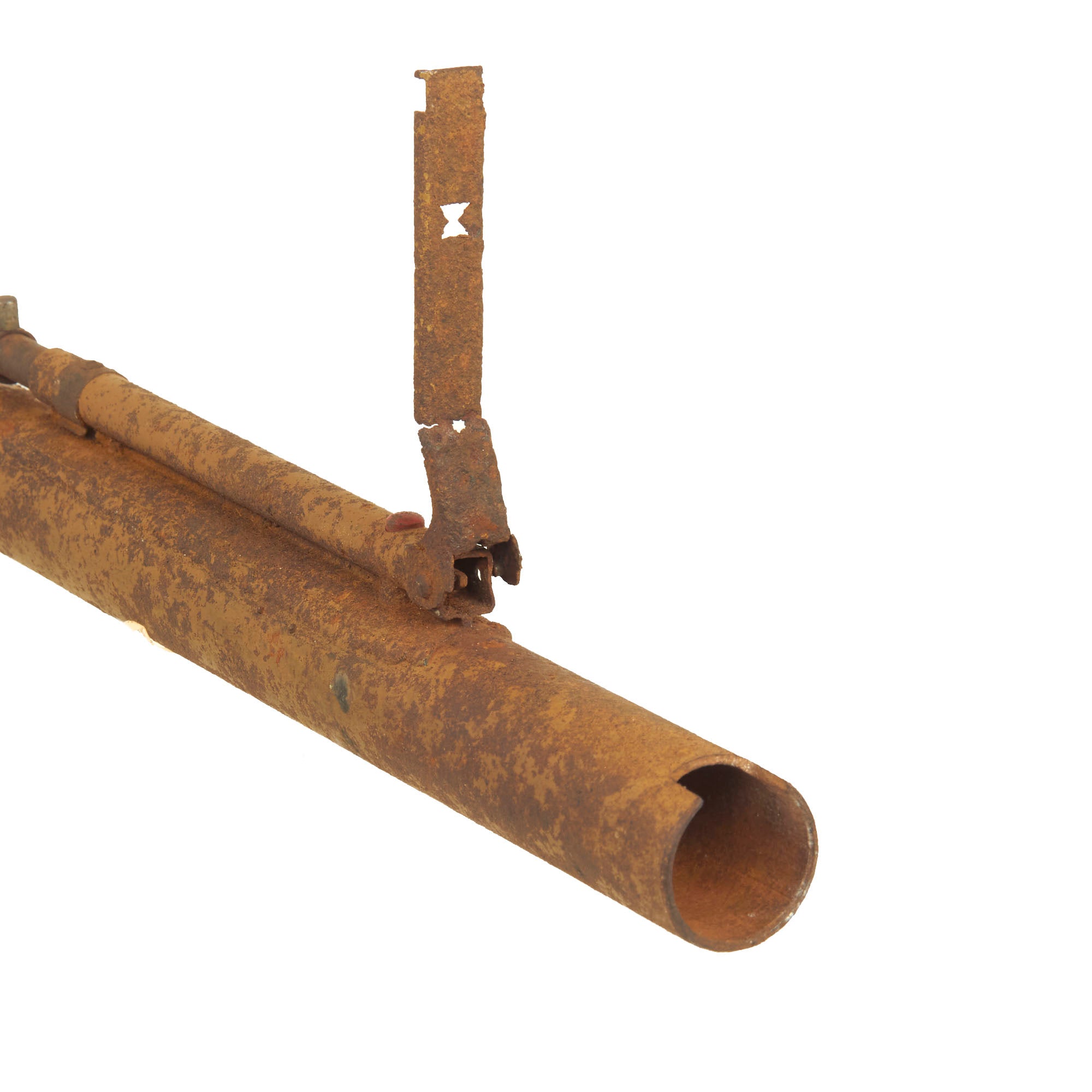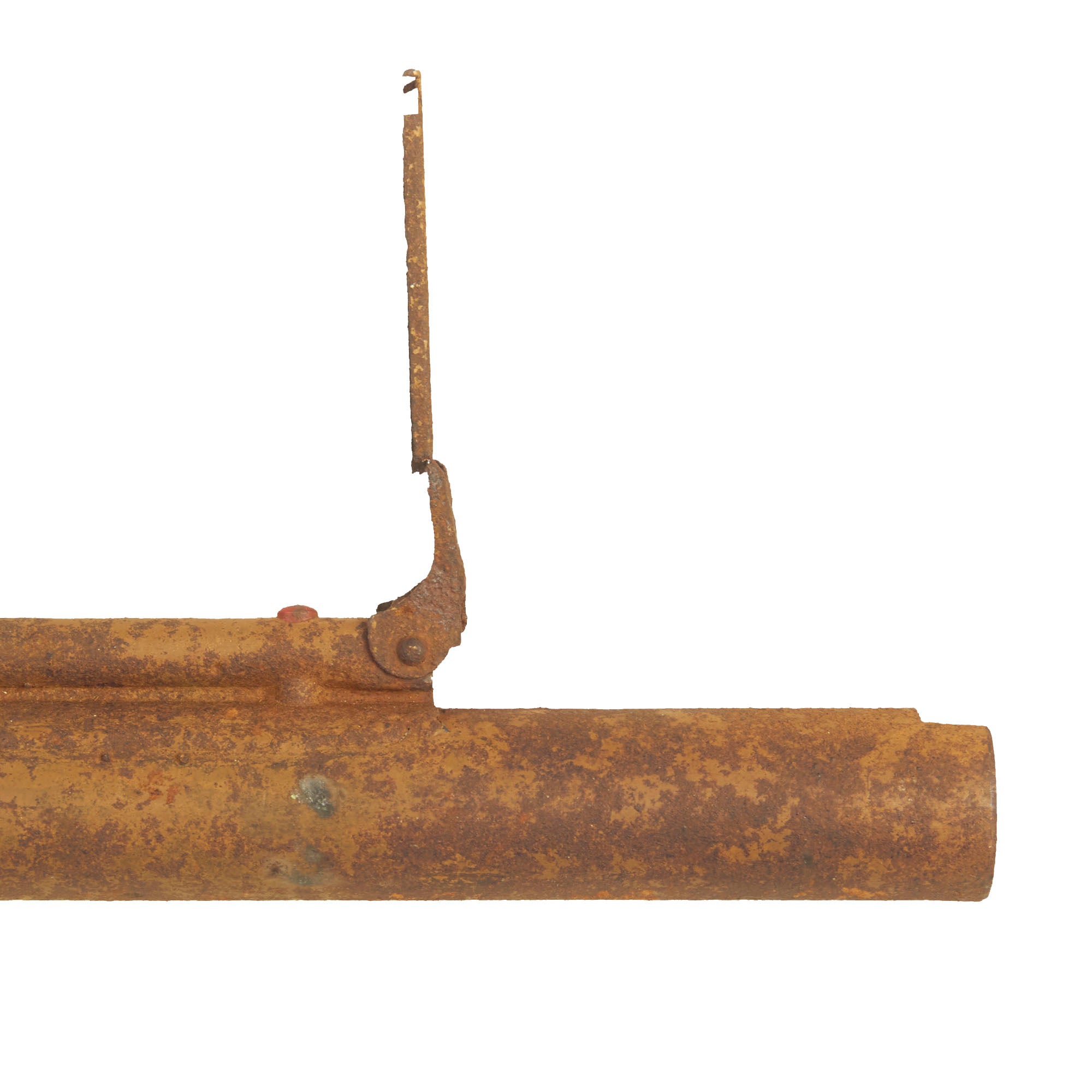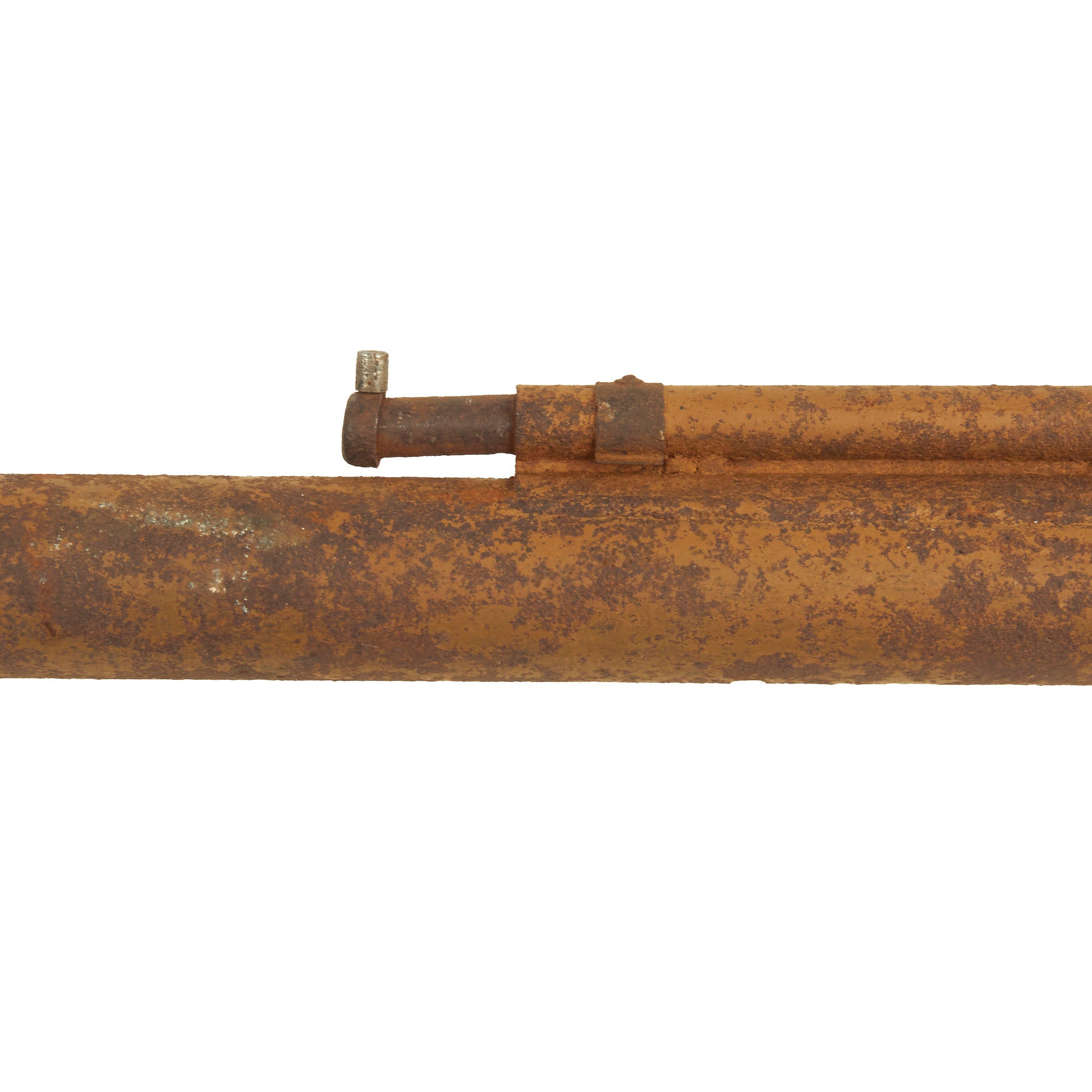The original leaf sight is present and broken away from the tube but the plunger trigger assembly is still mostly present.