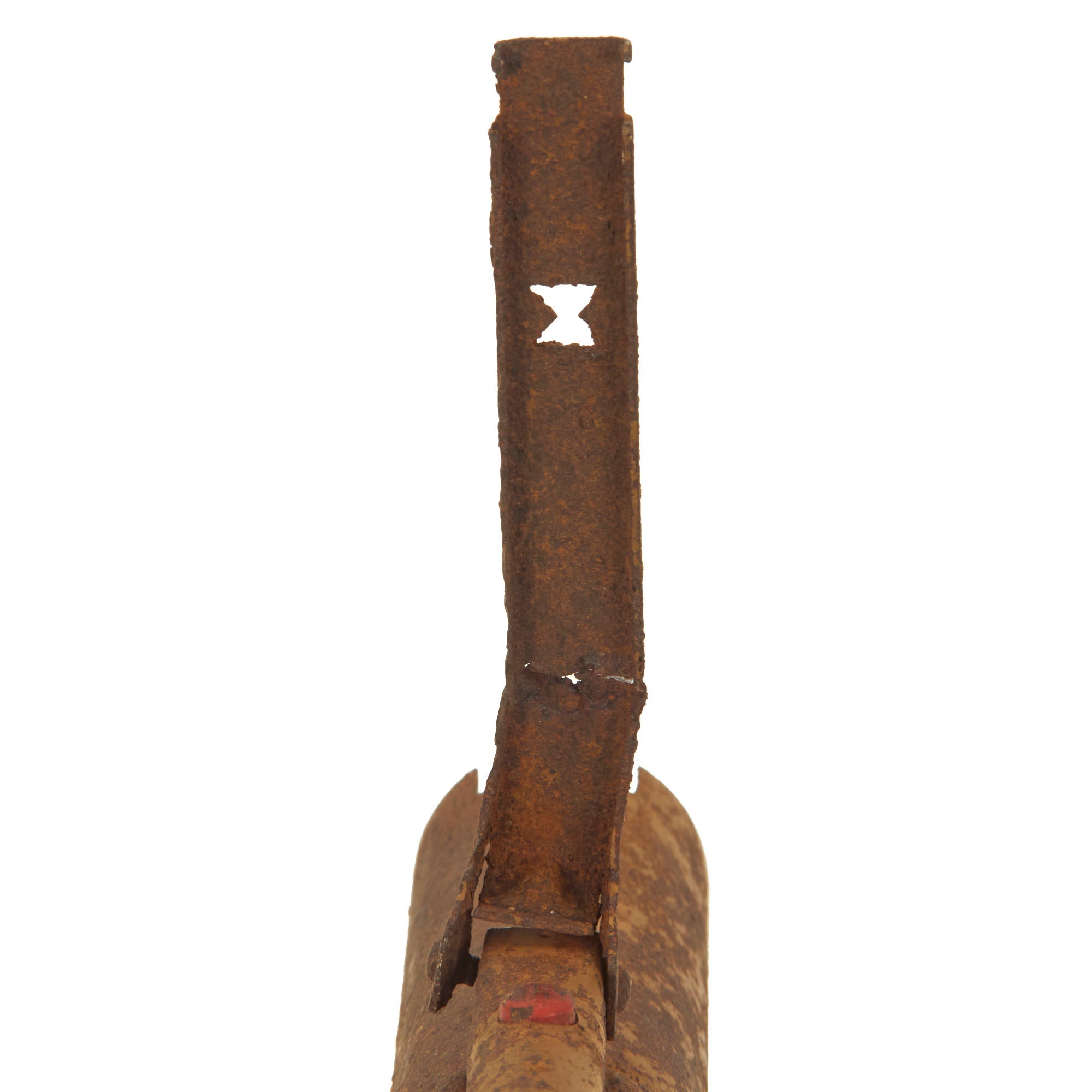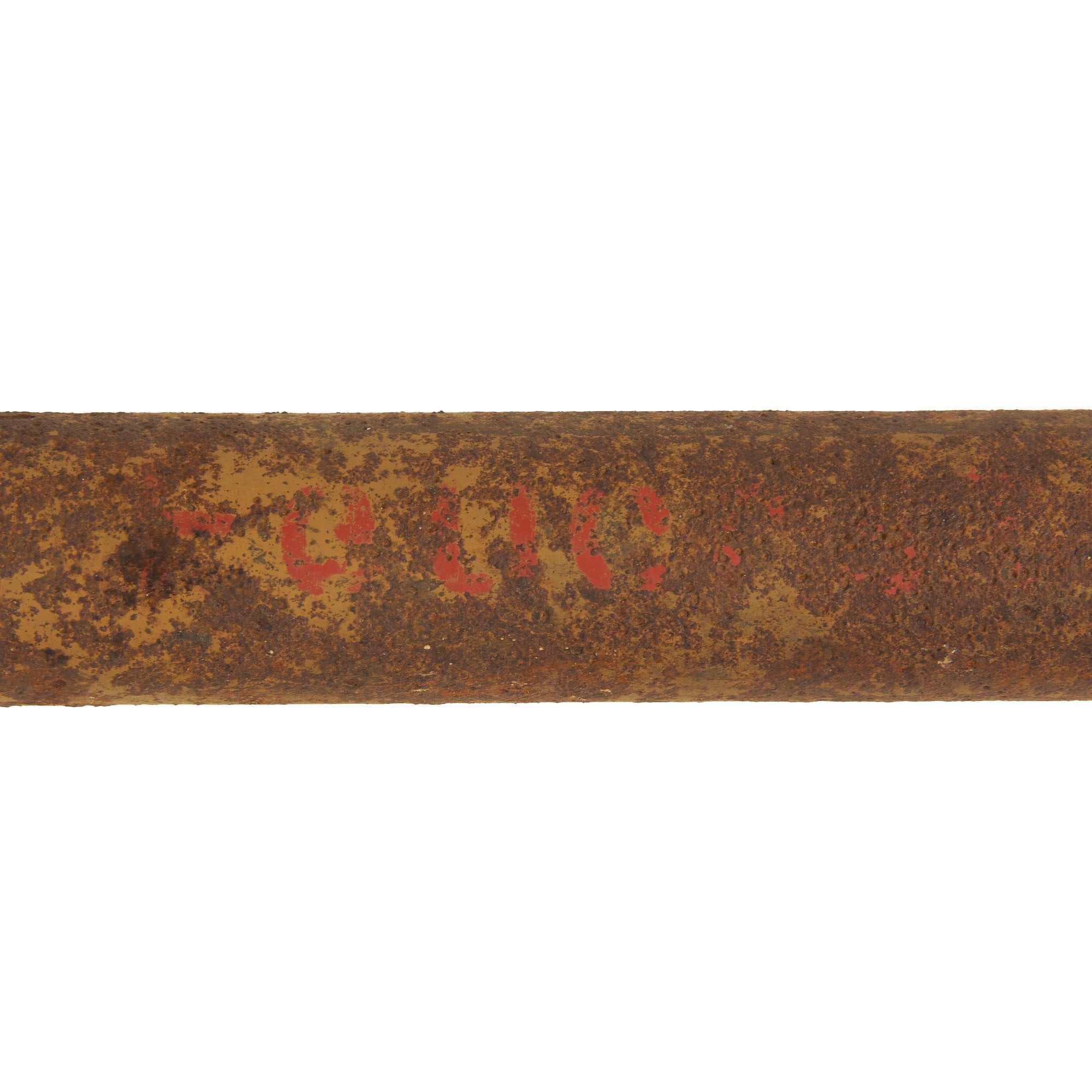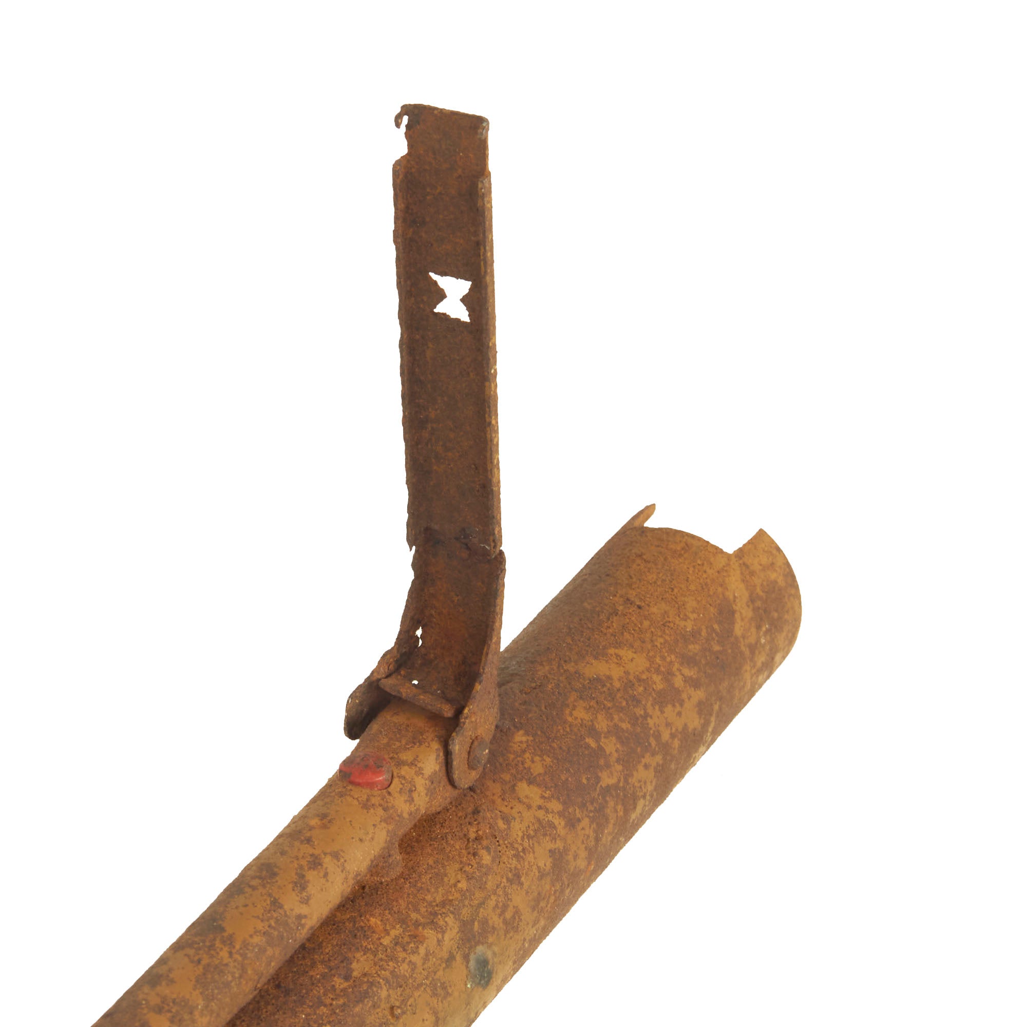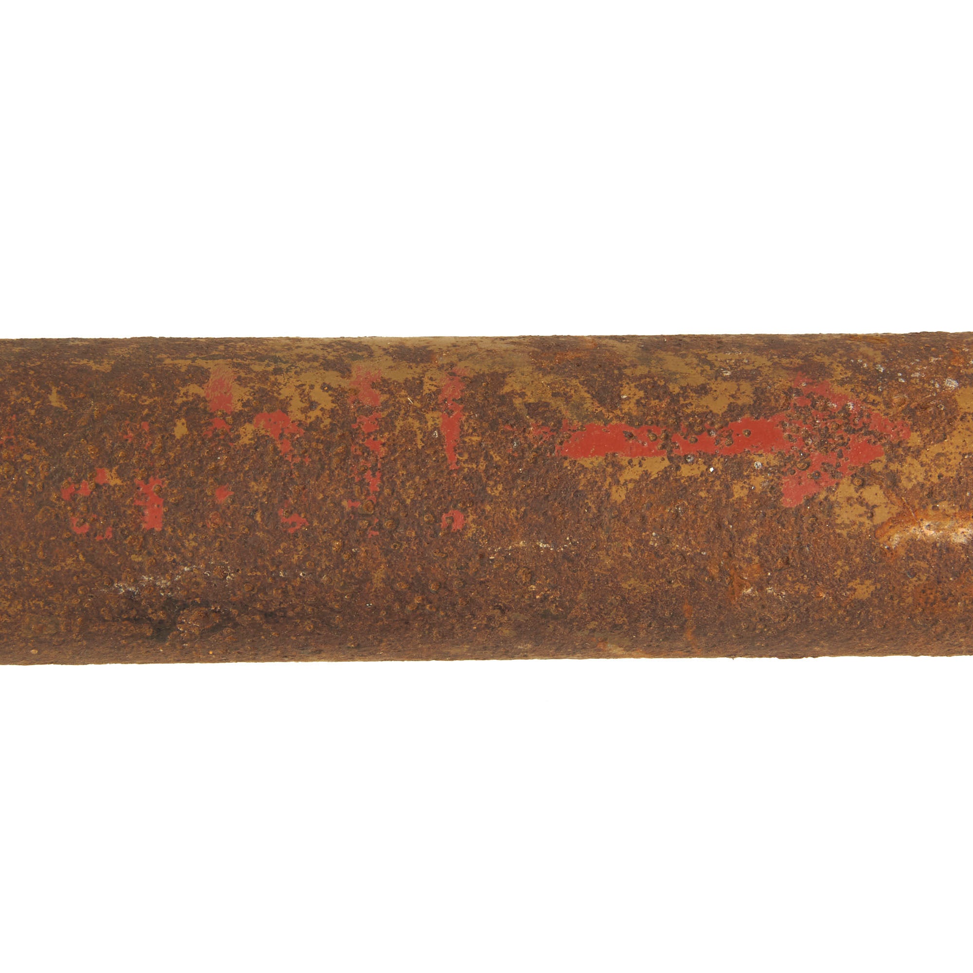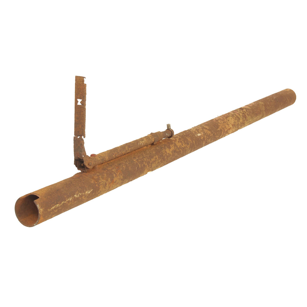 The Panzerfaust has been demilitarized according to specifications by the BATF. It still retains trace amounts of its original paint. This is a heavily oxidized ground dug example.