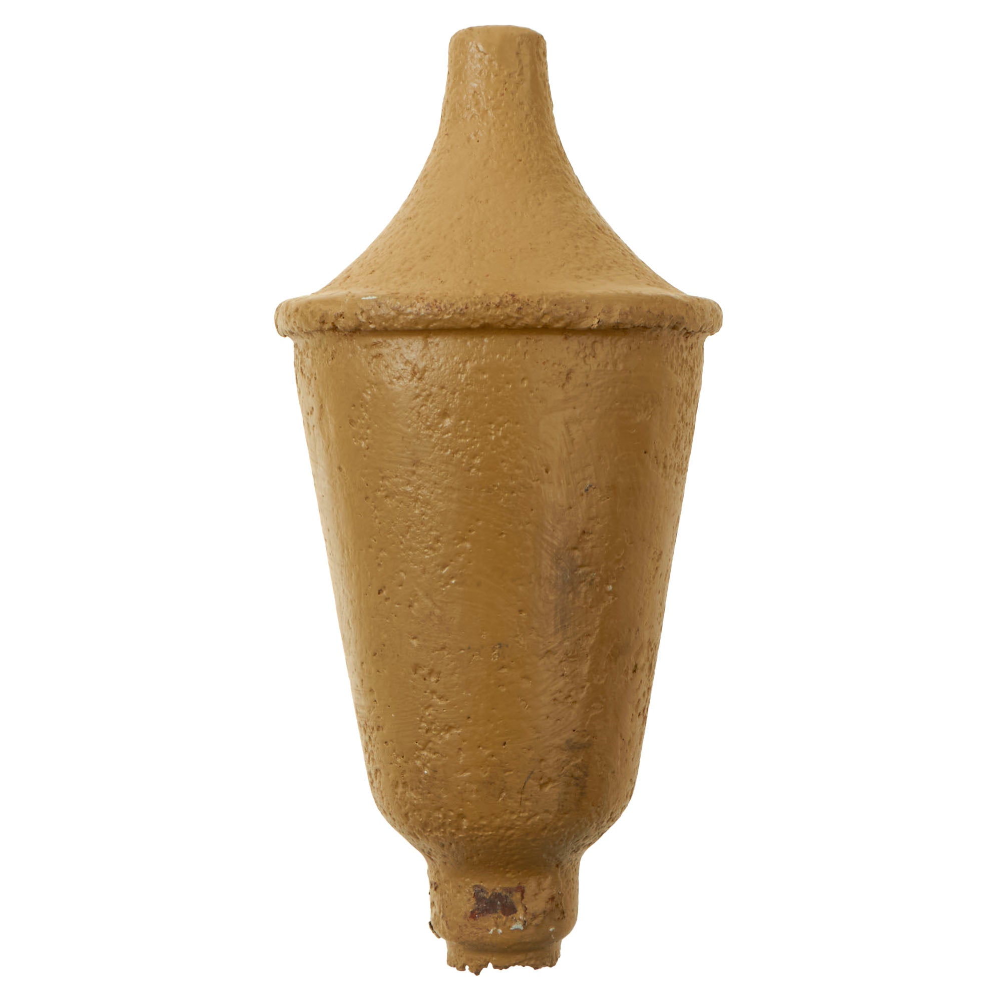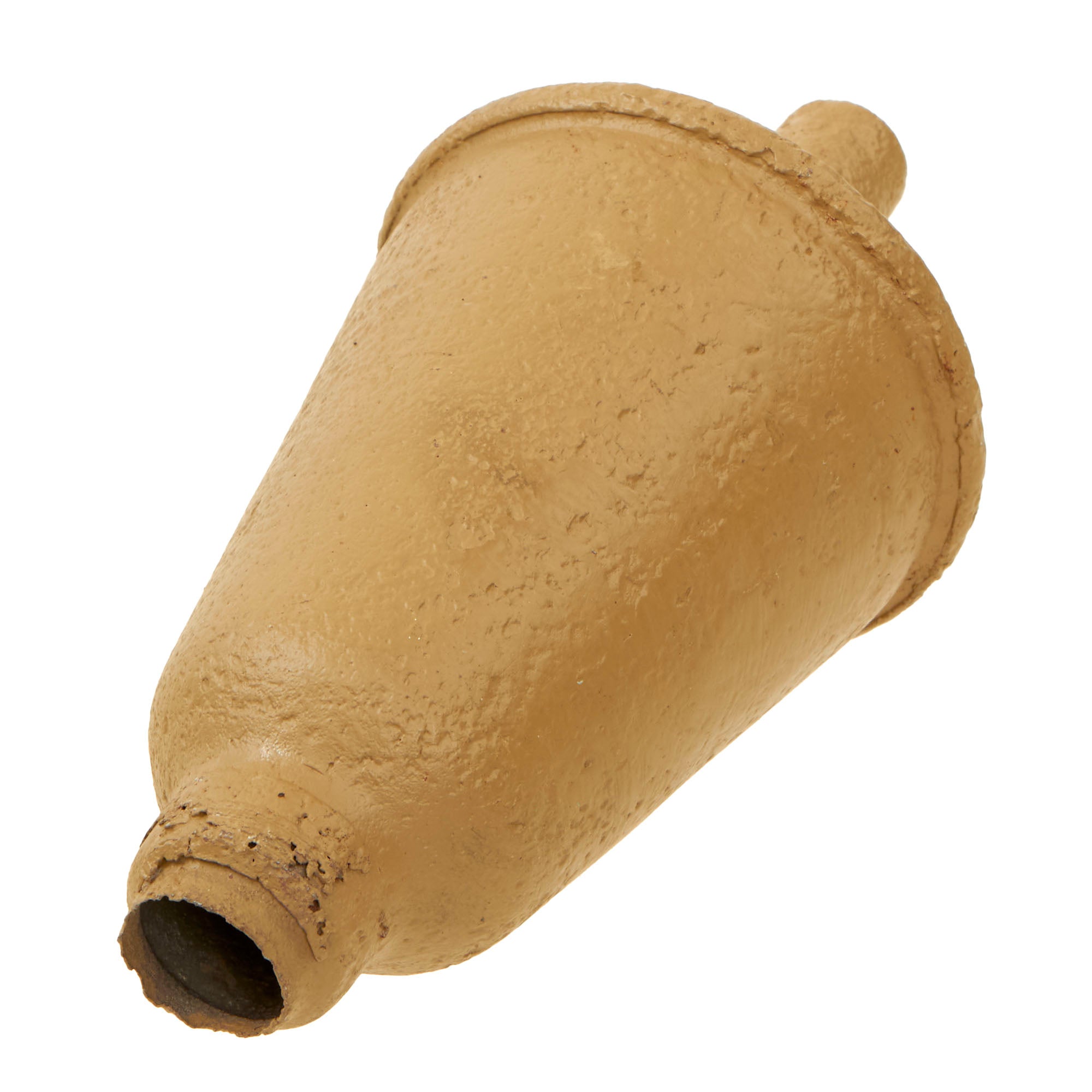 Original Item: Only One Available. This is a nice relic rocket for the the “throw away” rocket launcher as used by German forces during WWII. The rocket is an inert example and is totally inert. The tube has been demilitarized and rendered inoperable according to the current BATF standards governing this type of ordnance. The shaft is entirely absent and the threading is gone, and the rocket has been repainted.Unloaded or dummy grenades, artillery shell casings, and similar devices, which are cut or drilled in an BATF-approved manner so that they cannot be used as ammunition components for destructive devices, are not considered NFA weapons. This example is in total compliance and is NOT AVAILABLE FOR EXPORT.Panzerfaust 30 klein ("small") or Faustpatrone (Translated literally to mean: Tank Fist Small) was the original version of the Panzerfaust. First delivered in August 1943 with a total weight of 3.2 kilograms (7.1 lb) and overall length of 98.5 cm (38.8 in). The 30 was indicative of the nominal maximum range of 30 m (33 yd). It had a 3.3 cm (1.3 in) diameter tube containing 54 grams (1.9 oz) of black powder propellant launching a 10 cm (3.9 in) warhead carrying 400 g (14 oz) of explosive. The projectile traveled at just 30 m (98 ft) per second and could penetrate 140 mm (5.5 in) of armor.The rocket measures roughly 8½” and is entirely missing the shaft of the rocket as well as the fins. The head was likely ground dug and then entirely repainted in the original color. The interior still retains the cone-shaped charge which is often lost.A scarce example of a relic Panzerfaust 30 rocket, ready for further research and display.
