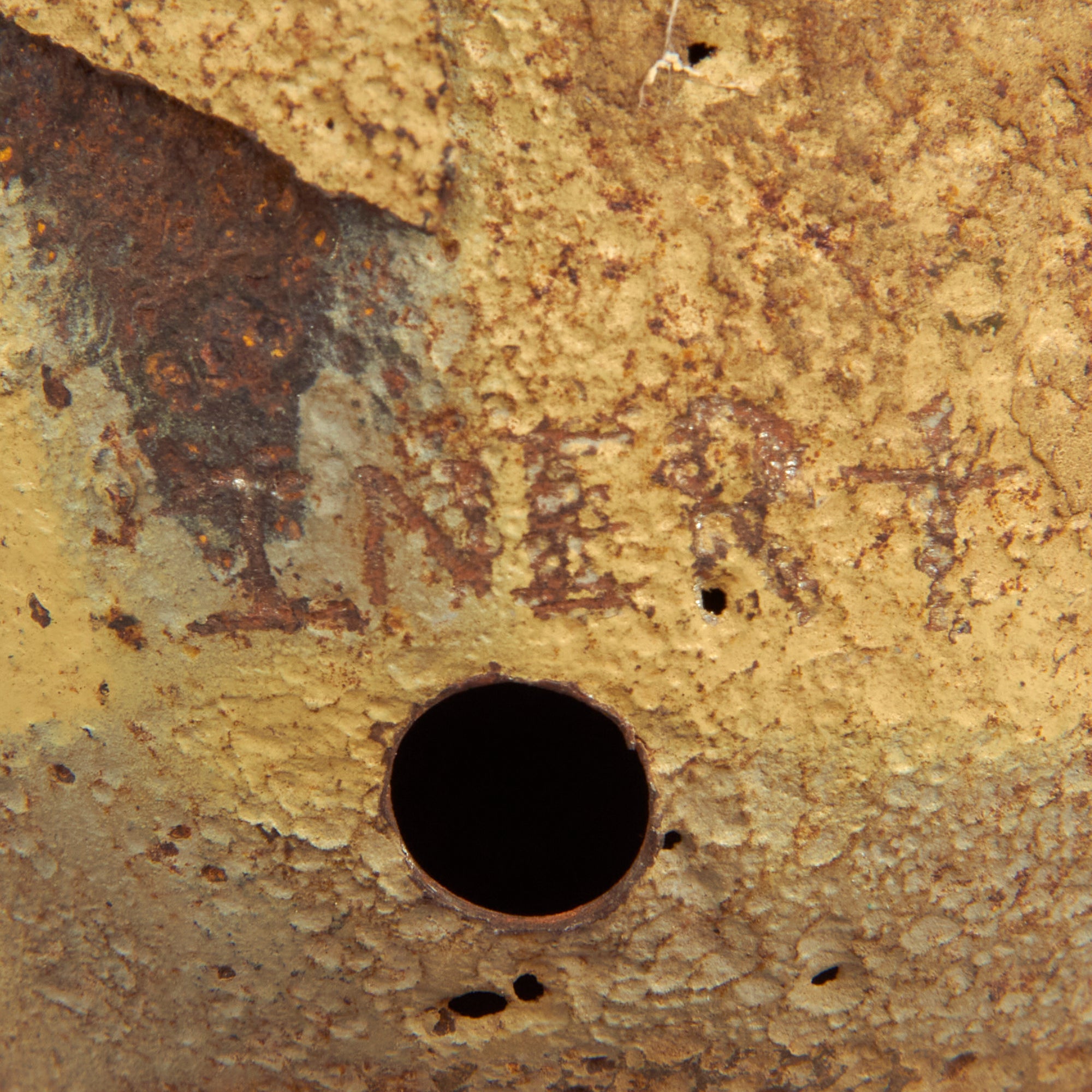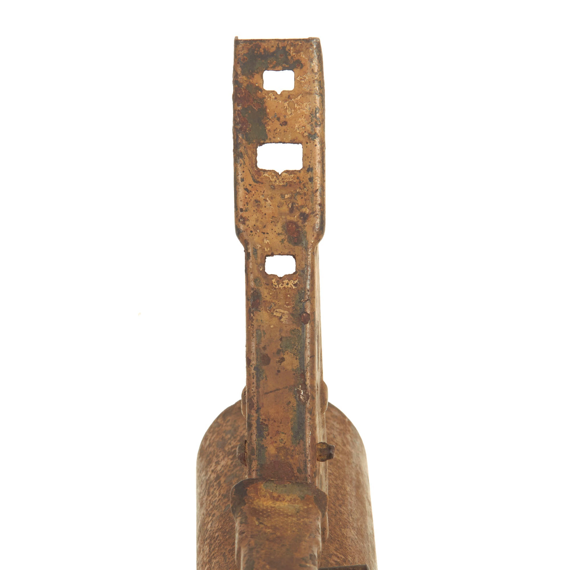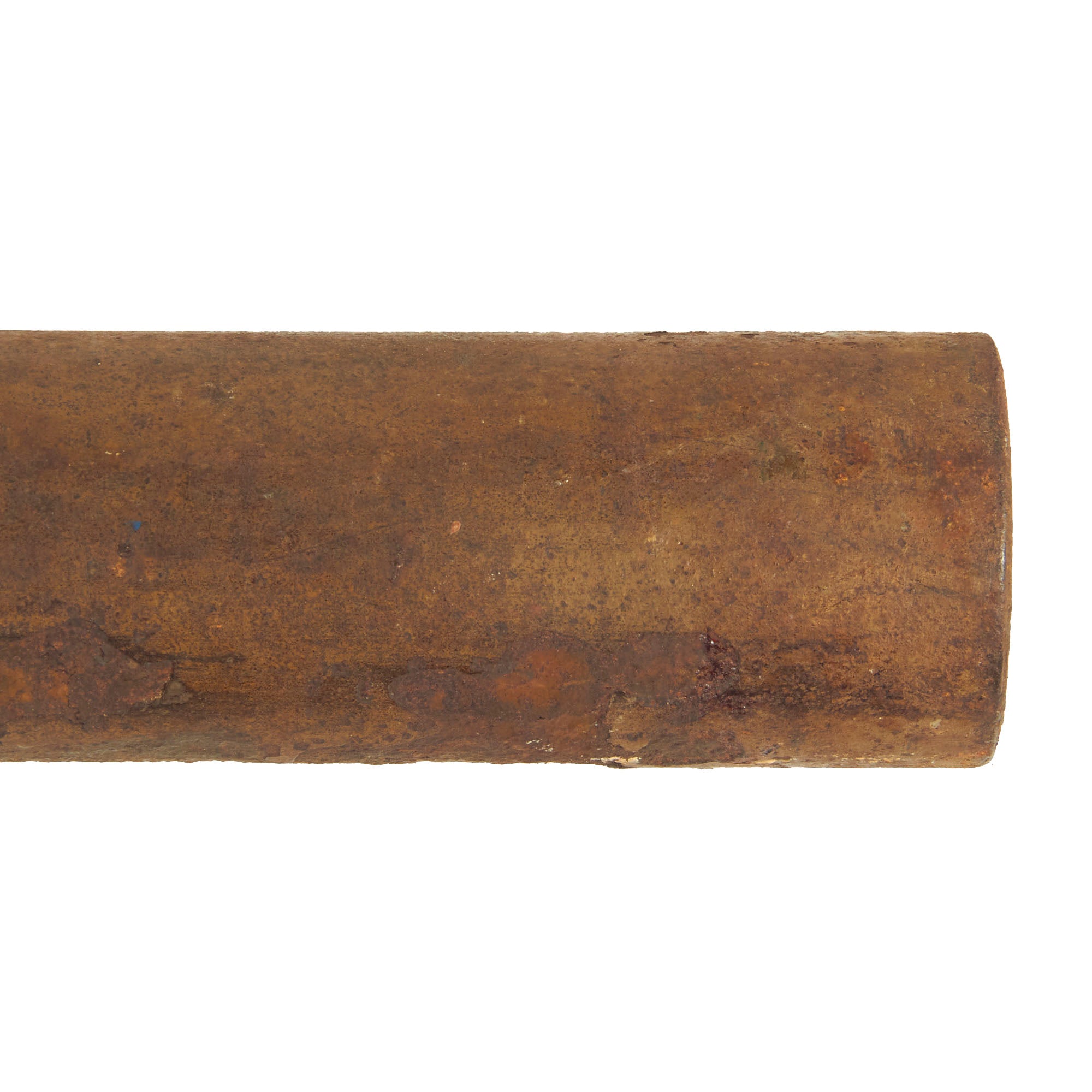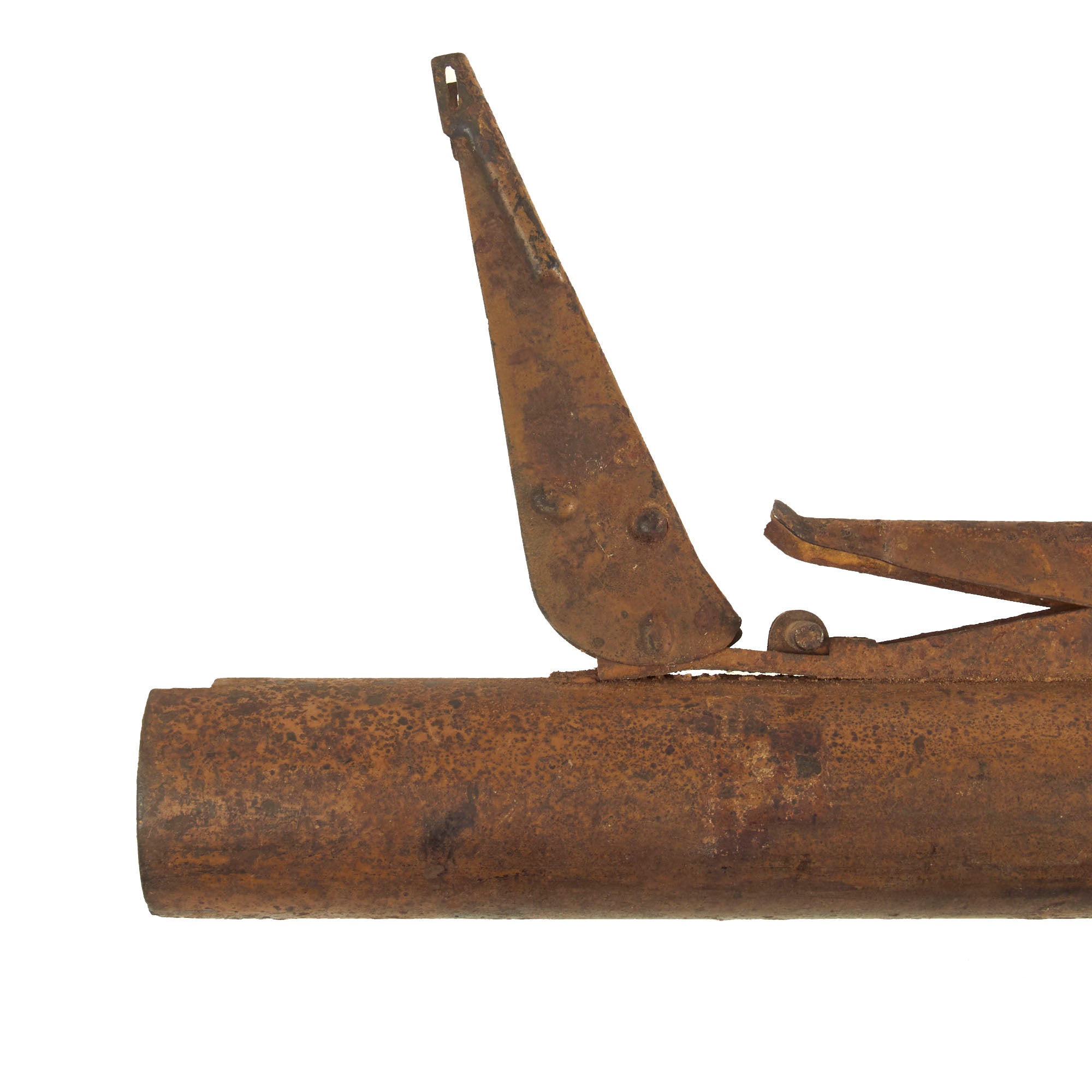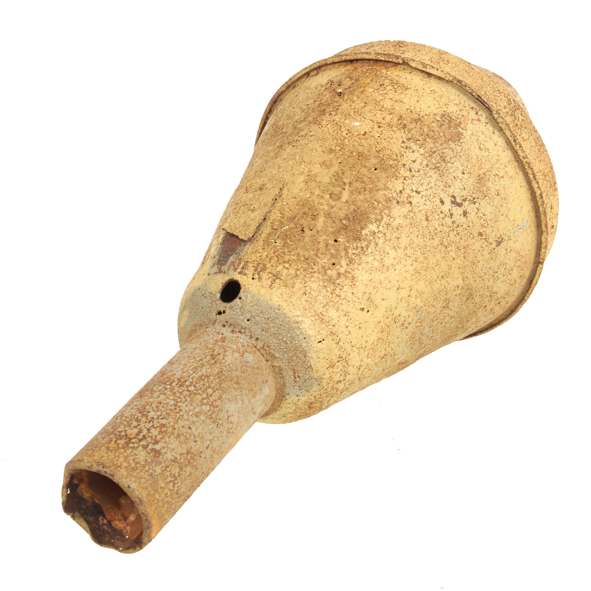 This example has been demilitarized according to specifications by the BATF. It still retains some of the original dunkelgelb (dark yellow) paint with the original red stenciling still faintly visible! Original leaf sight and trigger assembly are also still present. The original rocket is incomplete, missing the wooden tail section and metal fins. The warhead appears to have been recovered from the field and was sandblasted, cleaned and repainted to give it a more appealing appearance.