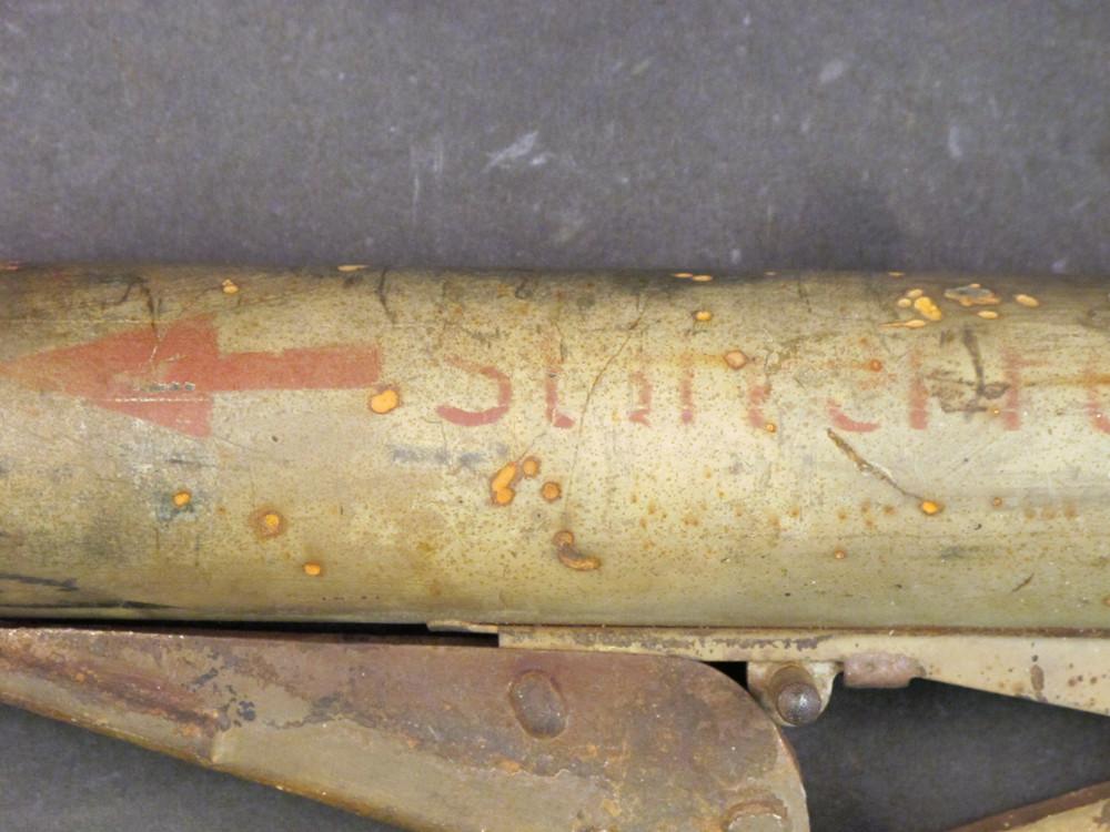 This example, acquired from the son of a WWII veteran, has been demilitarized according to specifications by the BATF. It still retains its original paint with visible red stenciling still legible, original leaf sight and plunger trigger assembly are also still present, regrettably original rocket is no longer present, but we do offer a very fine reproduction.
