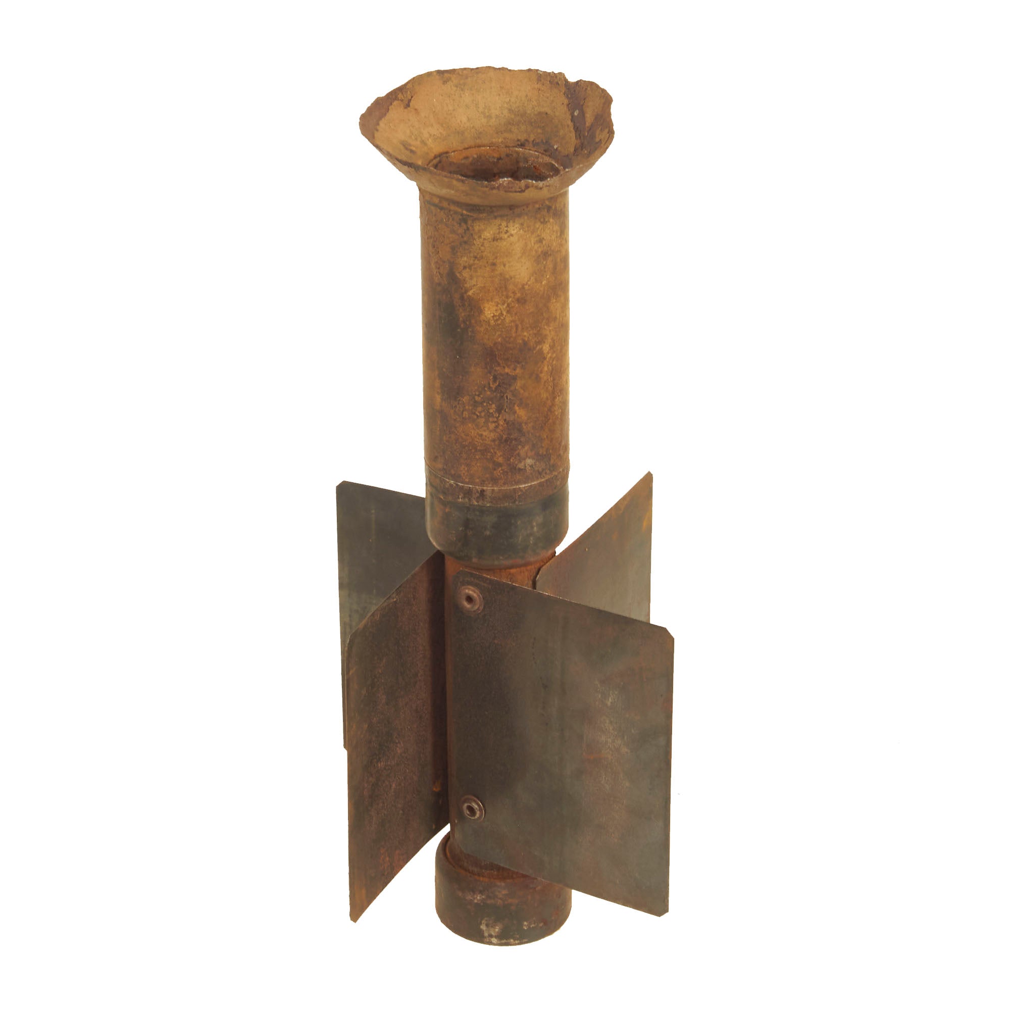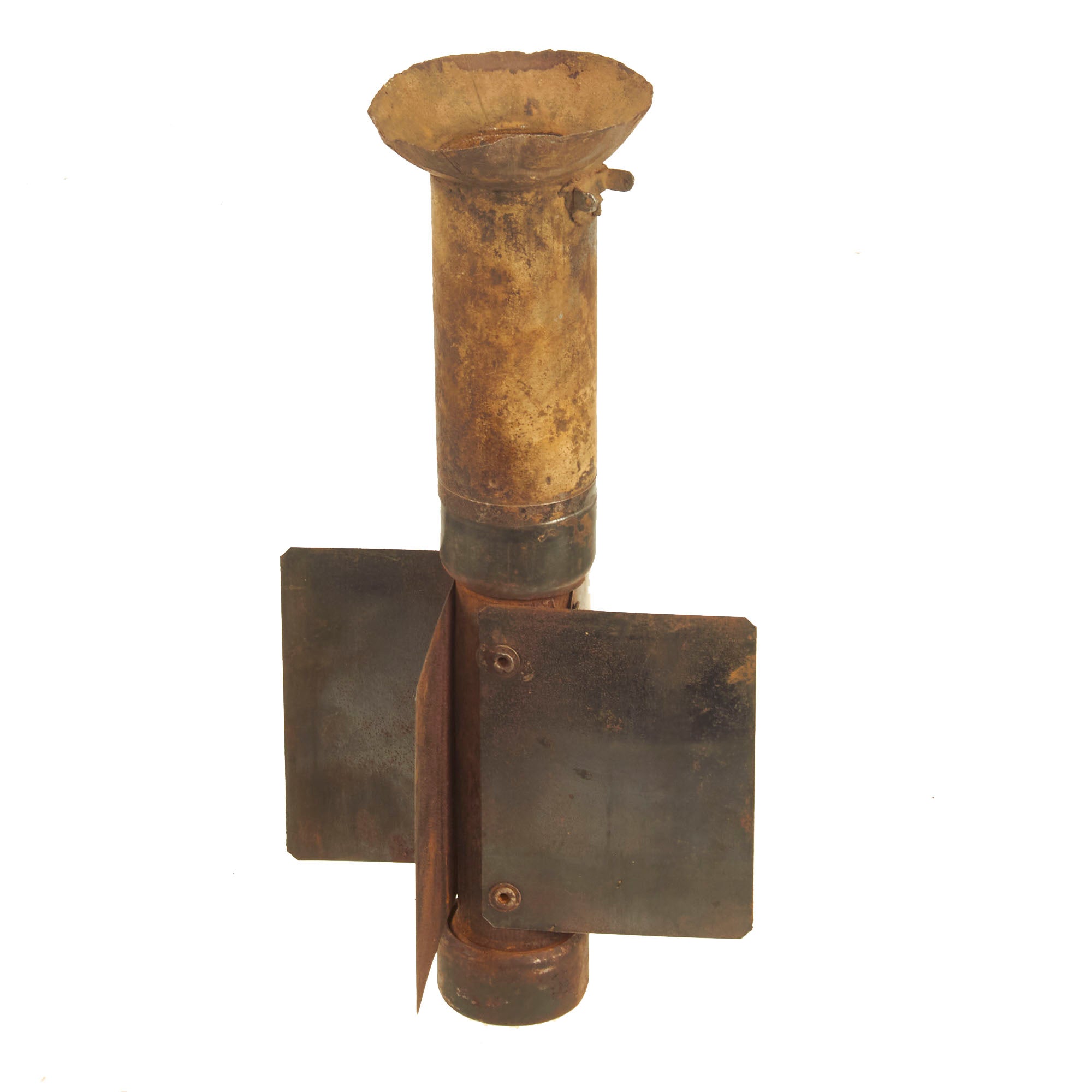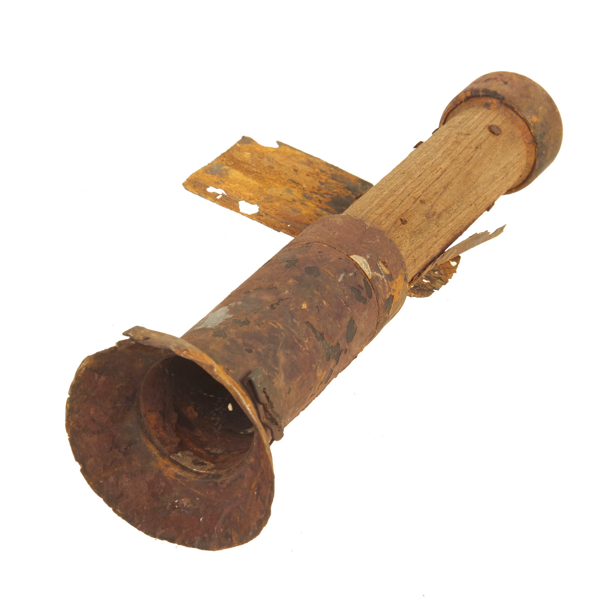Original Item: Only One Available. The Panzerfaust 60 gross ("large") or Faustpatrone (Translated literally to mean: Tank Fist Large) was the third version of the Panzerfaust. This was the most common version, with production starting in September 1944. It had a much more practical range of 60 m (66 yd), although with a muzzle velocity of only 45 m (148 ft) per second it would take 1.3 seconds for the warhead to reach a tank at that range. To achieve the higher velocity, the tube diameter was increased to 5 cm (2.0 in) and 134 g (4.7 oz) of propellant used. It also had an improved flip-up rear sight and trigger mechanism. The weapon now weighed 6.1 kg (13 lb). It could defeat 200 mm (7.9 in) of armor.