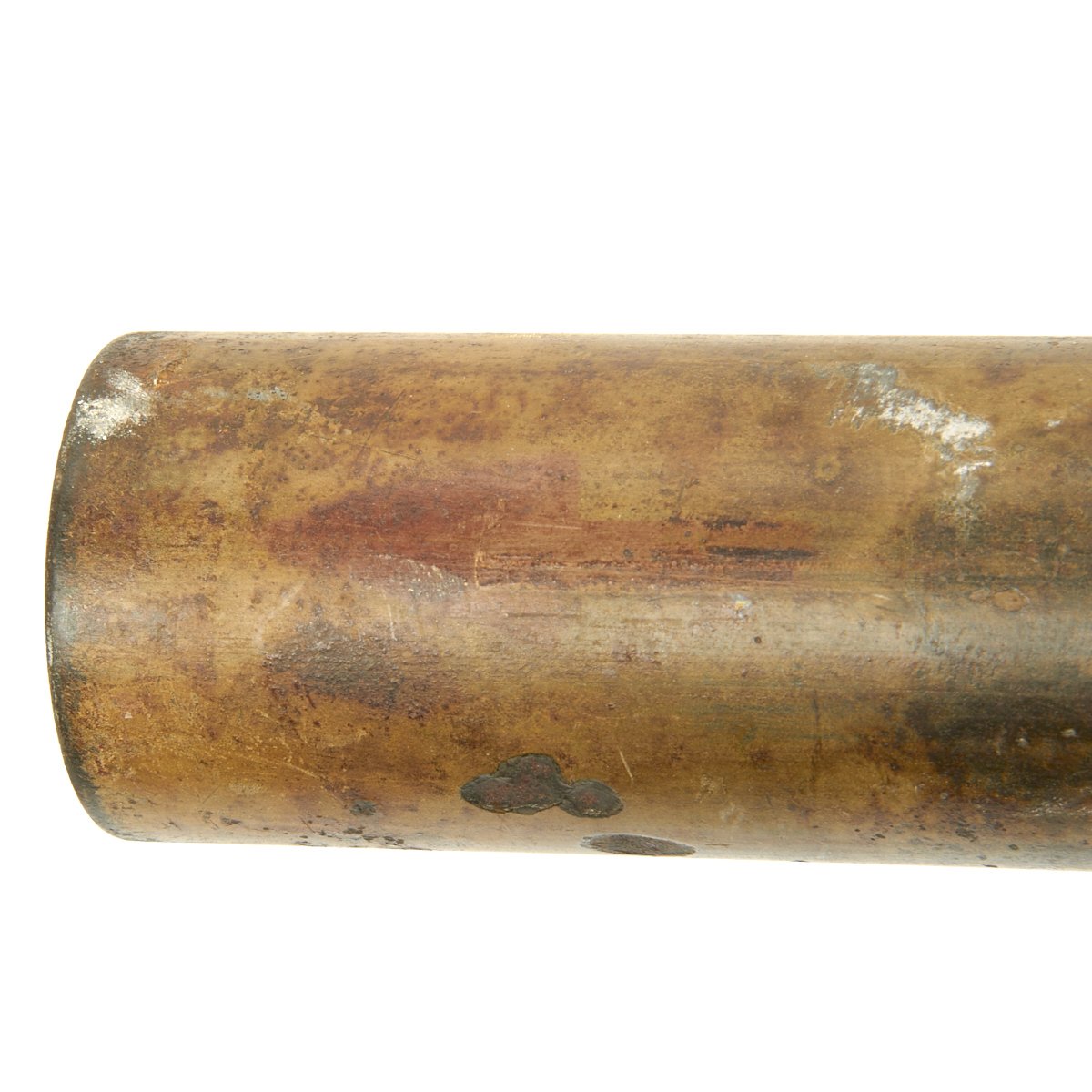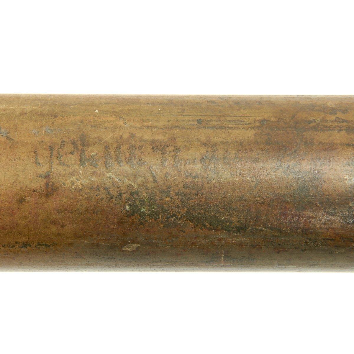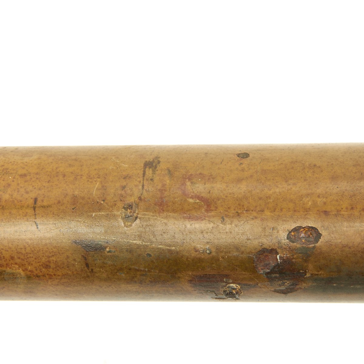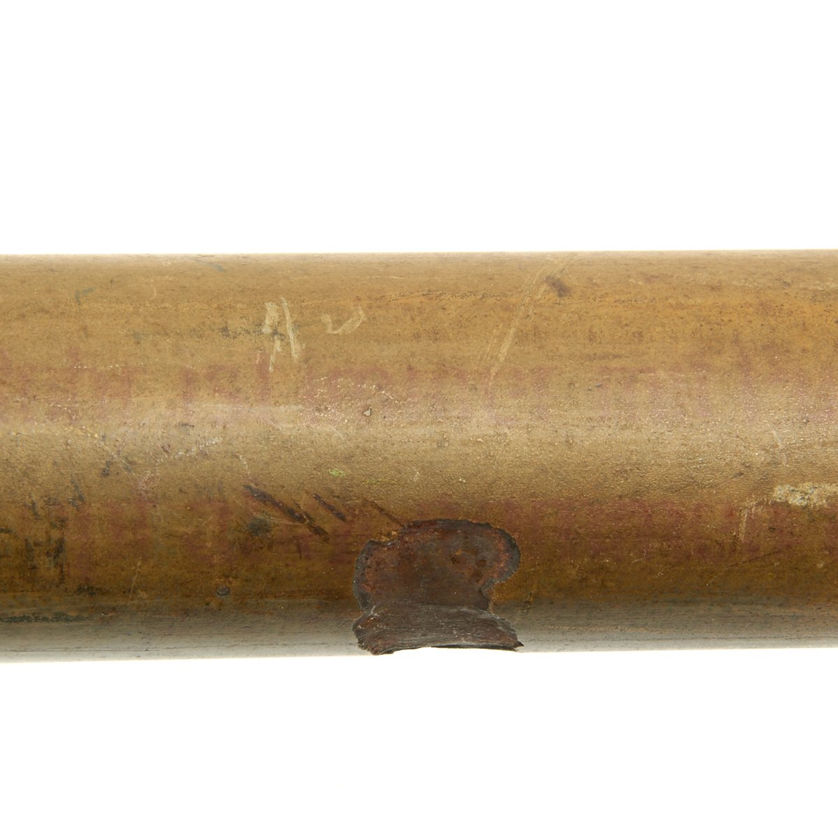 This example, acquired from a WWII veteran's estate, has been demilitarized according to specifications by the BATF. It still retains much of the original dunkelgelb paint with some original red and black stenciling still visible! Original leaf sight and trigger assembly also still present. The original rocket is complete with the wood tail section and one of the three fins still intact (rare!).