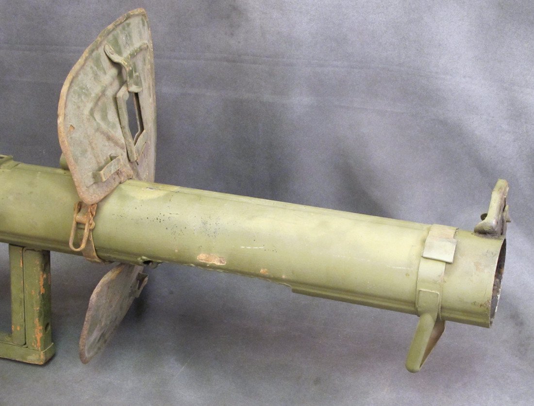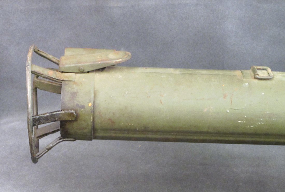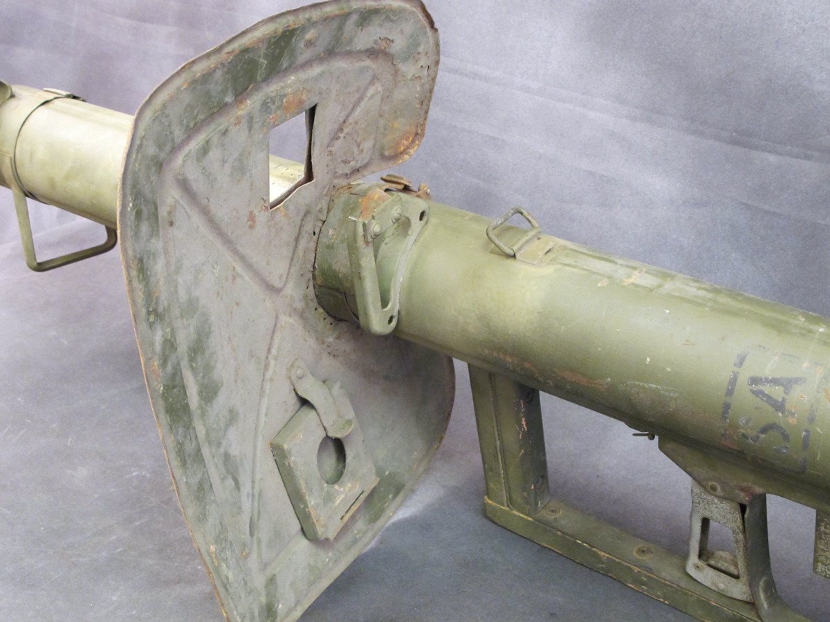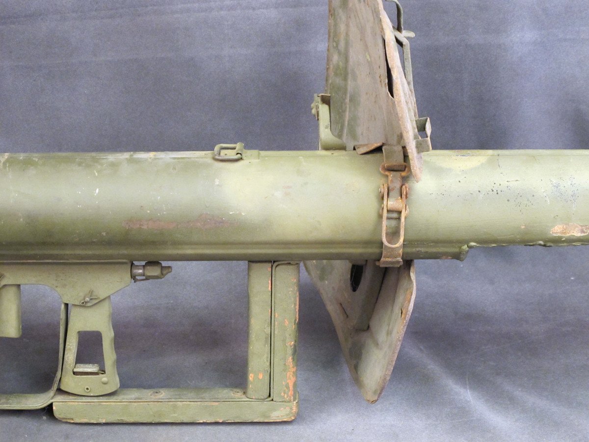 Our example is in near excellent condition, all parts are present, it has also original paint and the corrected fluted RPzB 54 barrel tube to increase strength, a complete shield, correct sights, trigger assembly, ignition system (which has also been deactivated), and is clearly marked in multiple locations.