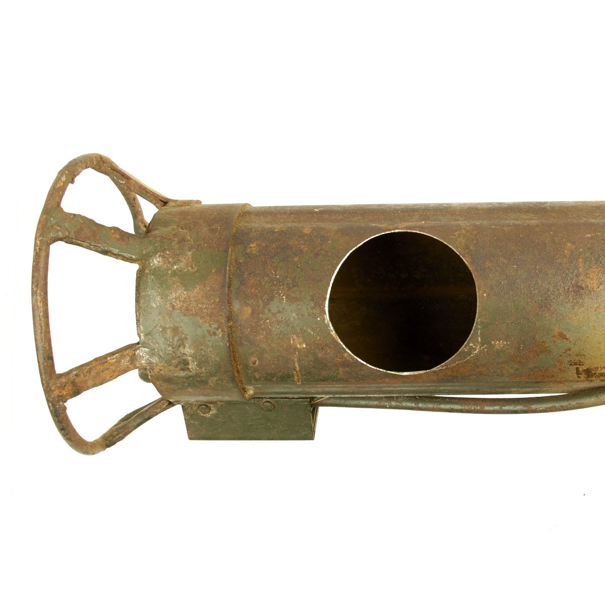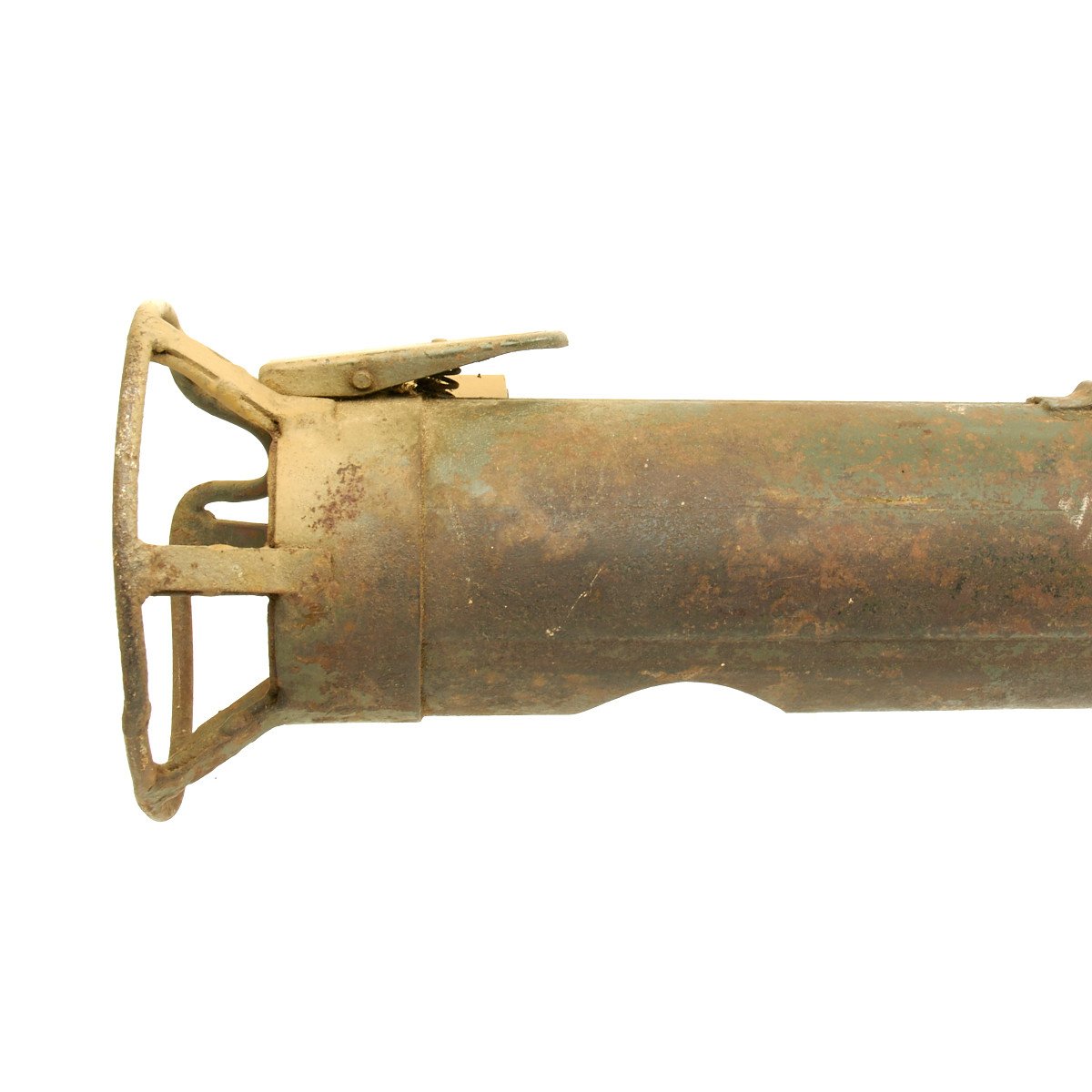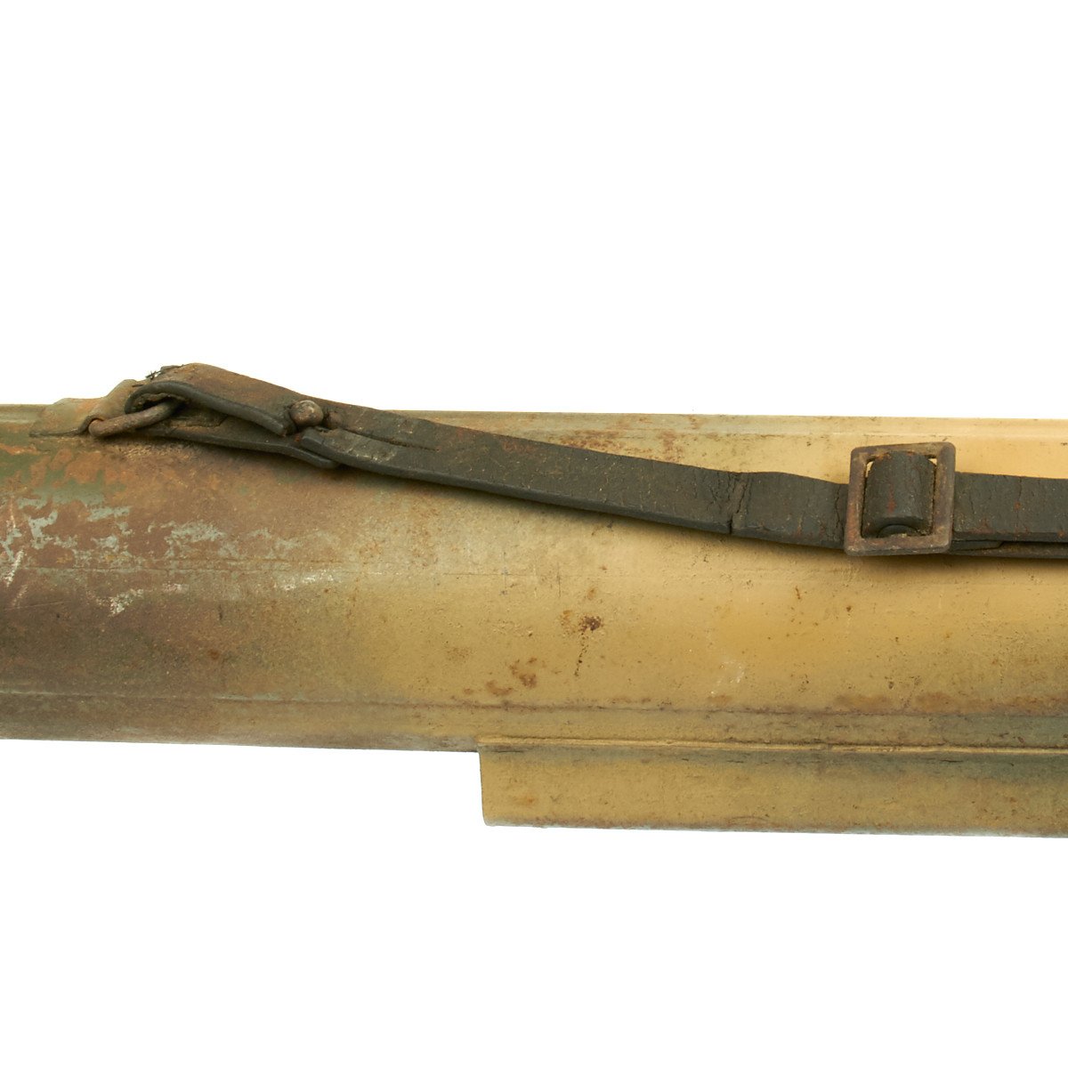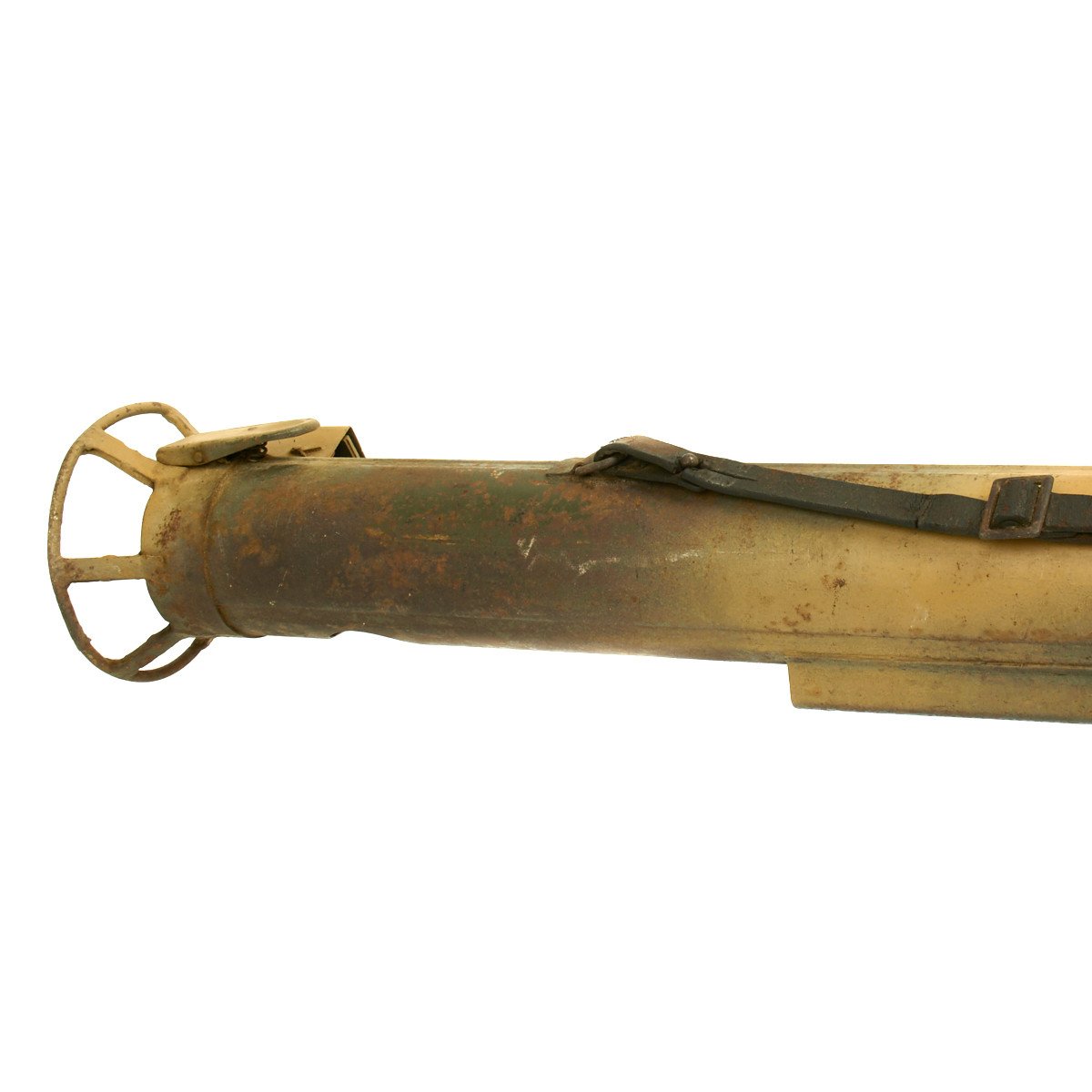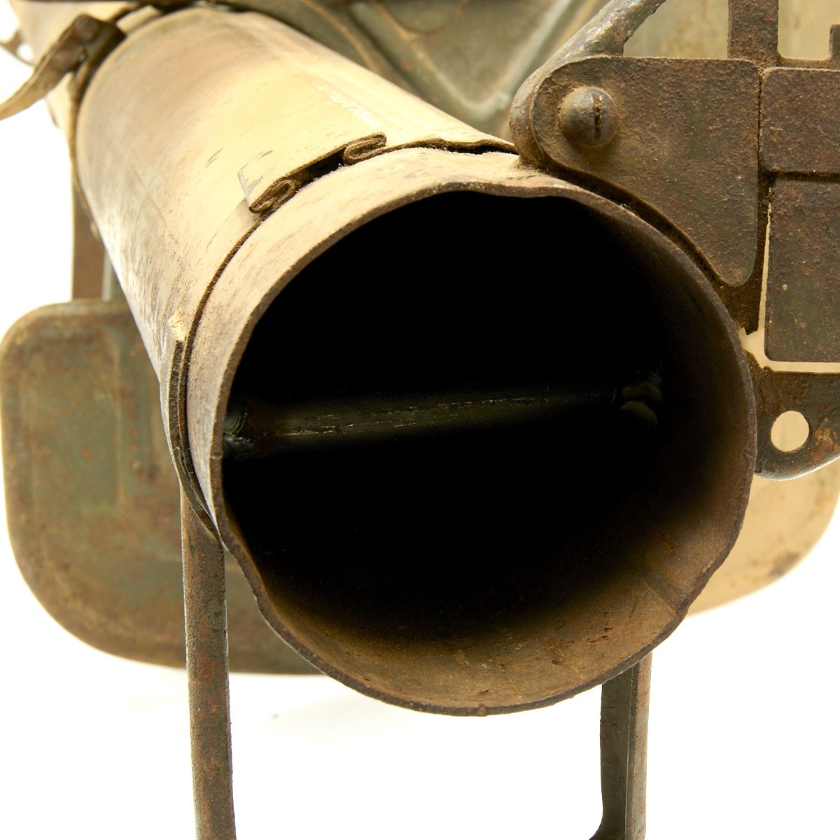 Original Item: Only One Available. Purchased from one of the best private collections in the USA, this is an exceptional example of an original WWII Panzerschreck, one of the few we have seen outside a museum. This is a stunning example of one of the most iconic WWII anti-tank weapons and will become the centerpiece of any world war two collection. This item requires no type of license as it has been fully deactivated according to specifications outlined by the BATF, rendering it totally inert and incapable of ever being converted to an explosive device. This is an original German made Panszerschreck that recovered in Germany and still bears the original camouflage paint.