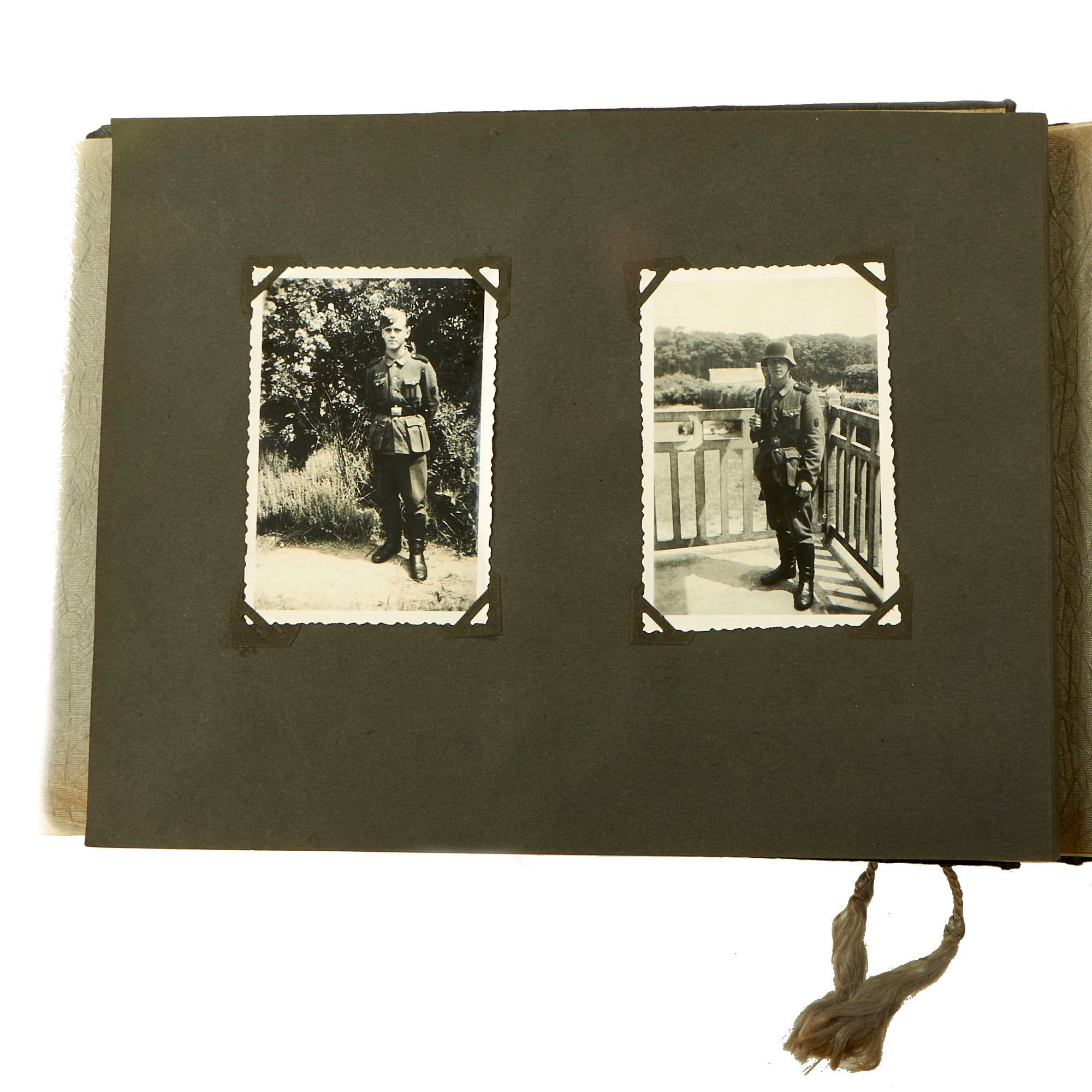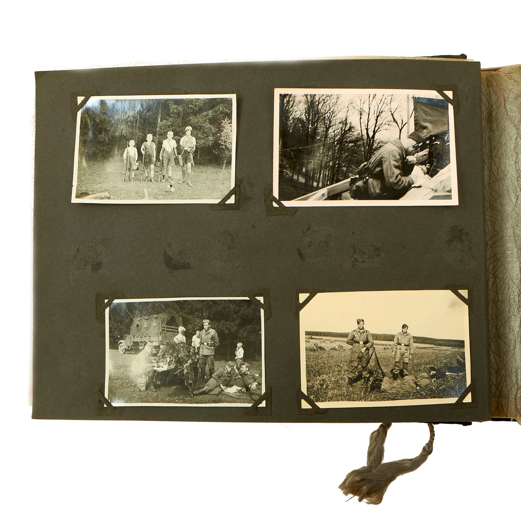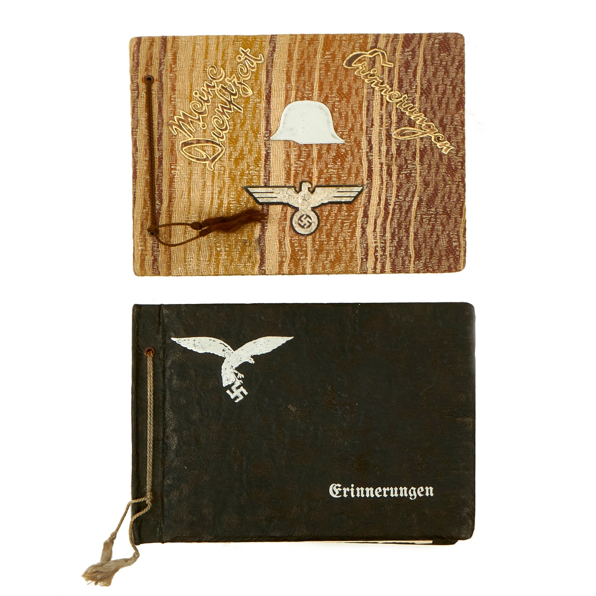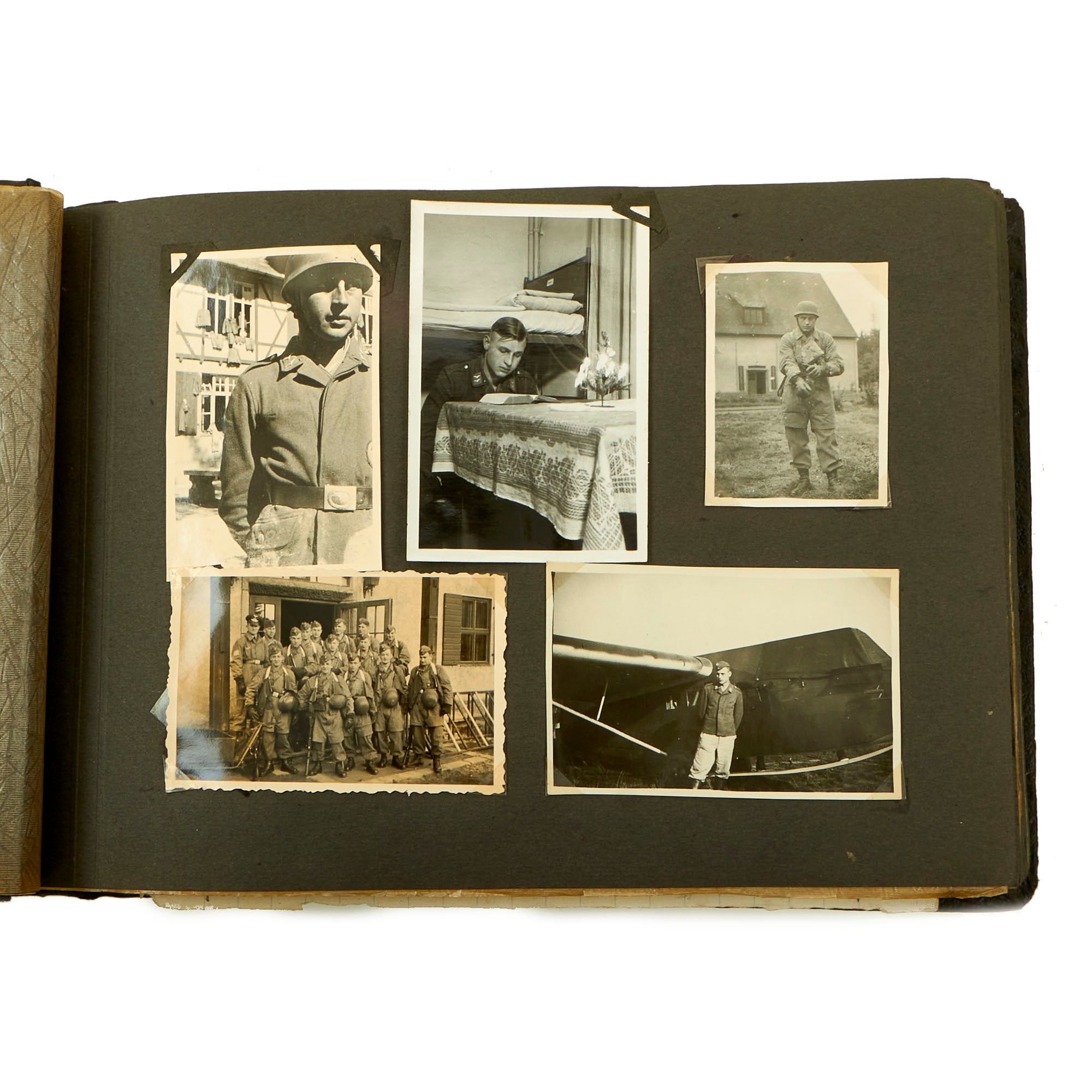 Original Item: One-of-a-kind-set. Here we have a fantastic historical research opportunity, in the form of two very nice personal photo albums owned by brothers who both fought in the war. The older brother enlisted in the Luftwaffe, becoming a Fallschirmjäger Paratrooper that participated in operations in Crete, while the younger brother would later enlist in the Heer Army after being part of the HJ National Youth Organization. There are family pictures in both albums, and even some notes and documents at the rear of one album that could be a fantastic translation project. We very rarely get such fantastic sets such as these!