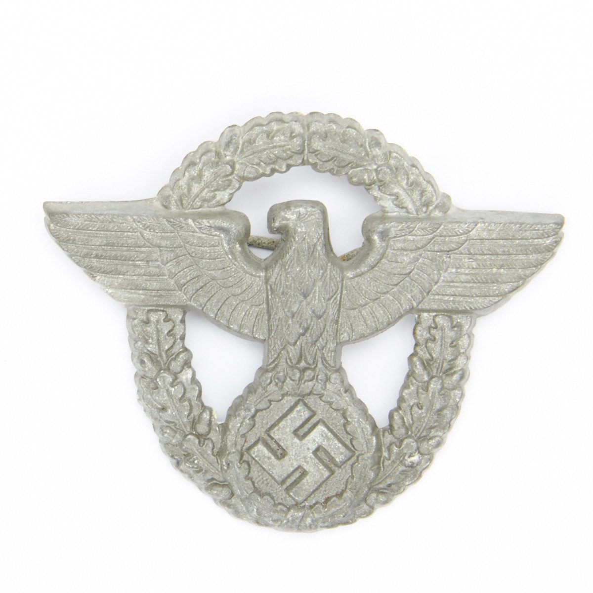 Original aluminum German Police Cap Eagle with attachment prongs intact.