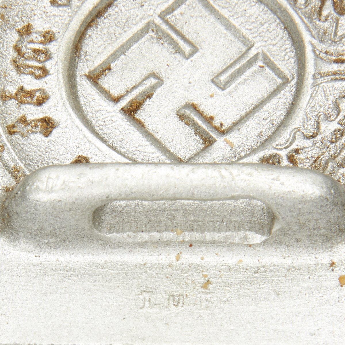 Original pebbled aluminum German Police belt buckle, with L.U.F manufacture code.