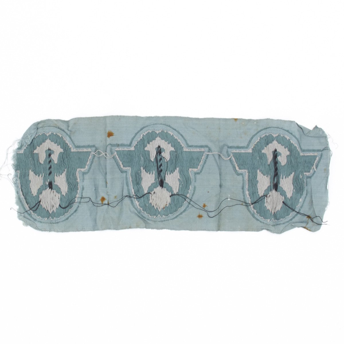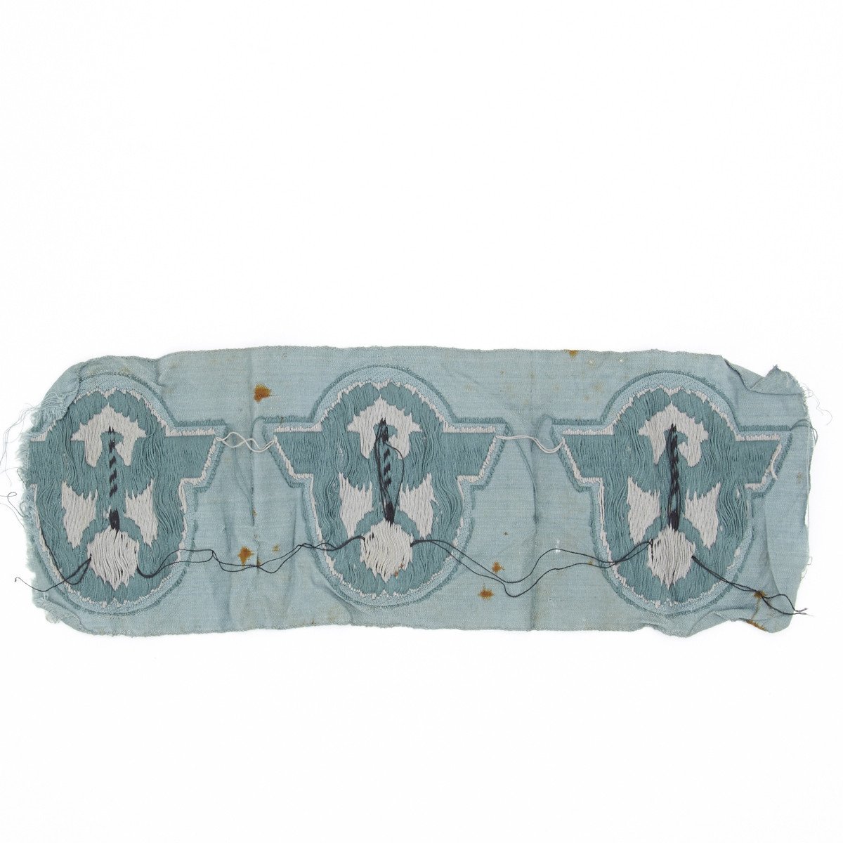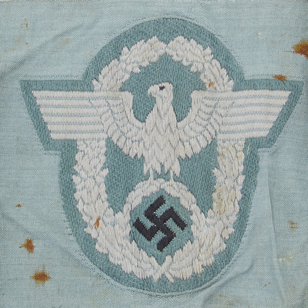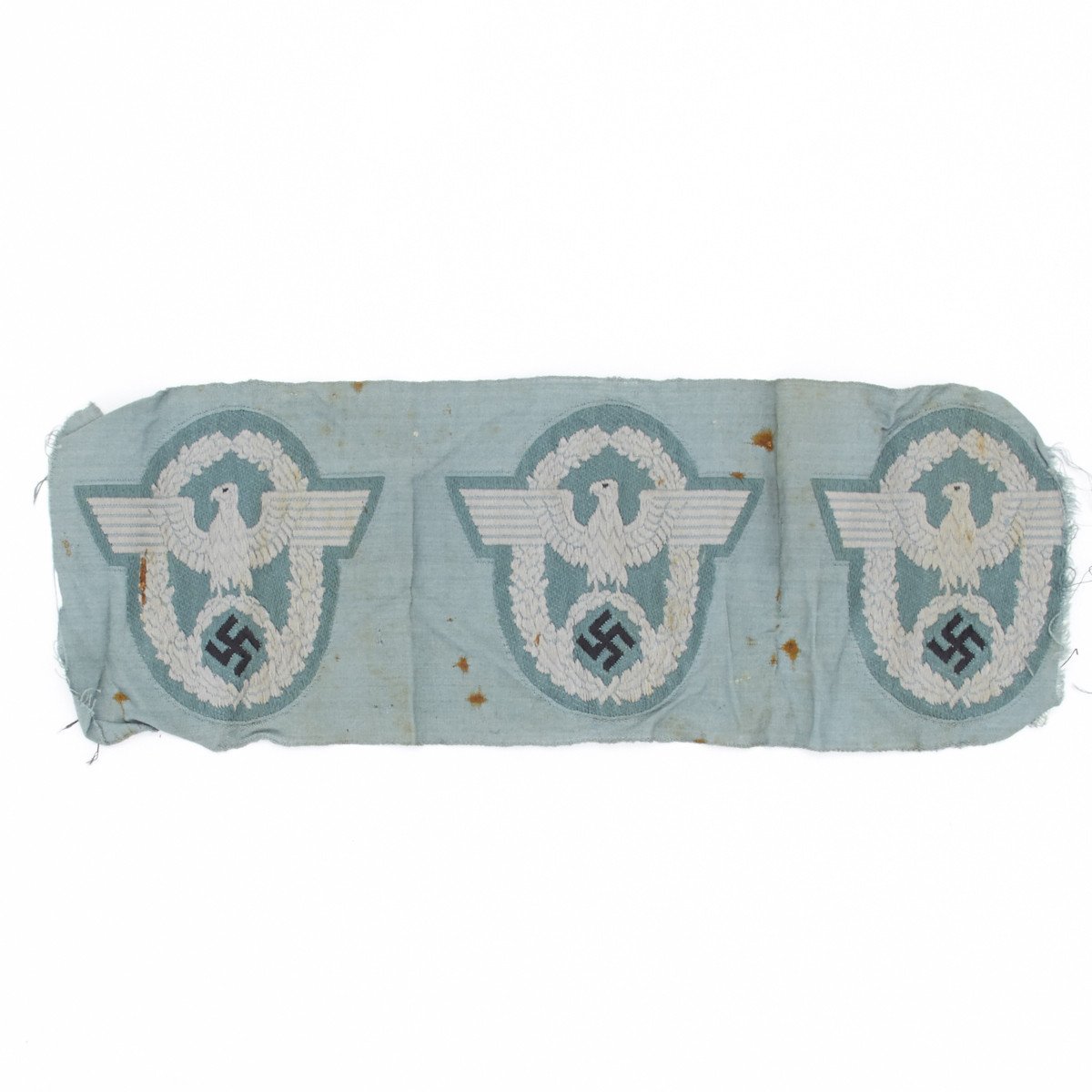 Original blue police armband, torn and incomplete with three embroidered eagles.