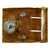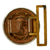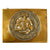 Slightly convex, stamped brass, two-piece construction buckle features a plain field upon which is a circular face plate featuring an embossed NSBO cog with a hammer and swas clenched in a fist. Oakleaf border with letters "N.S.B.O." on the cog wheel. The plate is attached by two soldered spots, visible to the reverse with a raised buckle catch. There was a threaded post soldered onto the reverse of the buckle for reasons unknown.