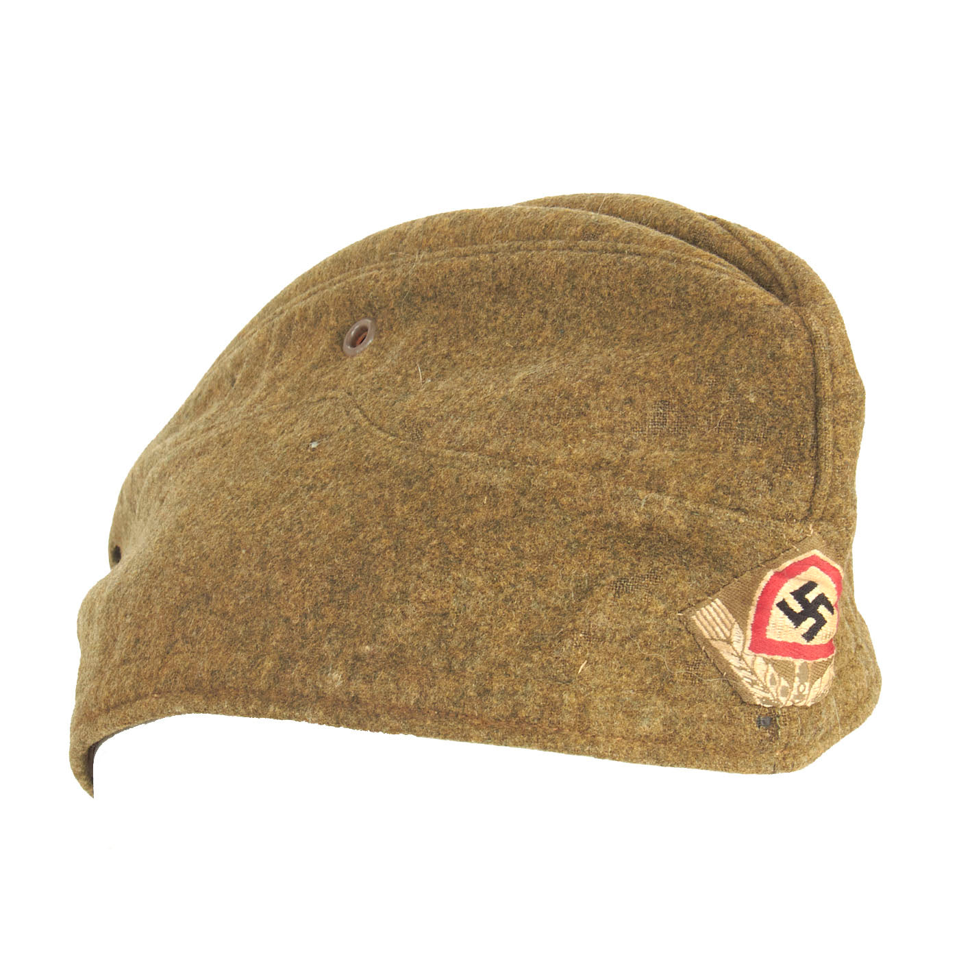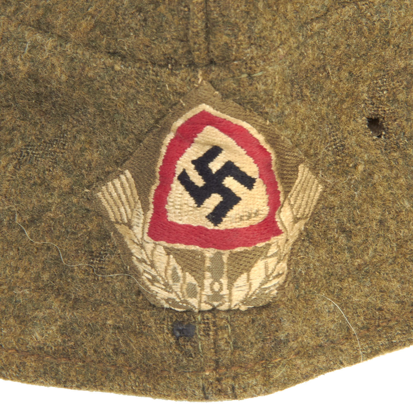 Original Item: Only One Available. This is a very nice service used example of a WWII German Reichsarbeitsdienst (RAD - National Labor Service) M38 overseas cap (Schiffchen). The overseas cap, nicknamed in German military slang as Schiffchen, or literally "little ship" as it resembled an up-turned row-boat, was standard issue for all branches of the Wehrmacht, as well as many civil organizations of the NSDAP.