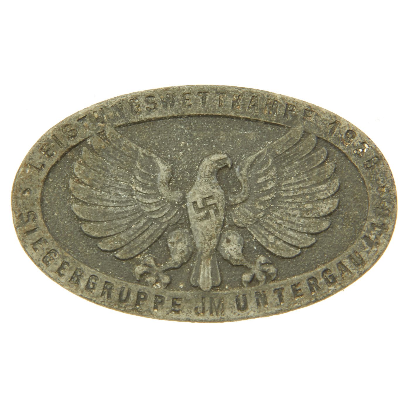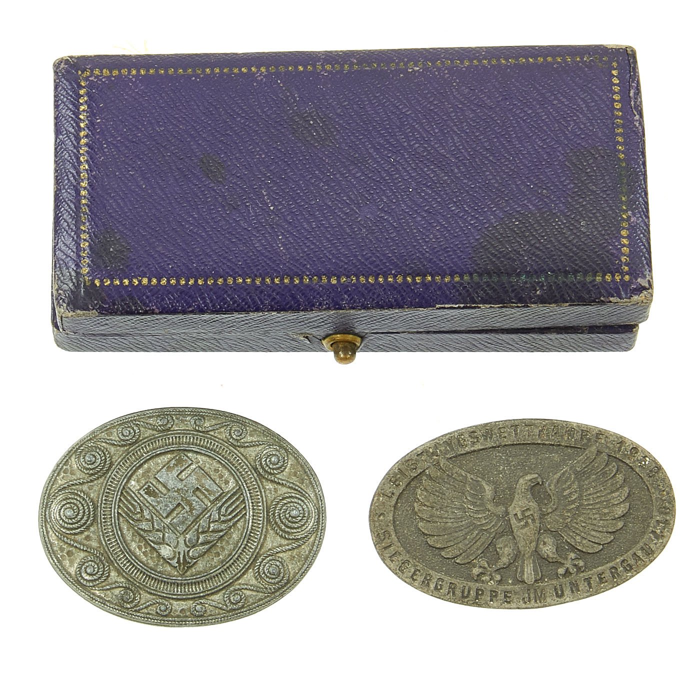 The Competition award is also in very nice shape, with a lovely spread-wing Reichsadler (National Eagle) in the middle, with the information regarding the award around the border: