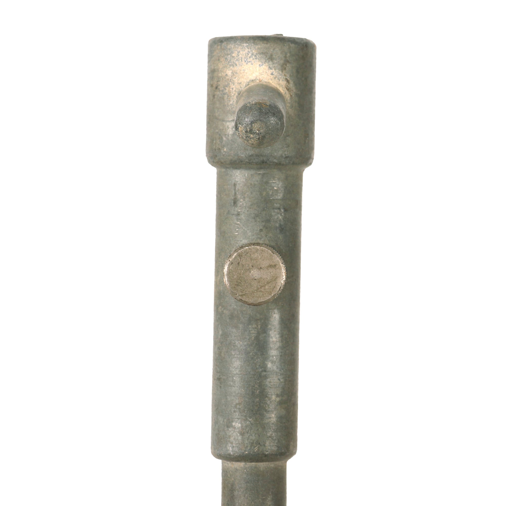 Original Item: Only One Available. This is an excellent example of a lesser known yet crucial piece of WWII radio equipment. It is a rare zinc alloy ground stake used for communications in combination with the FF33 field telephone. Grounding is the process of connecting a conductor or an electrical device to the earth, effectively providing a safe and stable path for excess electricity to escape. This reduces the risk of electrical shock, electrocution, and fires caused by unexpected voltage spikes or short circuits.