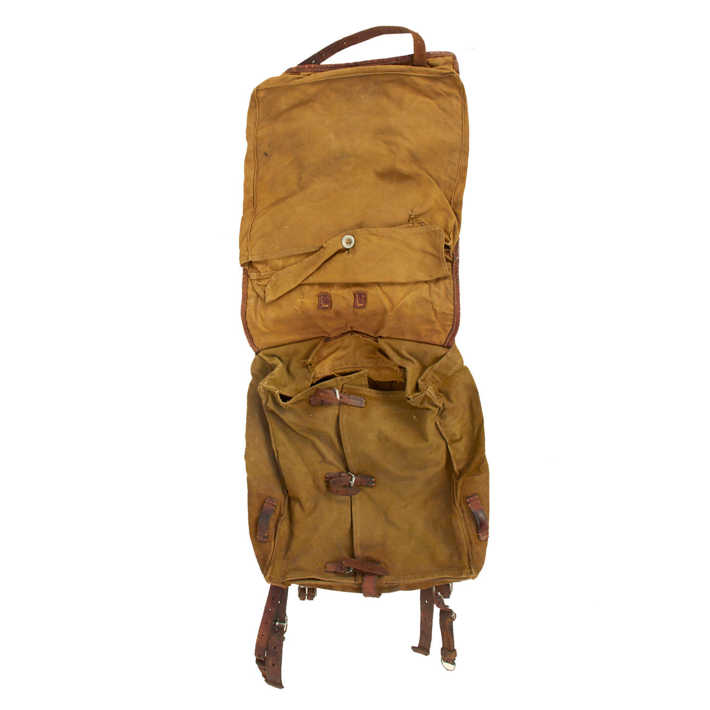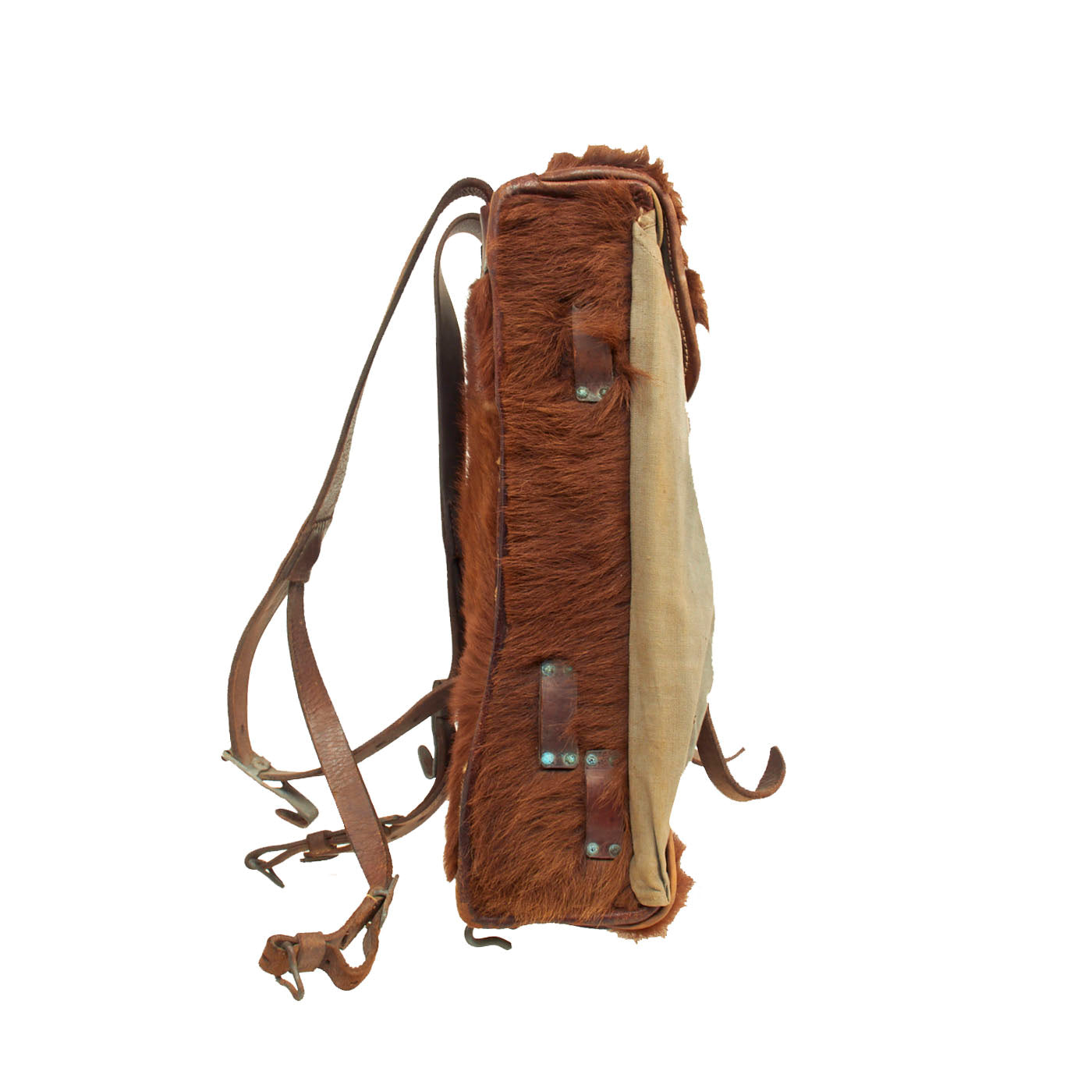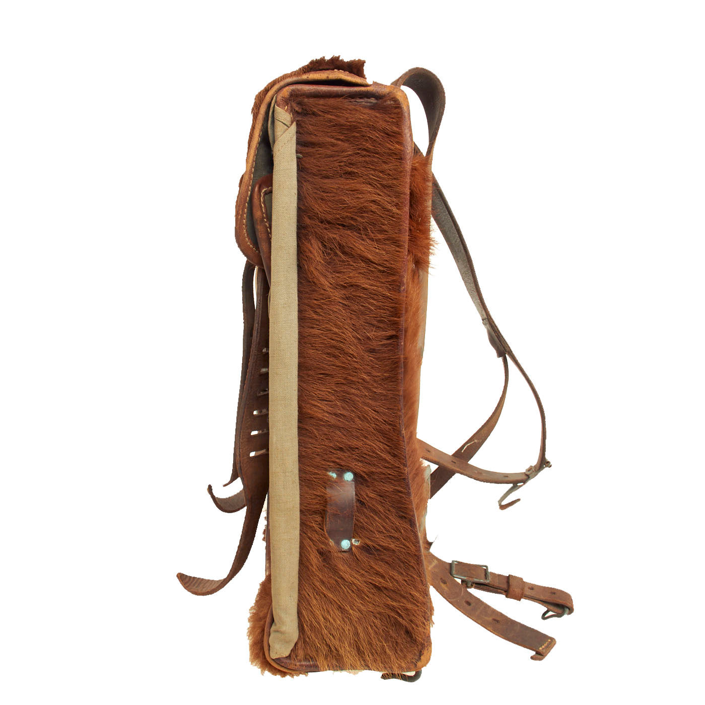 - 1937 Dated Tornister 34 Cowhide Backpack with Shoulder Straps: This is an excellent condition cowhide-covered rucksack known as the Tornister Model 34 (developed in 1934) which was later fitted with new style straps in 1939. As the war progressed the design was simplified for economical and practical reasons so the cowhide cover was eliminated making these packs especially scarce on today’s collector market.