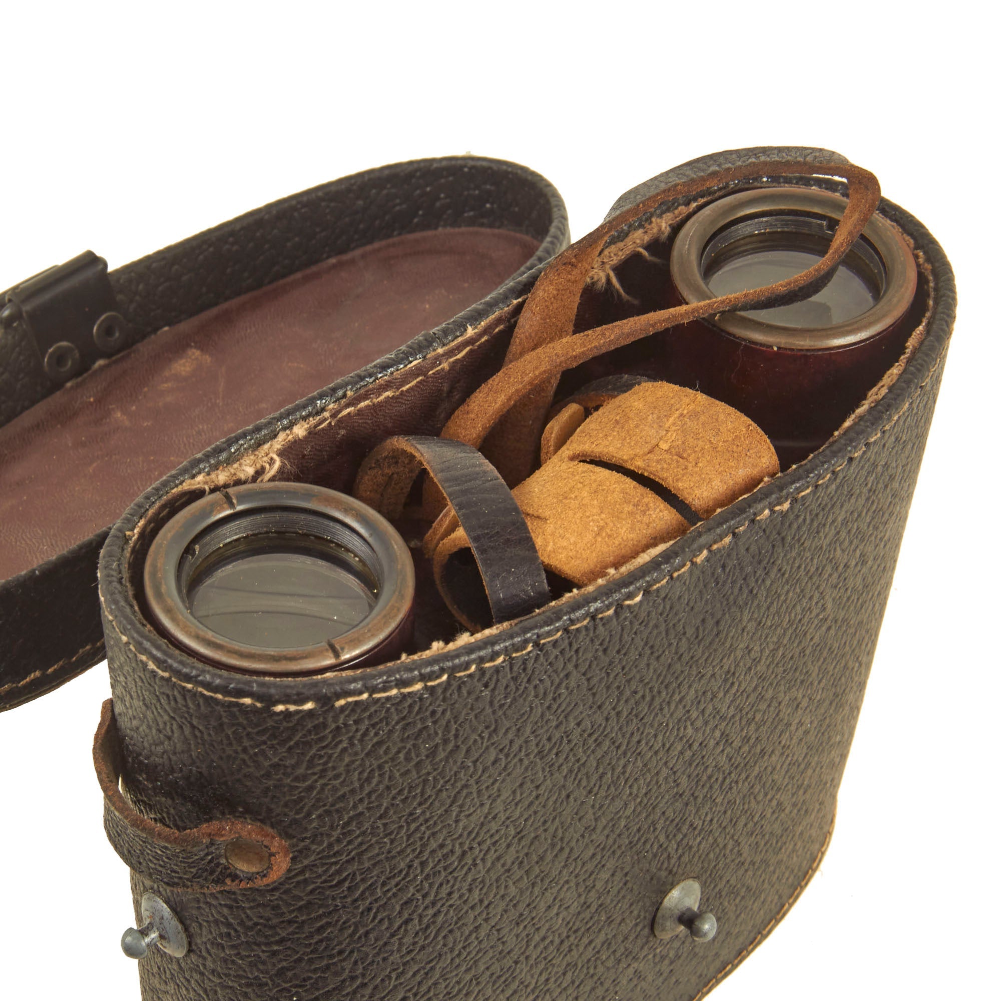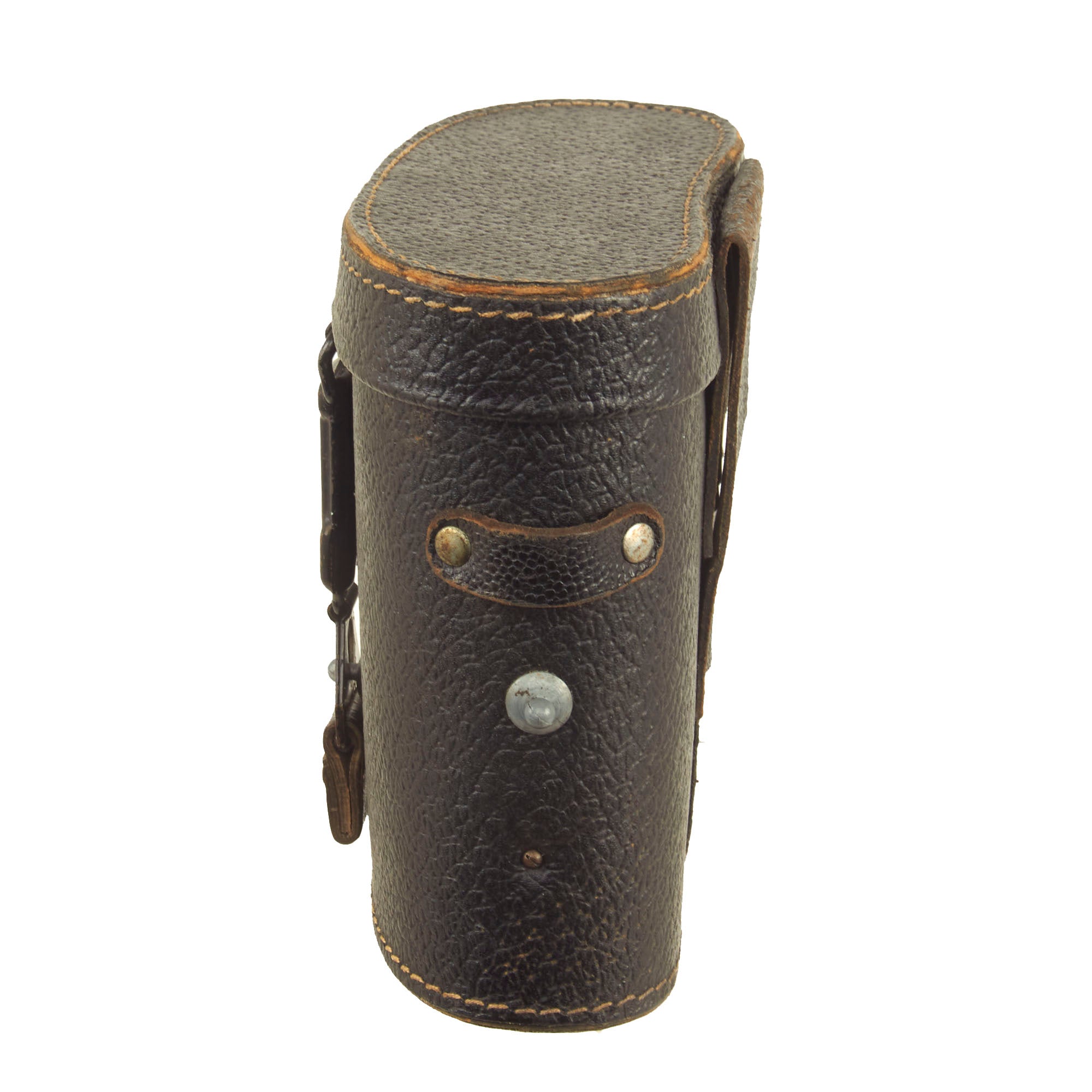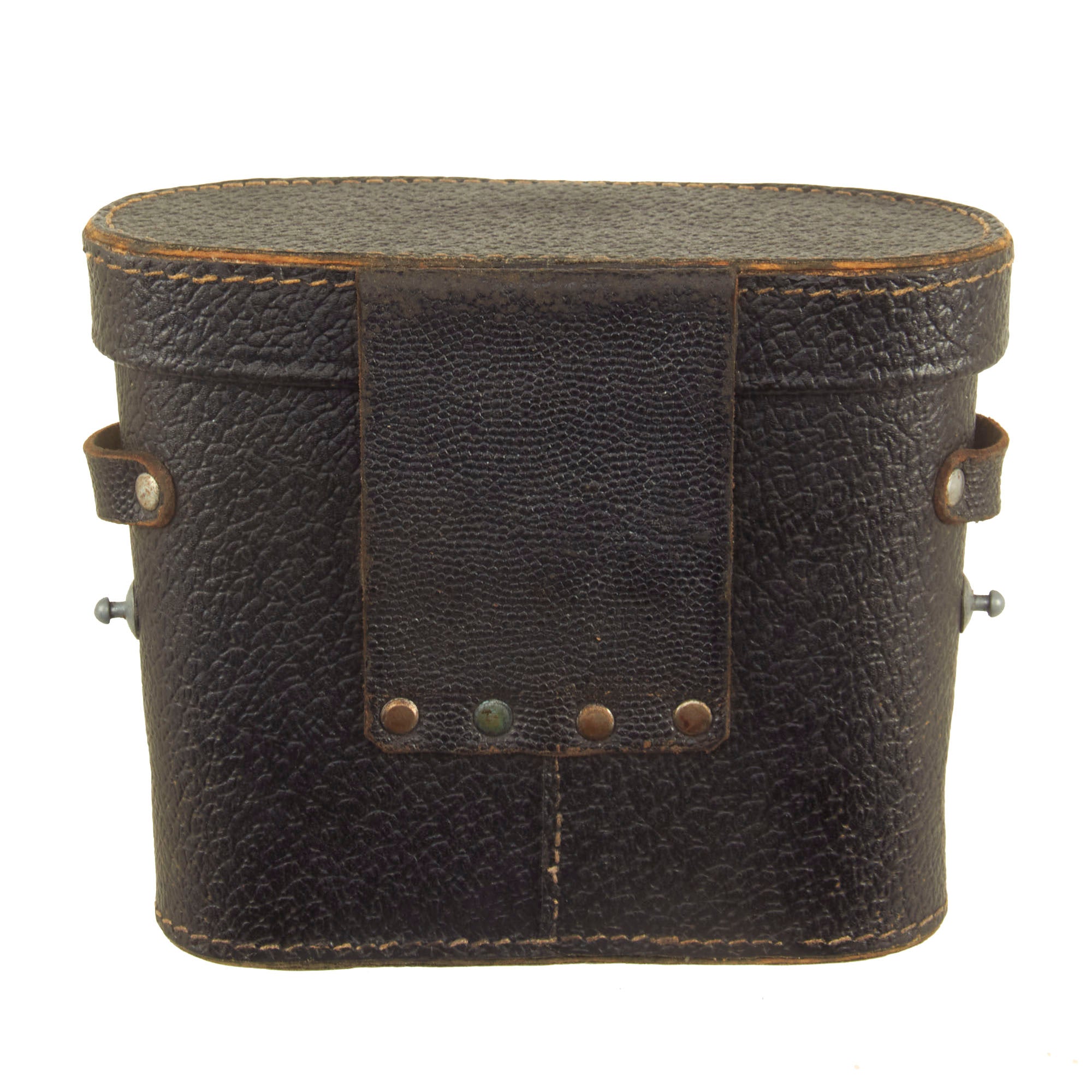 The use of the three letter code, indicates that these were made after 1940. cxn represents Emil Busch AG Optics. The included rigid leather carry case is in wonderful condition and still retains the original belt strap, though the carry straps are unfortunately missing.