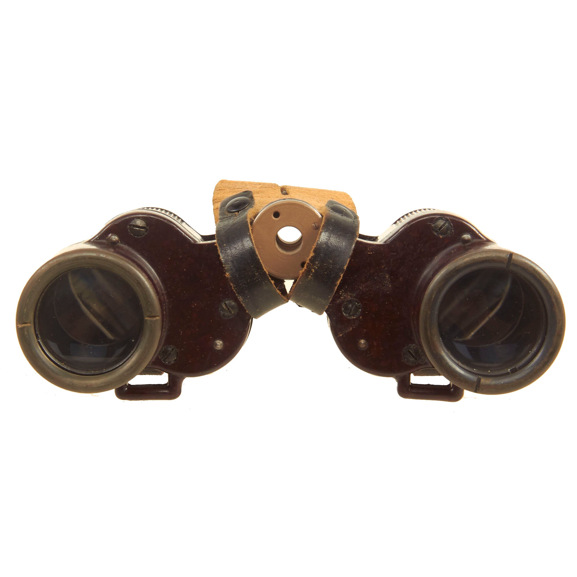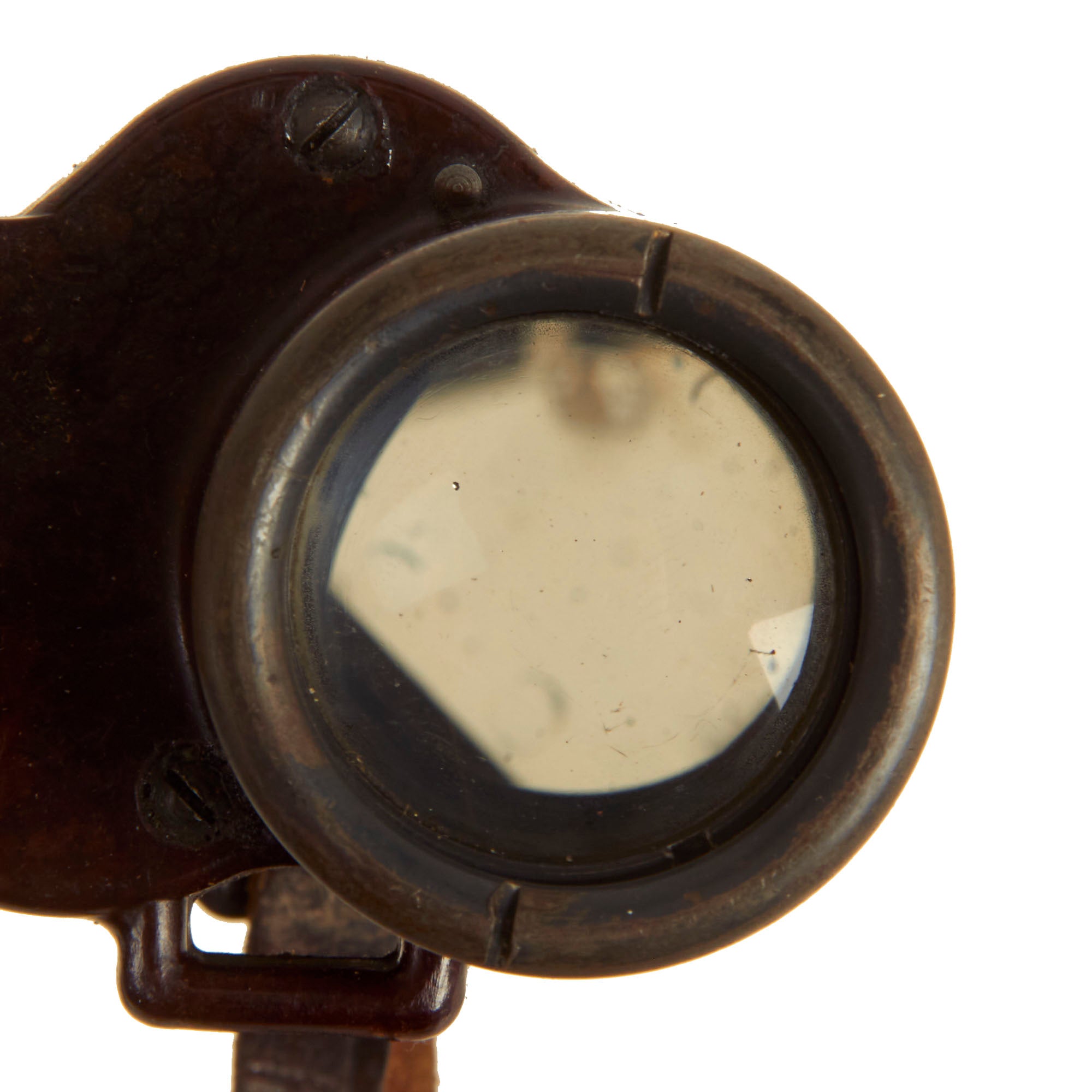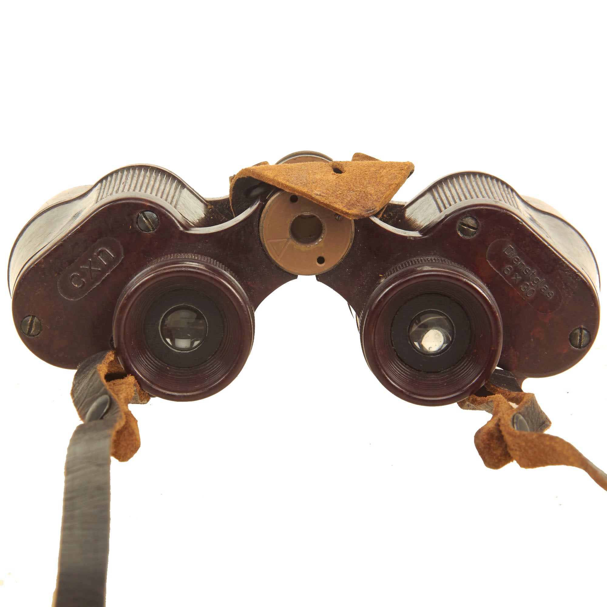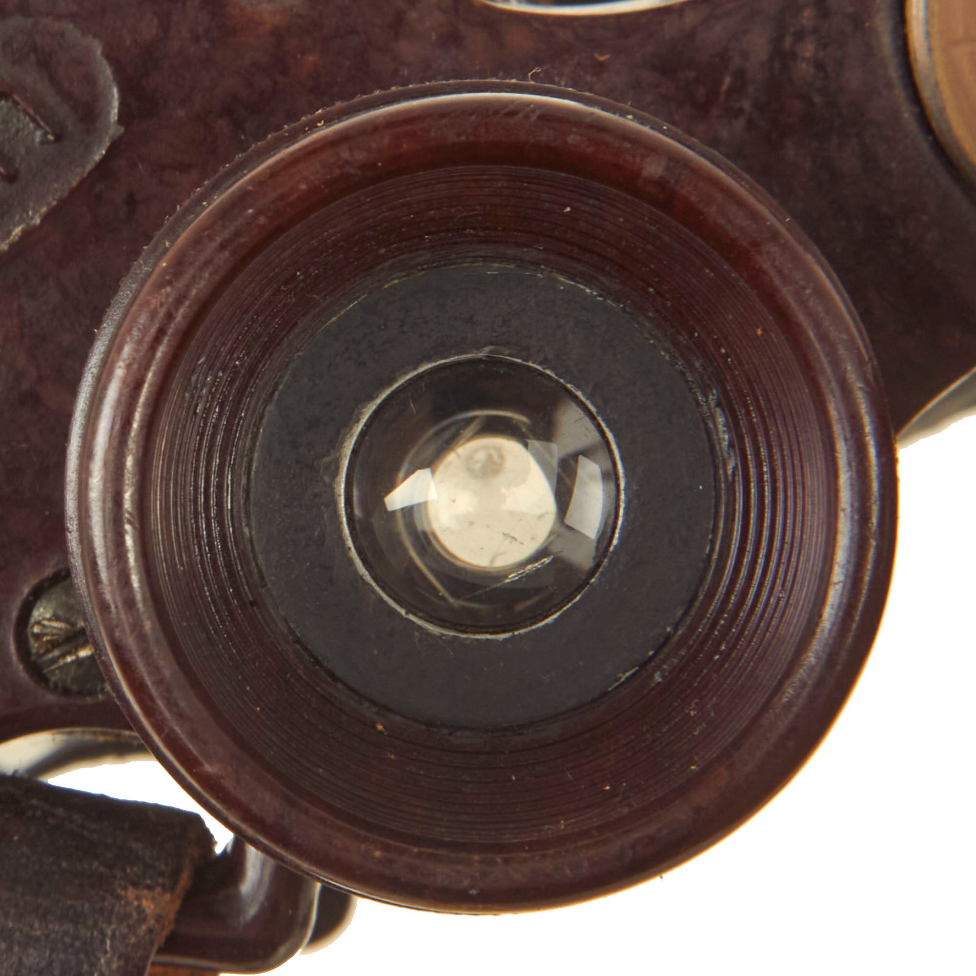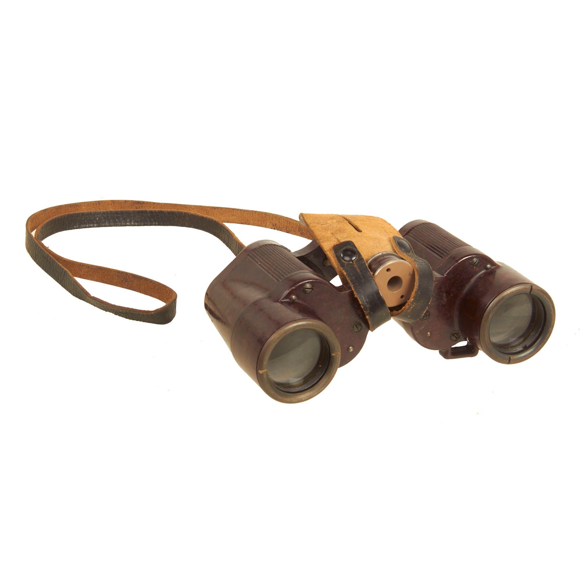 Original Item: Only One Available. Now this was a fantastic and rare find! This is a beautiful set of late war produced red bakelite 6x30 binoculars. These are very seldom encountered fully intact and functional as bakelite does not age well, becoming very brittle. While these aren’t the rarest type of binoculars that were produced by Germany during WWII, it still makes its way onto the list.