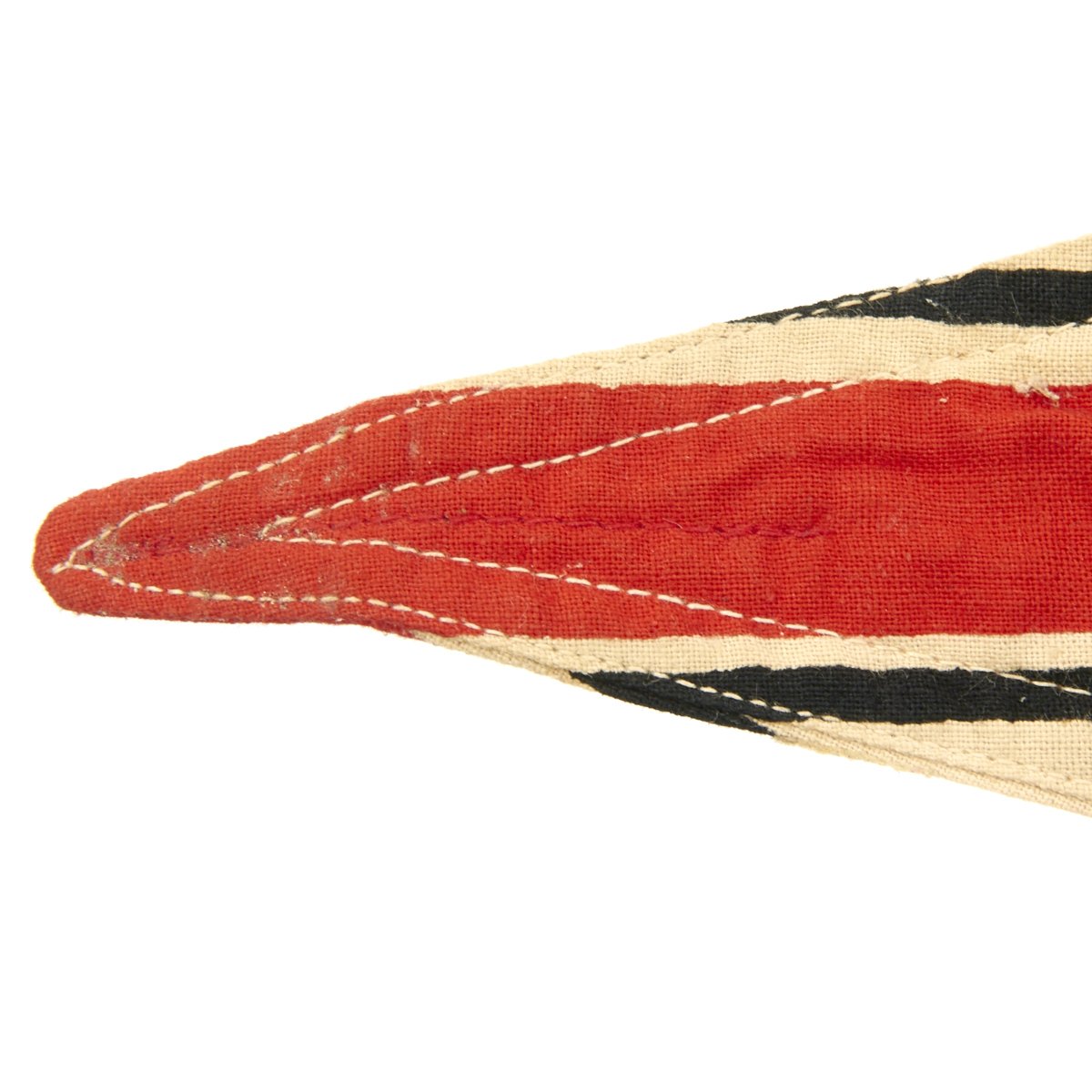The pennant still has the top clip and bottom ring, and is in very good condition over all. there are some small tears and stains, but nothing major. A great addition to any German collection!
