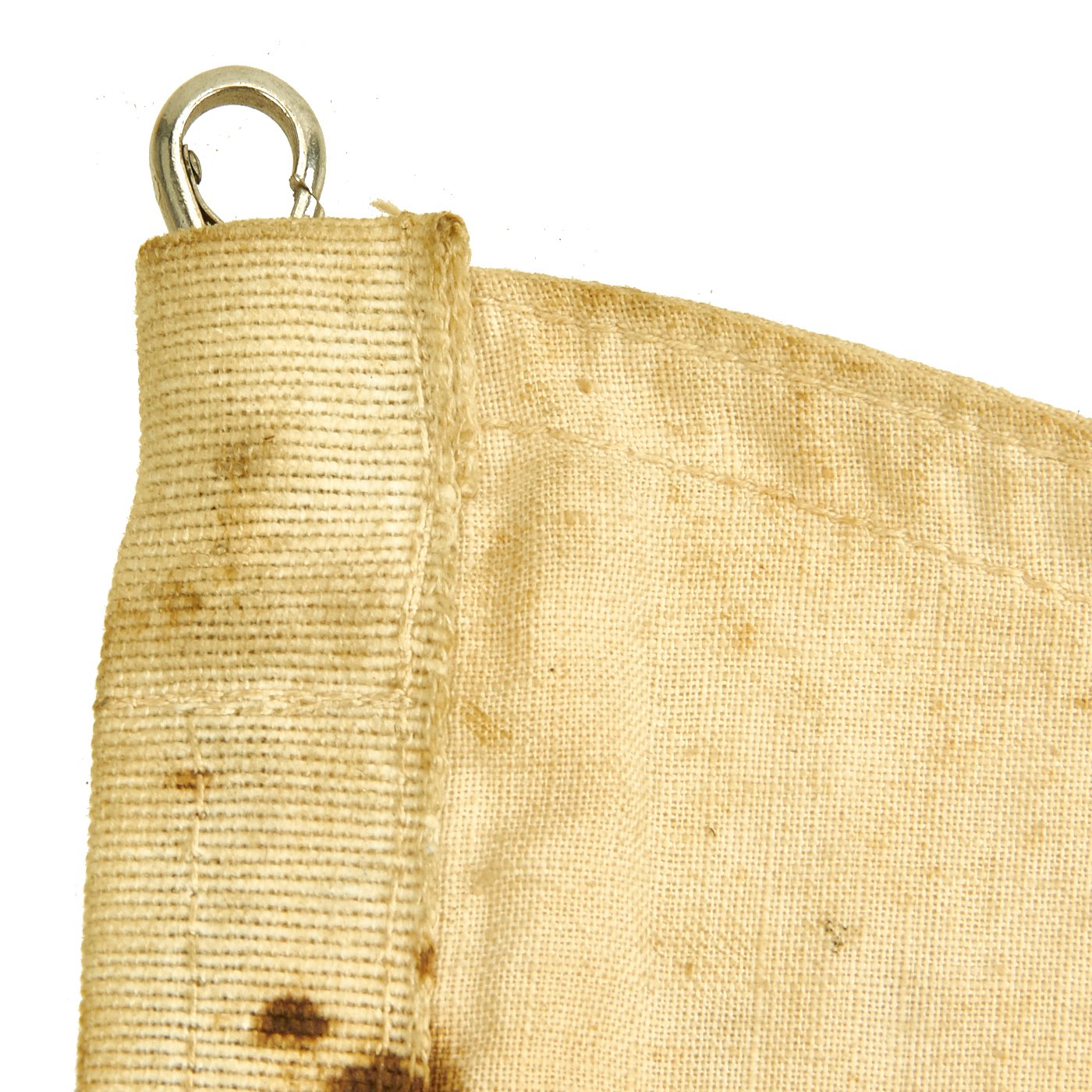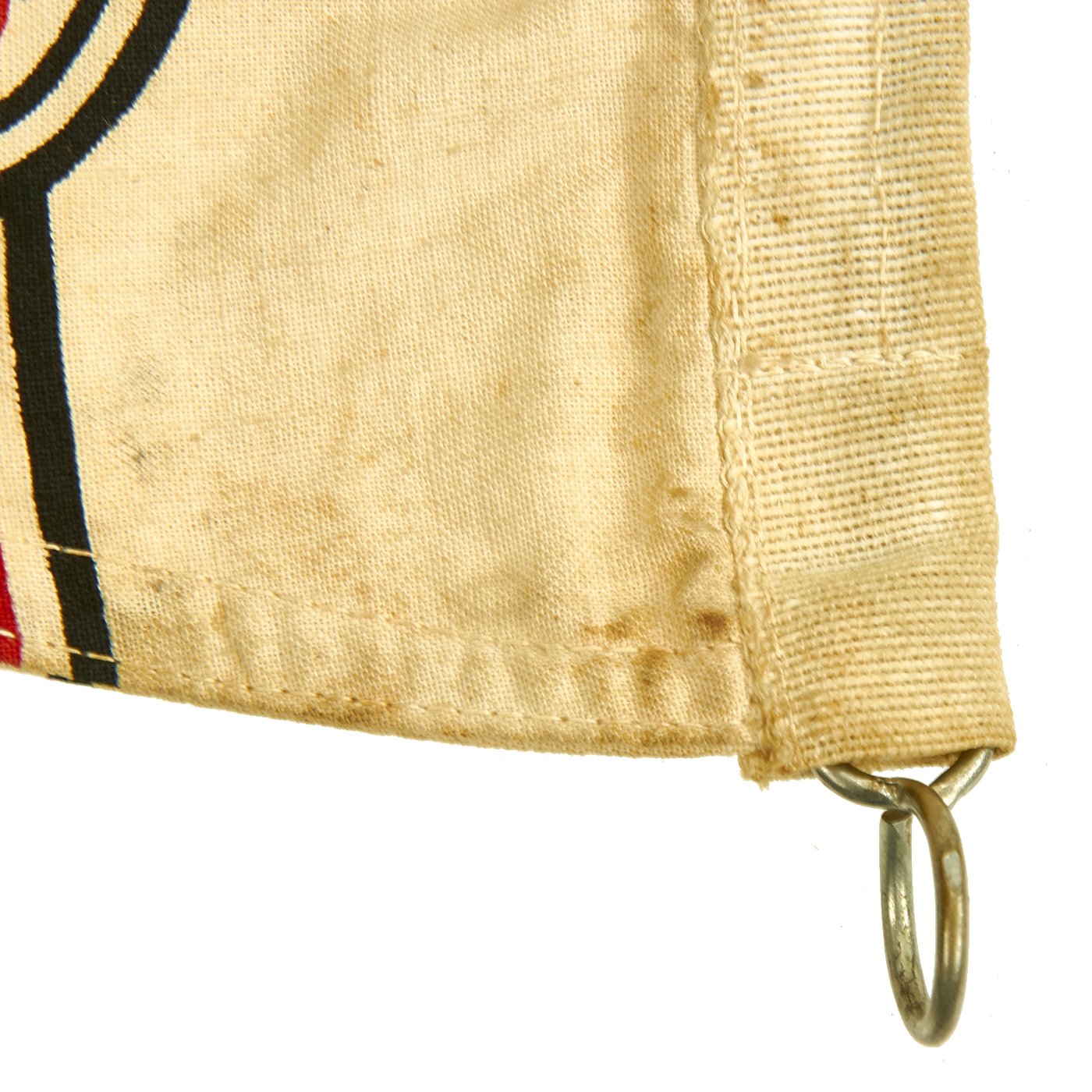 The pennant still has the top clip and bottom ring, and is in very good condition over all. There are some wear and small stains, as shown, but the stitching is good and the material solid. A great addition to any German WWII collection!