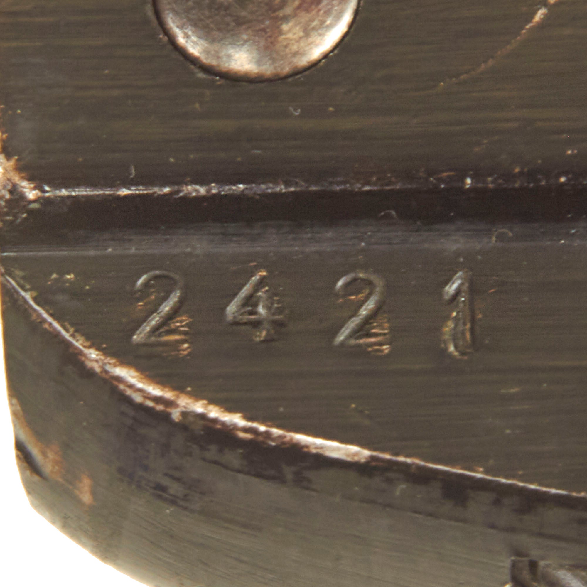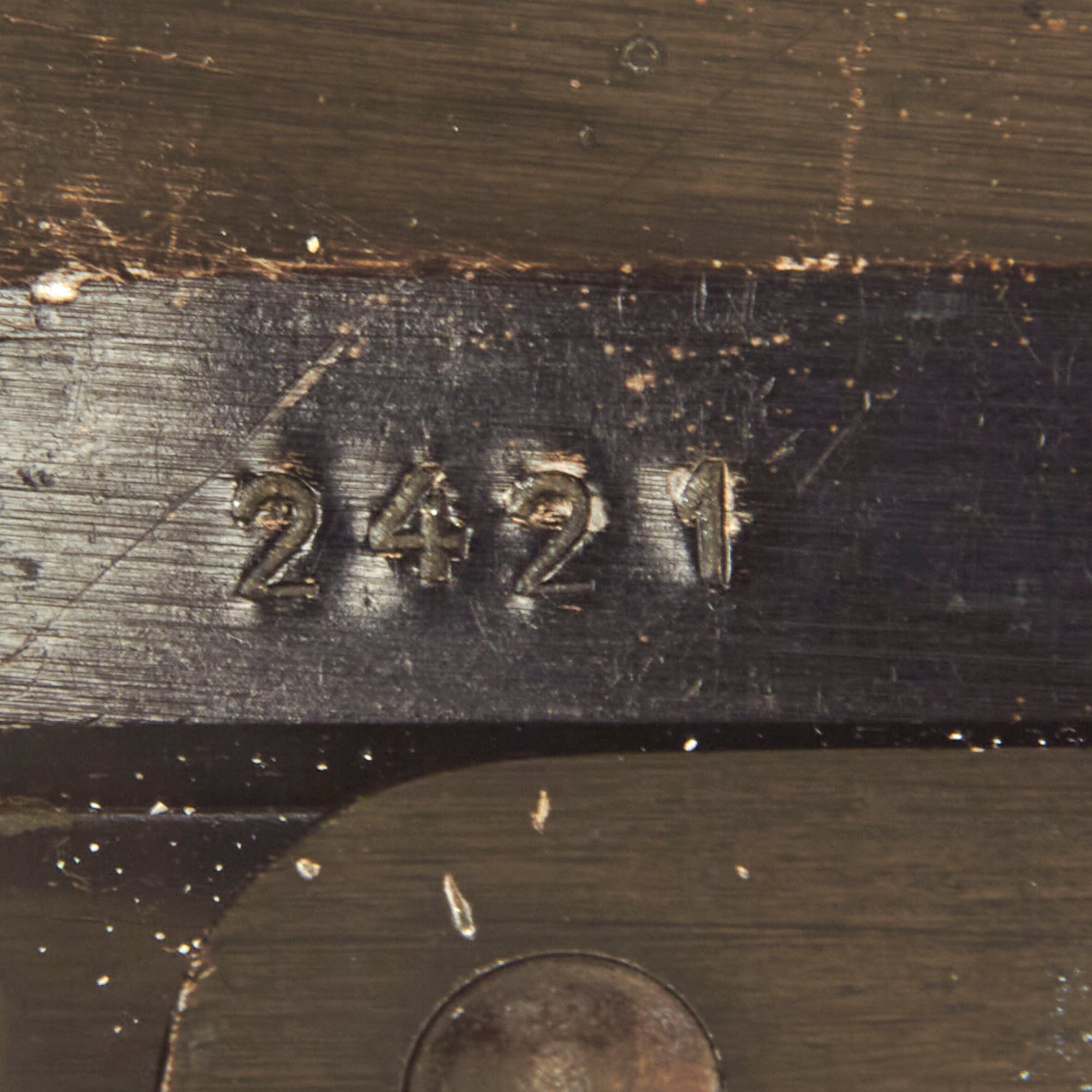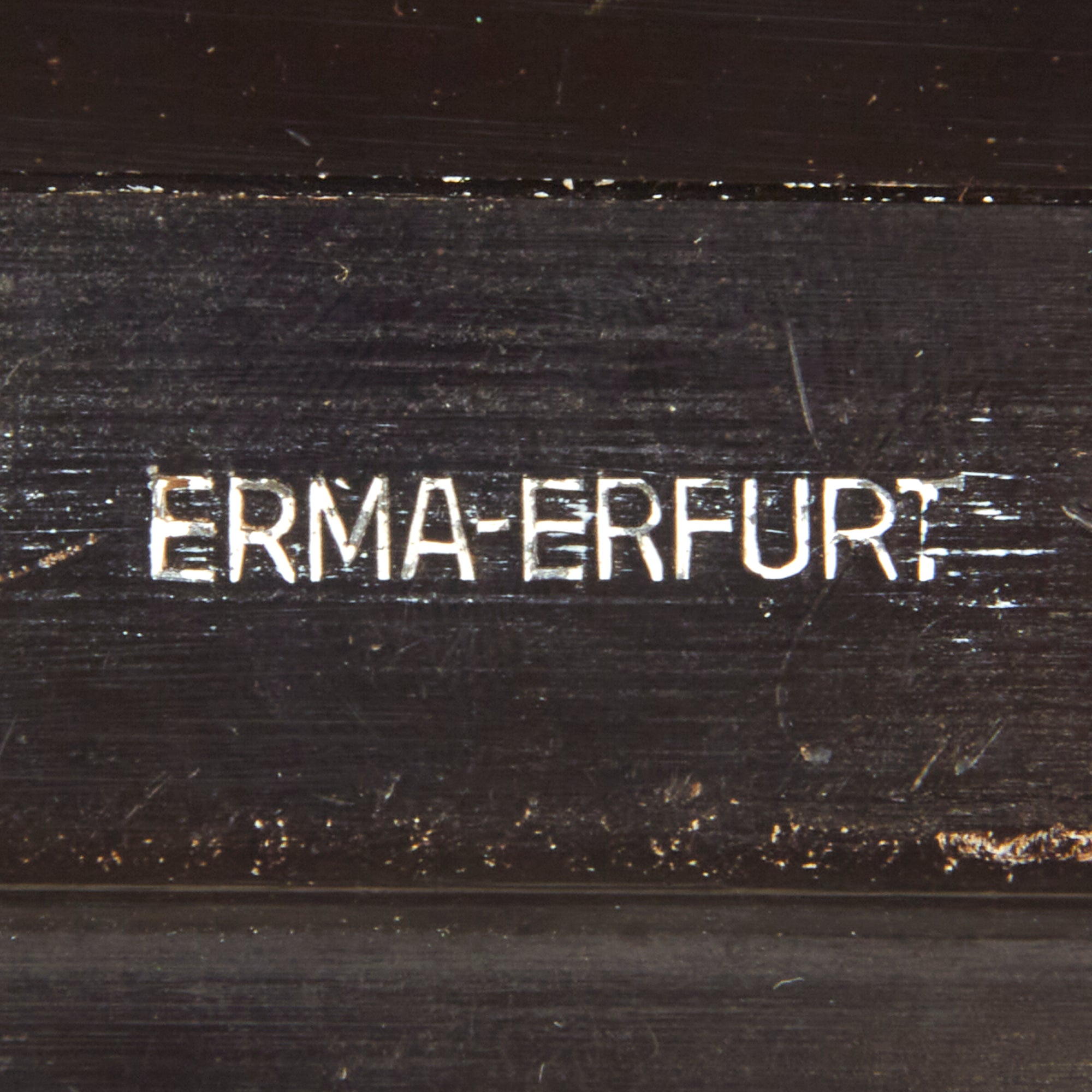 This example is maker marked ERMA-ERFURT on the left side of the frame, for manufacture by the legendary ERMA-Erfurter Maschinenfabrik B. Geipel GmbH of Erfurt, a German weapons manufacturer founded in 1922 by Berthold Geipel. Prior to and during World War II it manufactured many firearms, including the Karabiner 98k, the MP40 and other submachine guns. it has serial number 2421 above the trigger guard and on the barrel. It is nicely Waffenamt marked on the right side of the frame, with inspector number 280, the correct inspector for ERMA.