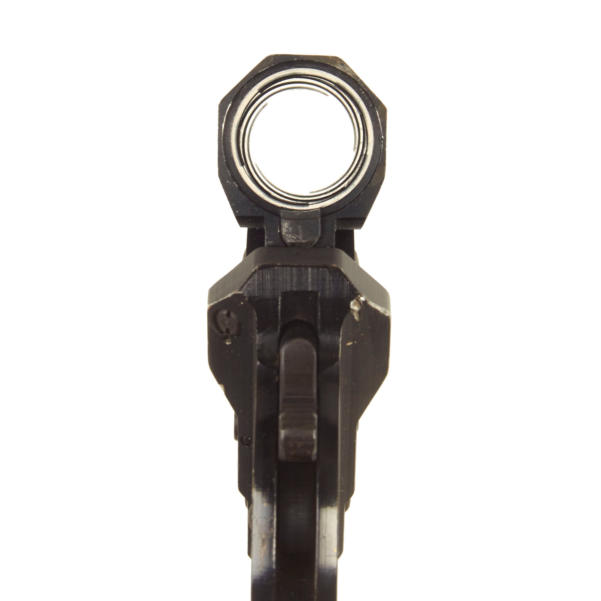 Completely Original German WW2 manufacture in good complete condition, with a good amount of the original anodized finish present on both sides of the pistol. The left side of the pistol has a lot more wear to the anodized finish, probably from cleaning, or maybe from the holster it was carried in. The steel components still have a good blued finish, with a bit of light peppering. The ring on the bottom for the lanyard is not removable as on the standard LP34, as these were not intended to be used in any type of "trip wire" setup.