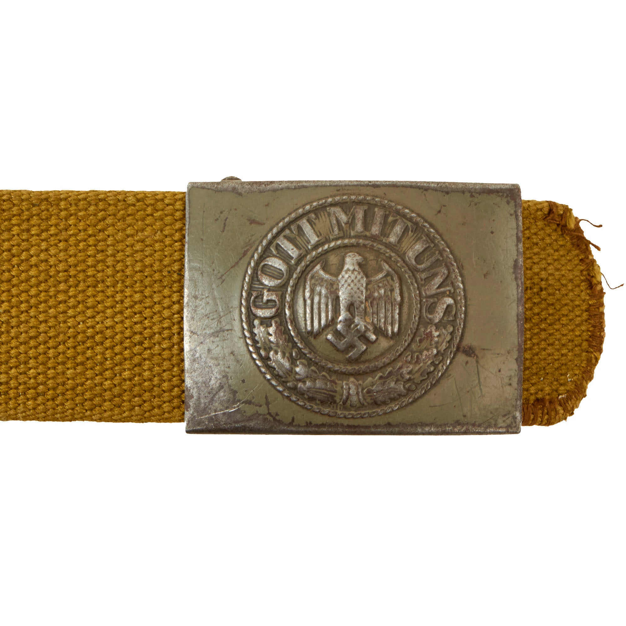 Original Item: Only One Available. This is a very rare totally genuine WWII Deutsches Afrikakorps (DAK) tropical waist belt with correct EM/NCO's Steel Painted Belt Buckle (Koppelschloß). Nice lightly used originals such as this example are very hard to come by.