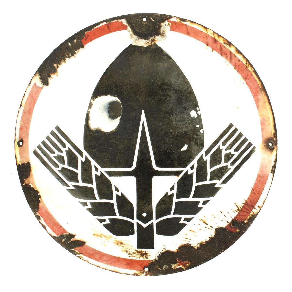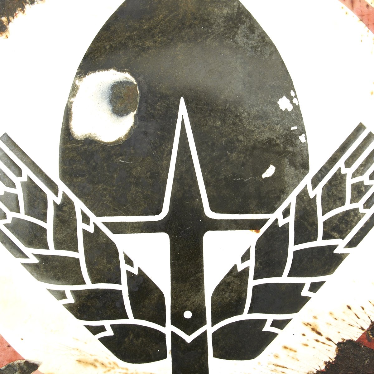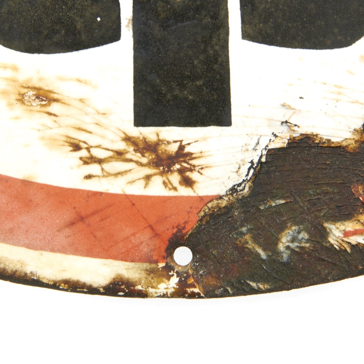 This is an early period steel and enamel sign in good condition, it retains all of its color and character with scuff marks around the edges. Exceptionally rare as any signs with reference to the Third Reich were removed and destroyed directly after the war.