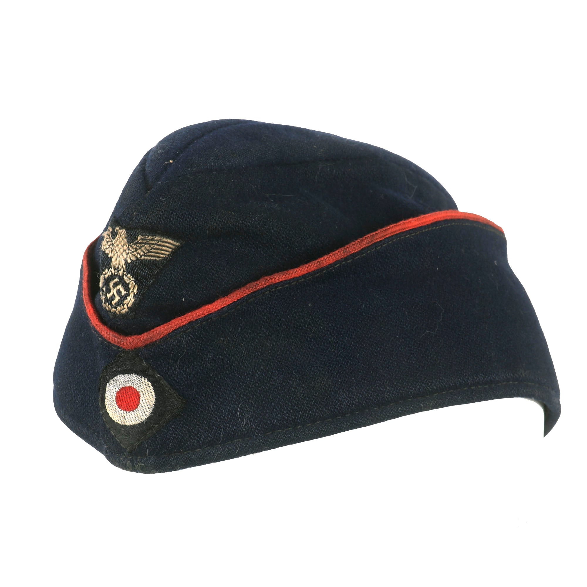 This is a nice service used German WWII Era Reichspost Postal Service Personnel Overseas cap, in a small size of approximately U.S. 6 ¾ in. The red piping on this cap attributes it to members of the Postschaffneren, or “Post Conductors” as it translates to. The piping is a bit faded from age, but we are certain it is red.