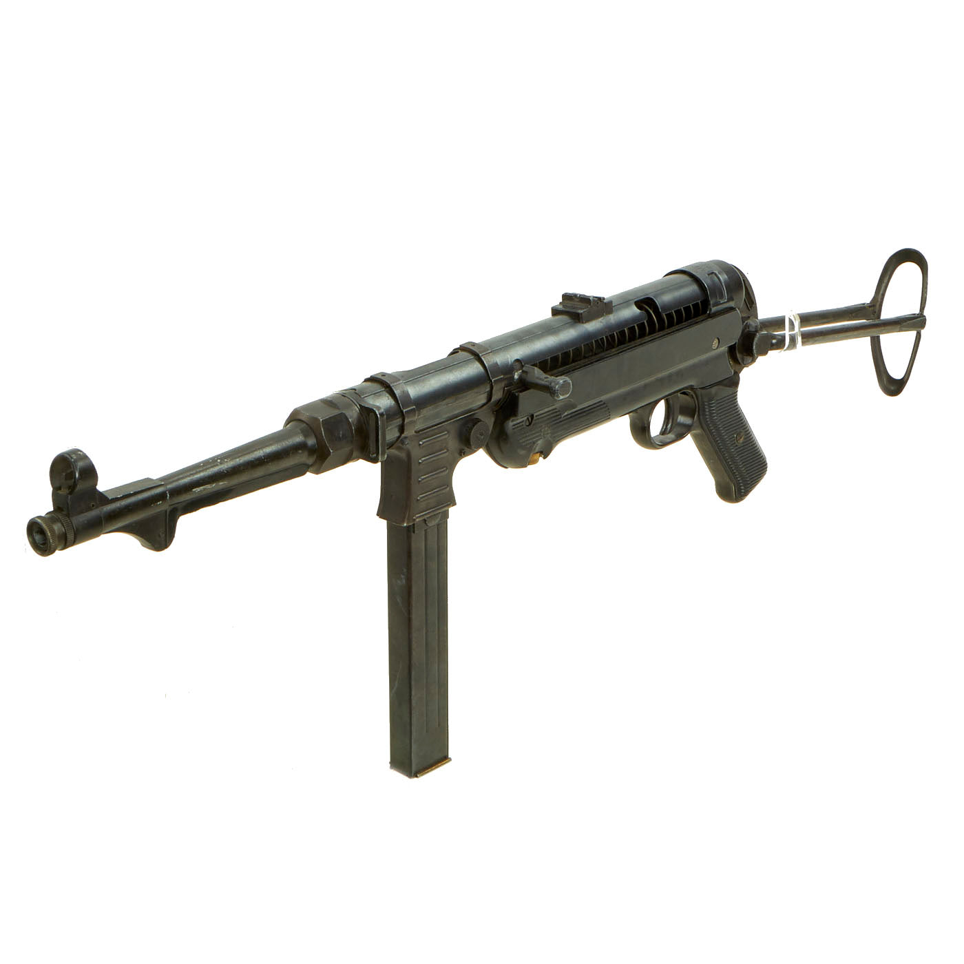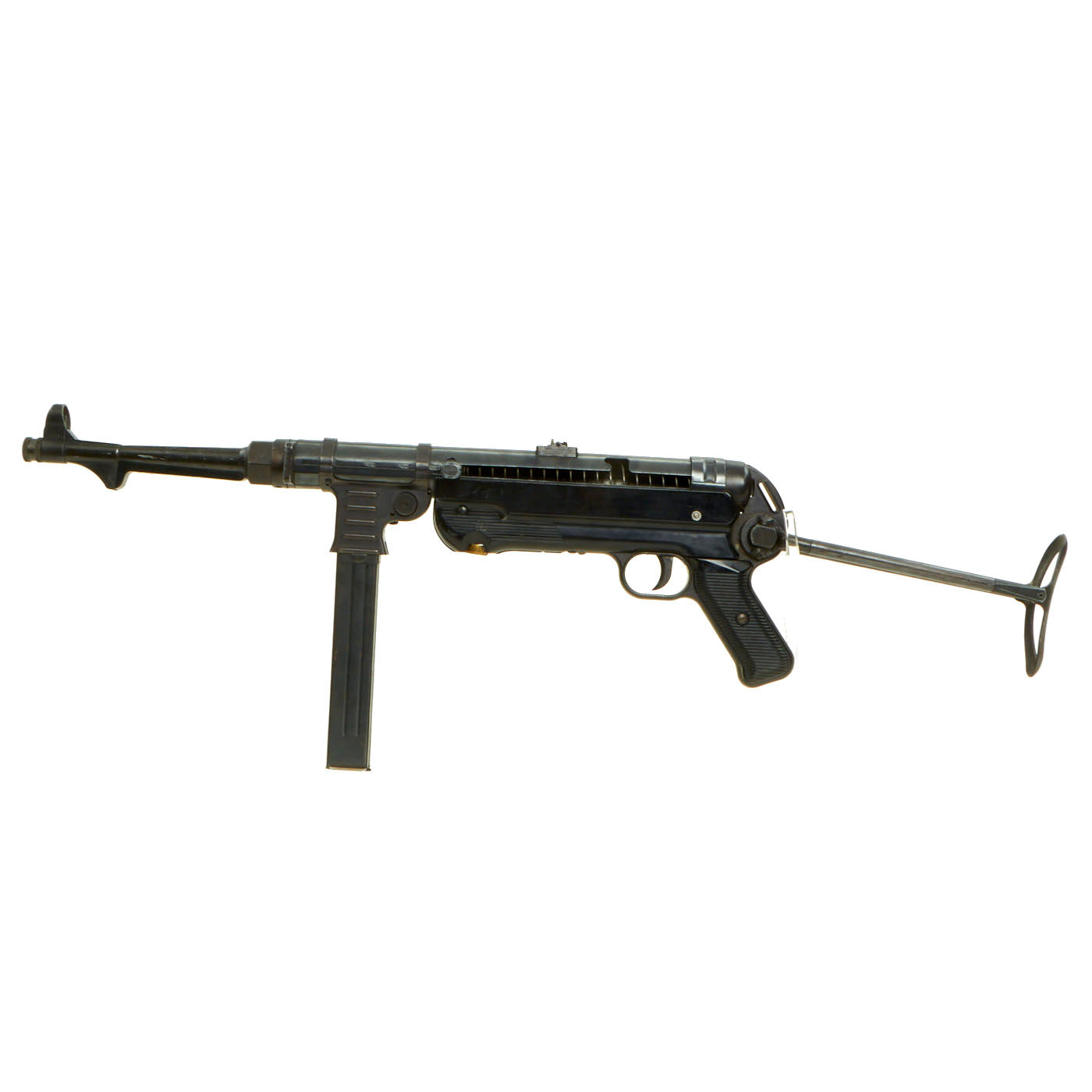 The MP 40 (Maschinenpistole 40) is a submachine gun chambered for the 9×19mm Parabellum cartridge. It was developed in Germany and used extensively by the Axis powers during World War II.