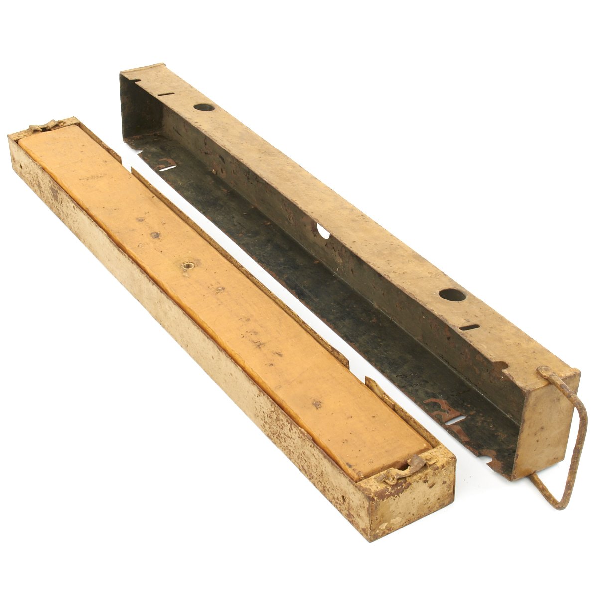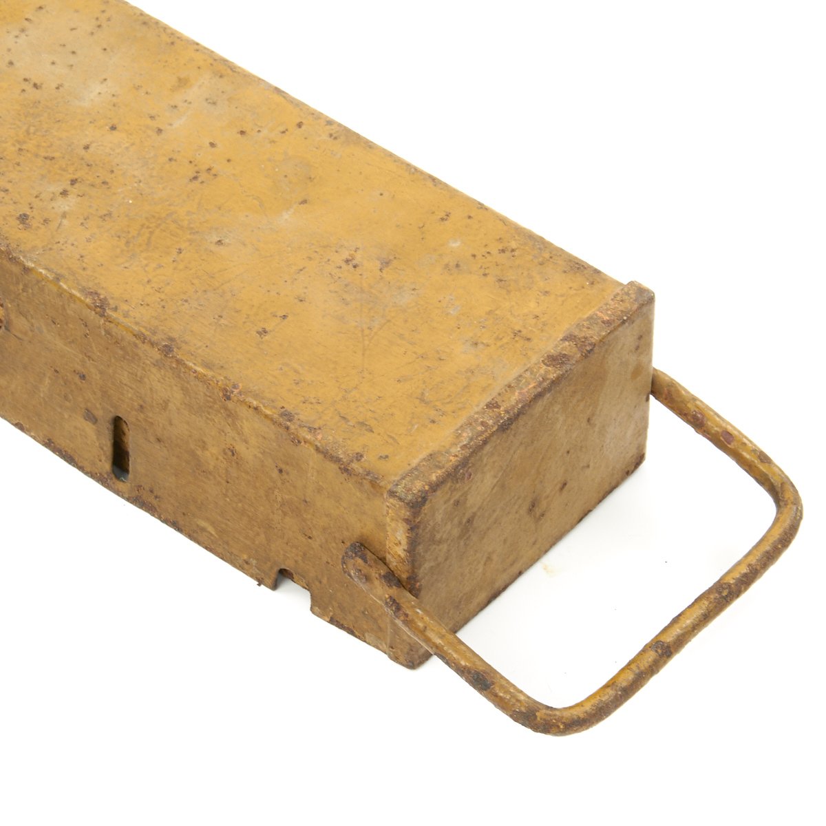 This example is totally original with the original dunkelgelb ordnance tan german paint. The interior TNT block is excellently replicated using a piece of wood and waxed paper. There are no marking visual due to the paint. Overall condition is excellent. This is the only example we have ever offered.
